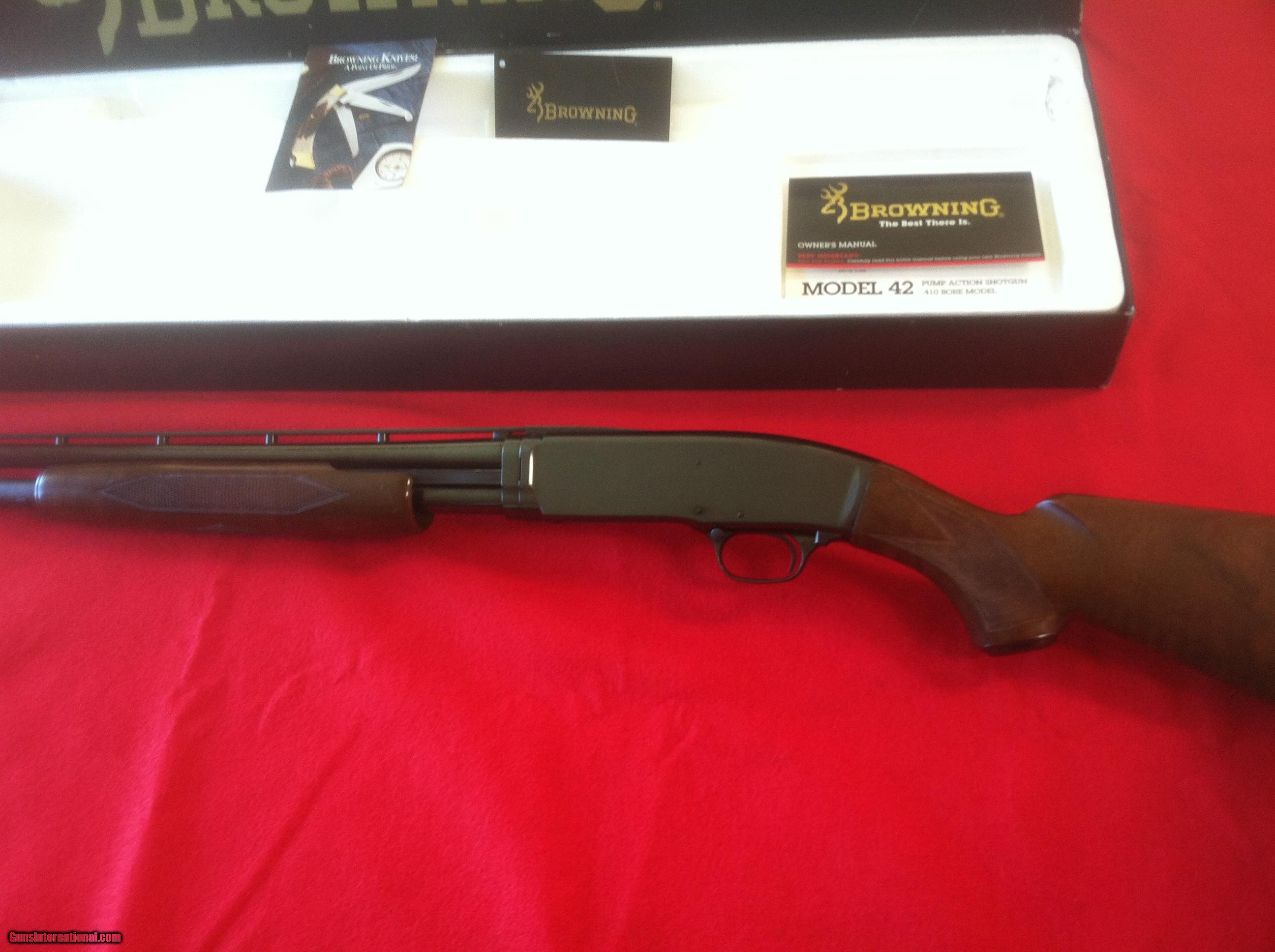 Description: This is a beautiful example in the original box with all the original papers. The wood is a little darker than other Brownings Ive seen, in fact it looks like upgraded wood. The box clearly says grade 1 but this is definately nice wood. The box leaves a little to be desired but its not to bad. The blueing is dark deep and shiny, just like you would expect on a Browning. I think this gun would make a great upland game hunter with 26 in barrel and full choke, If you can bring yourself to shoot it. Im not sure if the gun has even been fired but if it was it wasnt very much, and definately very well taken care of. SOLD |