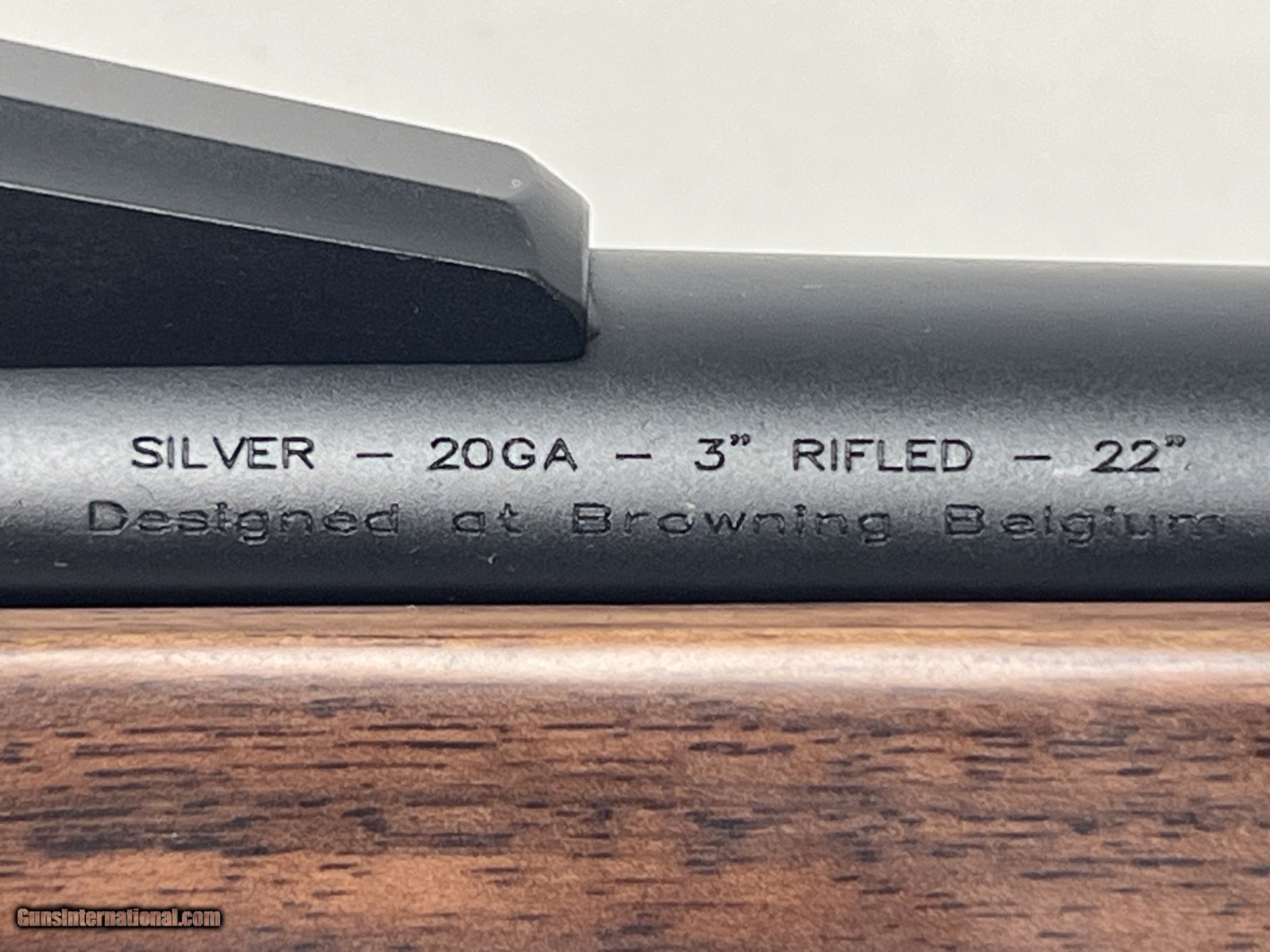 Description: NEW IN BOX Item Number 011414621 Gauge 20 Chamber Length 3" Barrel Length 22" Overall Length 42 3/4" Length of Pull 14 1/4 "Drop at Comb 1 3/4" Drop at Heel 2 1/4 "Weight6 lbs 12 oz Magazine Capacity 4 2 3/4" shells Barrel Finish Matte Blued Stock Finish Satin Wood Grade |/23| Receiver Finish Two-tone Silver/Black Chamber Finish Chrome Plated Chamber Front Sight None Barrel Material Steel Stock Material Turkish Walnut Recoil Pad Black Ventilated Sling Swivel Studs Matte Blued Receiver Material Aluminum Alloy Trigger Finish Gold Plated Trigger Guard Finish Matte Black Bolt Slide Finish Matte Black Magazine Type Tubular Trigger Materia lAlloy Trigger Guard Material Alloy Trigger Guard Engraving Buck Mark in Gold Choke Wrench Included Flat Wrench SOLD Shotgun Gauge: 20 Gauge Manufacturer: Browning Model: Silver Deer Matt Serial Number: PT02335YW114 Barrel Length: 22 Condition: NEW |