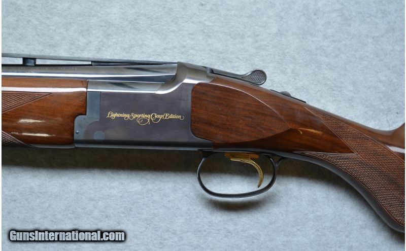 Description: Lightning Sporting Clay Edition. SOLD Manufacturer: SN:19543NWW53 Caliber Info: 12 Gauge Chambers: 3 Metal Condition: Excellent Wood Condition: Excellent with some handling marks Bore Condition: Bright And Shiny. Barrels: 28" .Vented Rib Barrel Triggers: Single Selective Gold Plated Trigger Stock: Checkered Wood Grips Stock Dimensions: 14 1/4" LOP Fore End: Checkered Butt Pad: Black Rubber Butt Pad Weight: 8 lbs. 2 ozs. Sights: Front Bead, Adjustable Semi-Buckhorn Rear Sight Chokes: Invector Chokes Item Location: Hazelwood, MO |