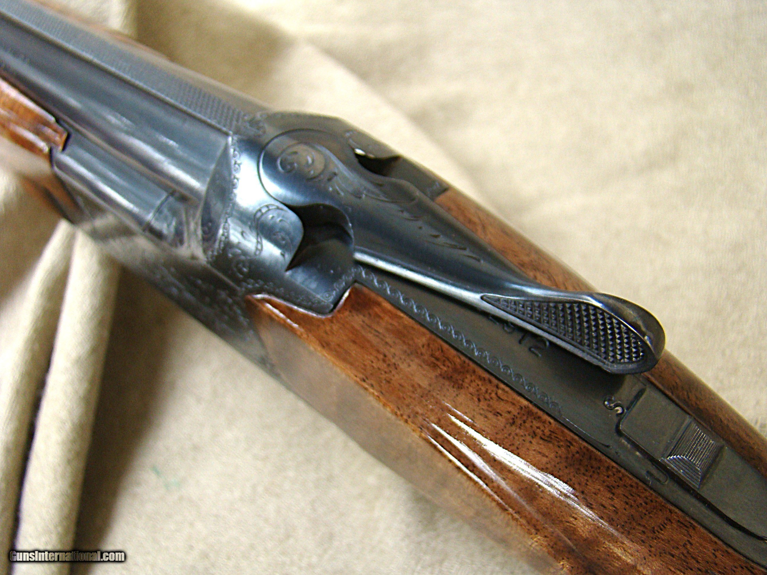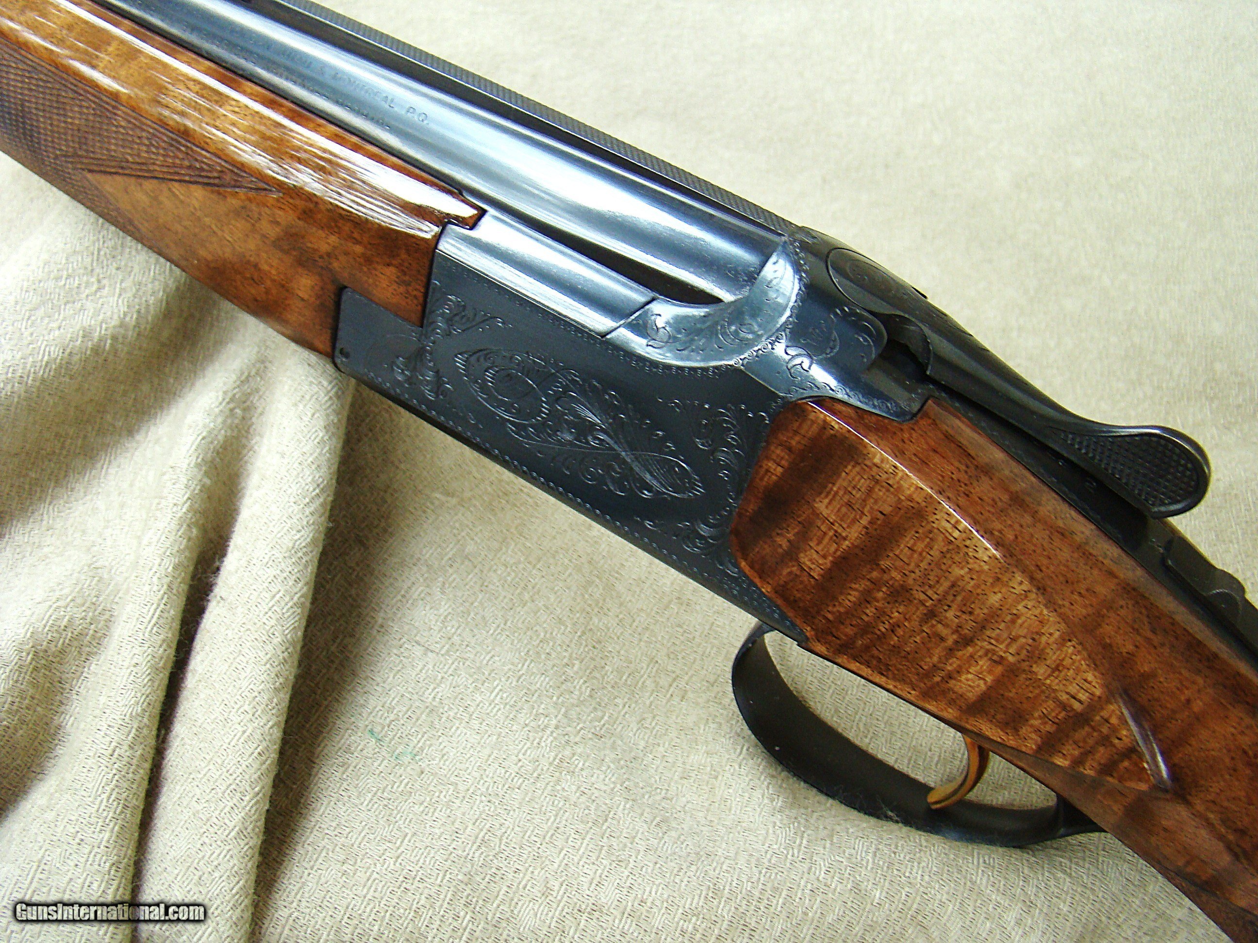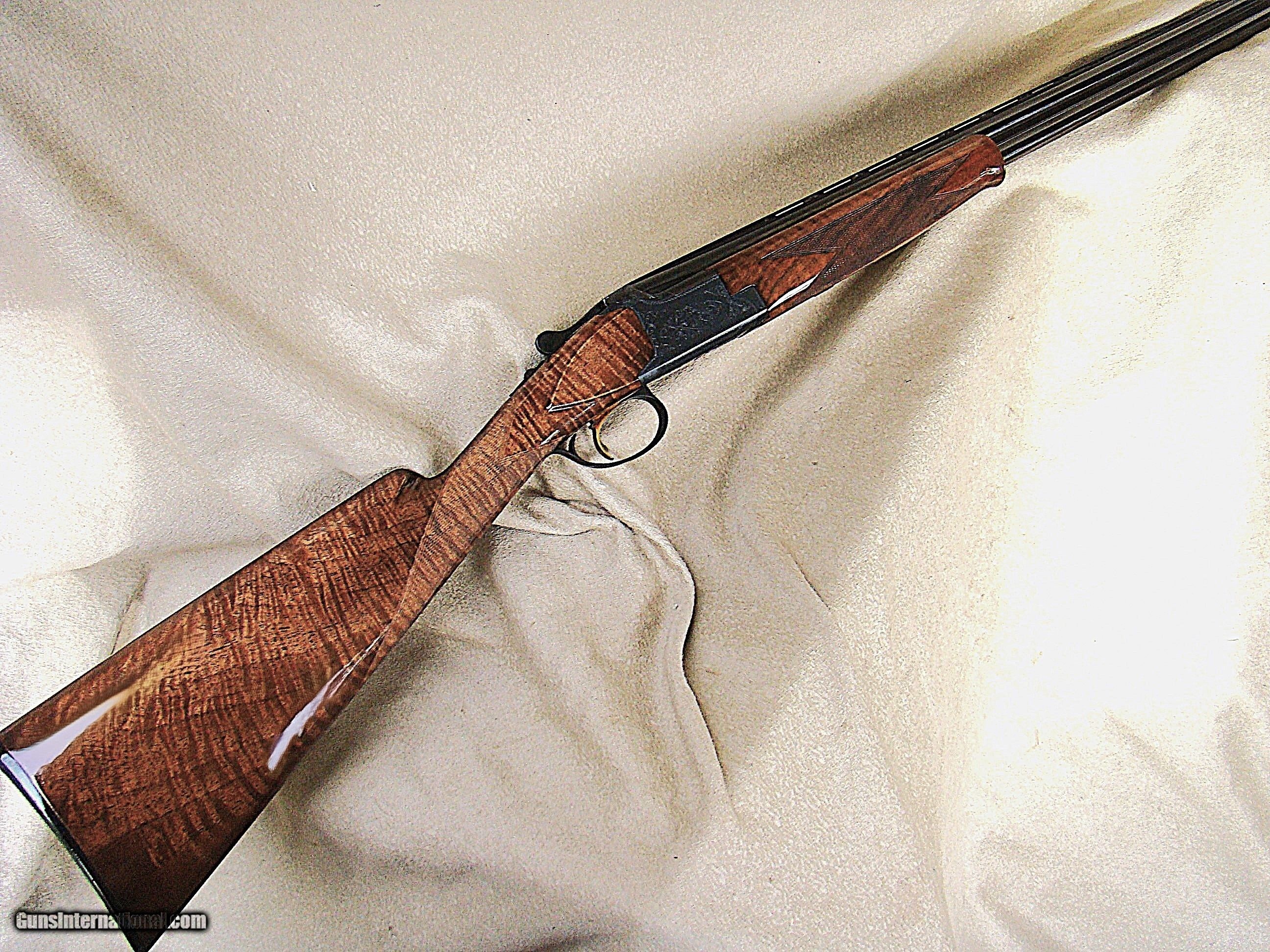 Description: Outstanding Browning Superlight 20 gauge. 26-1/2" vent rib barrels, special order choking, cylinder/improved cylinder (.003/.012). This is a late production example circa 1984. The action has the open scroll engraving signed A. Poes. Fabulous straight hand stock of wonderful color and bold flame grain figure that one would expect on a Pigeon grade! Schnabel forend with matching color and figure. With this choke combination and highly figured stock this just may be a special order. Measurements are 1-3/8" comb, 2-1/4" heel, 14-1/4" to the Browning butt plate. Weighs just 5 lbs 11 oz. A fine little Superlight with striking good looks. SOLD |