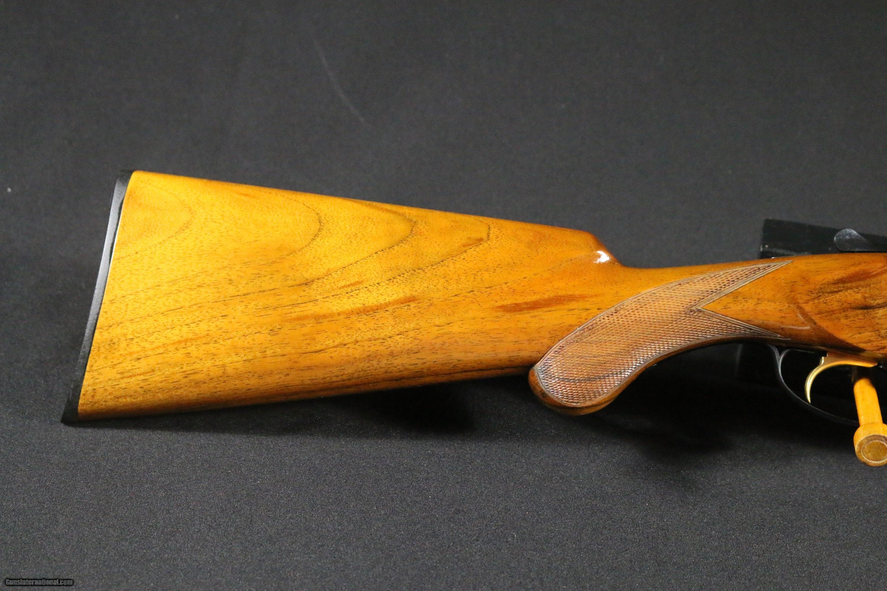 Description: MADE IN BELGIUM 1956. BARRELS ARE 28 INCHES WITH A VENT RIB AND CHOKED FULL AND MOD. 100% CONDITION. PLEASE ADD $40 FOR SHIPPING. RETURN POLICY: We offer a 3 day return policy. Items must be returned in the same condition as received. Notification must be made with-in 3 days of receipt at dealer. All fees are non-refundable no exceptions. LAY-A-WAY: We offer a 60 day lay-a-way with a 1/3 up front and 1/3 every 30 days. Once started all sales are final with no exceptions. CONDITIONS OF SALE: Art’s Gun Shop makes no express or implied warranty or representation with respect to items being advertised or sold. In no event shall Art’s Gun Shop be held responsible for correctness of description, representation, or warranty of items sold by them or their representatives. All items sold as collector items. All liability concerning the use of any weapons purchased from Art’s Gun Shop or its representatives is assumed by the purchaser. SOLD Manufacturer: BROWNING Model: SUPERPOSED Condition: EXCELLENT Metal Condition: EXCELLENT Wood Condition: EXCELLENT Bore Condition: EXCELLENT Action: O/U Triggers: SINGLE/GOLD LOP: 14 1/4 Rib: VENT Weight: 8 LBS. Manufacture Date: 1956 Extras: NONE |
