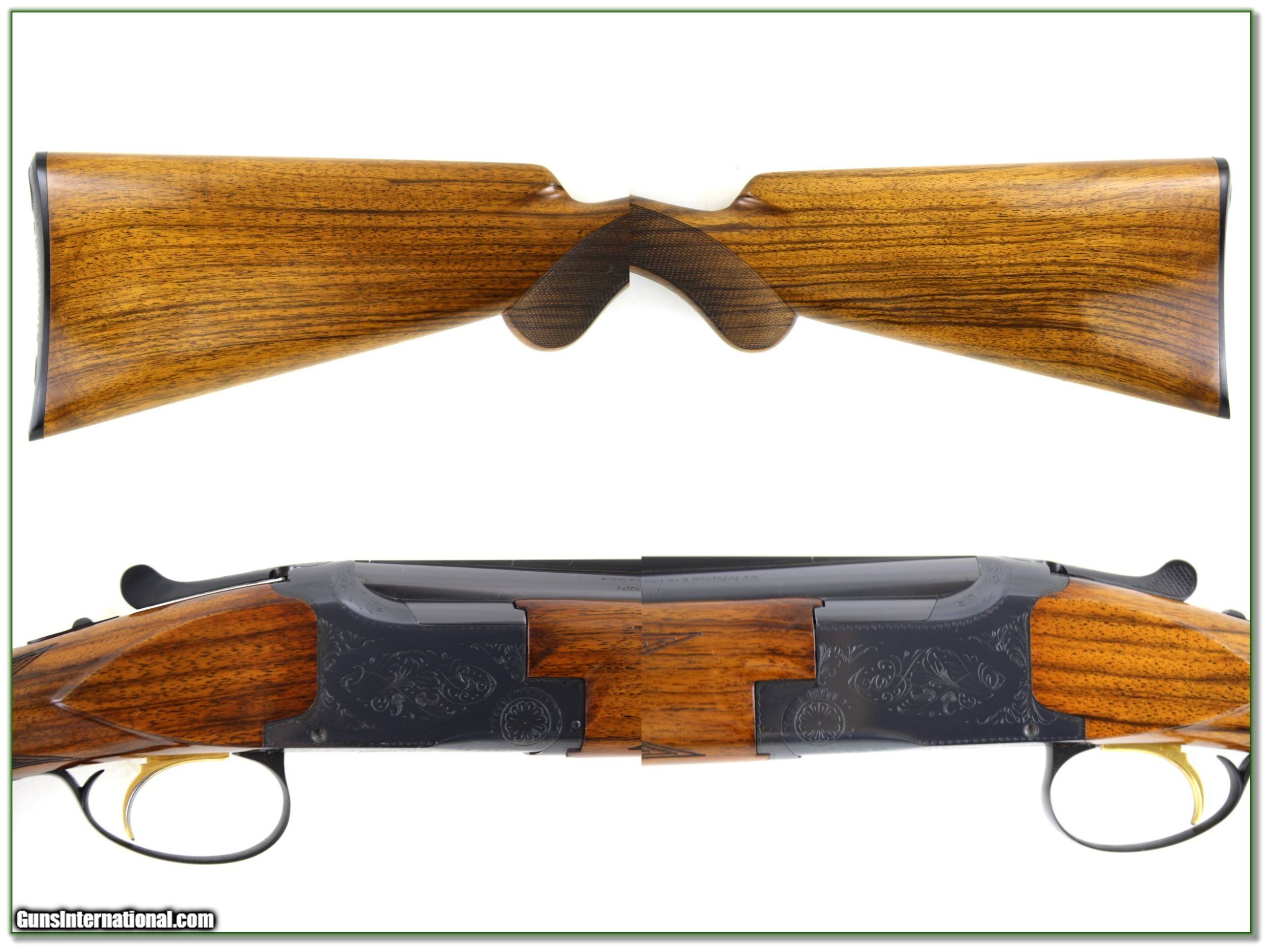 Description: This is a beautiful 1965 Belgium made Browning Superposed 20 Gauge. No saltwood worries with a 1965 gun and look at the wood! You will look hard to find nicer on a grade 1 gun. Most Pigeon grades don’t have wood this nicer! It is in excellent condition and has 26.5in barrels choked IC and Mod. I find only a few marks on the wood. It will make a classic bird gun and will be a find addition to your collection. It is a Shooting Investment! Shipping and insurance is $59. Please email me with any questions or larger pictures. (Consign your quality firearms with Shooting Investments for only 12%! Let me know if you have any you would like to sell!) 21-0049 Payment: Payment is by Money Order, Cashiers Check or Personal Check. I can now also accept Credit Cards (MasterCard, Visa, Discover & American Express) with a 3% convenience fee. Shipping: The shipping charge will be listed in each description. It is $39 for most firearms. Some heavy guns or those insured for over $2000 will be higher. Shipments to Alaska and Hawaii are higher because air shipment is required. Most firearms are shipped on Tuesday and Thursday and usually in 5 days of receipt of payment. We package all shipments carefully and insure them. Optics are shipped Priority Mail and most other non-firearm shipments are shipped First Class. Returns: Our return policy is simple. If for any reason you are not pleased with your purchase, you may return your item for a full refund of purchase price. Ammunition cannot be returned. It is important to us that you are happy. Guns cannot be fired or dissembled before returning them and they must be returned in the same condition as received. Notification of a return must occur with-in 3 days of receipt at your dealer. Shipping, convenience and dealer fees are not refundable and are the responsibility of the buyer. Lay-a-way: If needed, we offer a 60 day lay-a-way option on most firearms. It is 1/3 now, 1/3 in 30 days and 1/3 in 60 days. Lay-a-way firearm sales are final and if not completed the first payment cannot be returned. Consigning your firearms with Shooting Investments: We will help you get top dollar for your firearms. While most local guns shops charge 20% or more, our fee is only 12% with a minimum of $75. At your local gun shop it might take months to sell. Selling on-line provides instant access to thousands of interested buyers. You won’t find any other on-line dealer willing to sell your firearms for only 12% or listing every gun on 3 separate s. Selling through an House typically costs the seller 15% and the buyer an addition 15% (so 30%) and you have to wait several months to sell and longer to receive funds. If properly priced, we will sell your firearms in a few weeks. Send us an email or give us a call and we’ll explain how easy it is for you to get top dollar. Trading: Trading for use is really just buying your gun to re-sell. If you have a gun you want to trade, please email a picture and we will let you know what we can give or it. You will always get more if we sell it for you on consignment. Help for California Buyers: We are happy to ship to California. It is the buyer’s responsibility to make sure any item you buy is legal in your state. We are also happy to help with your purchase of a firearm from someone other than us. If you see a gun you would like to buy but the seller can’t or won’t ship to California they can ship to use and we’ll then ship it to your California dealer. The cost for this service is only $30 + shipping. Let us know if we can help! SOLD |