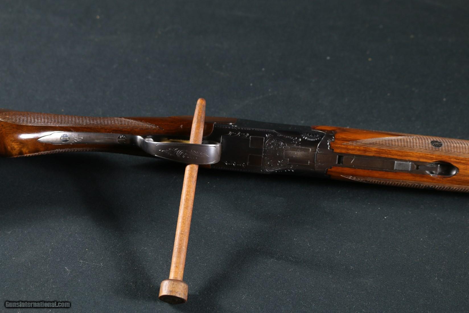 Description: MADE IN BELGIUM IN 1960. BARRELS ARE 28 INCHES WITH A VENT RIB AND CHOKED I.C. AND MOD. 97% CONDITION WITH FACTORY FINISH. PLEASE ADD $40 FOR SHIPPING. RETURN POLICY: We offer a 3 day return policy. Items must be returned in the same condition as received. Notification must be made with-in 3 days of receipt at dealer. All fees are non-refundable no exceptions. LAY-A-WAY: We offer a 60 day lay-a-way with a 1/3 up front and 1/3 every 30 days. Once started all sales are final with no exceptions. CONDITIONS OF SALE: Art’s Gun Shop makes no express or implied warranty or representation with respect to items being advertised or sold. In no event shall Art’s Gun Shop be held responsible for correctness of description, representation, or warranty of items sold by them or their representatives. All items sold as collector items. All liability concerning the use of any weapons purchased from Art’s Gun Shop or its representatives is assumed by the purchaser. SOLD Manufacturer: BROWNING Model: SUPERPOSED Condition: EXCELLENT Metal Condition: EXCELLENT Wood Condition: EXCELLENT Bore Condition: EXCELLENT Action: O/U Triggers: SINGLE/GOLD LOP: 14 1/4 Weight: 7 PDS Extras: NONE |