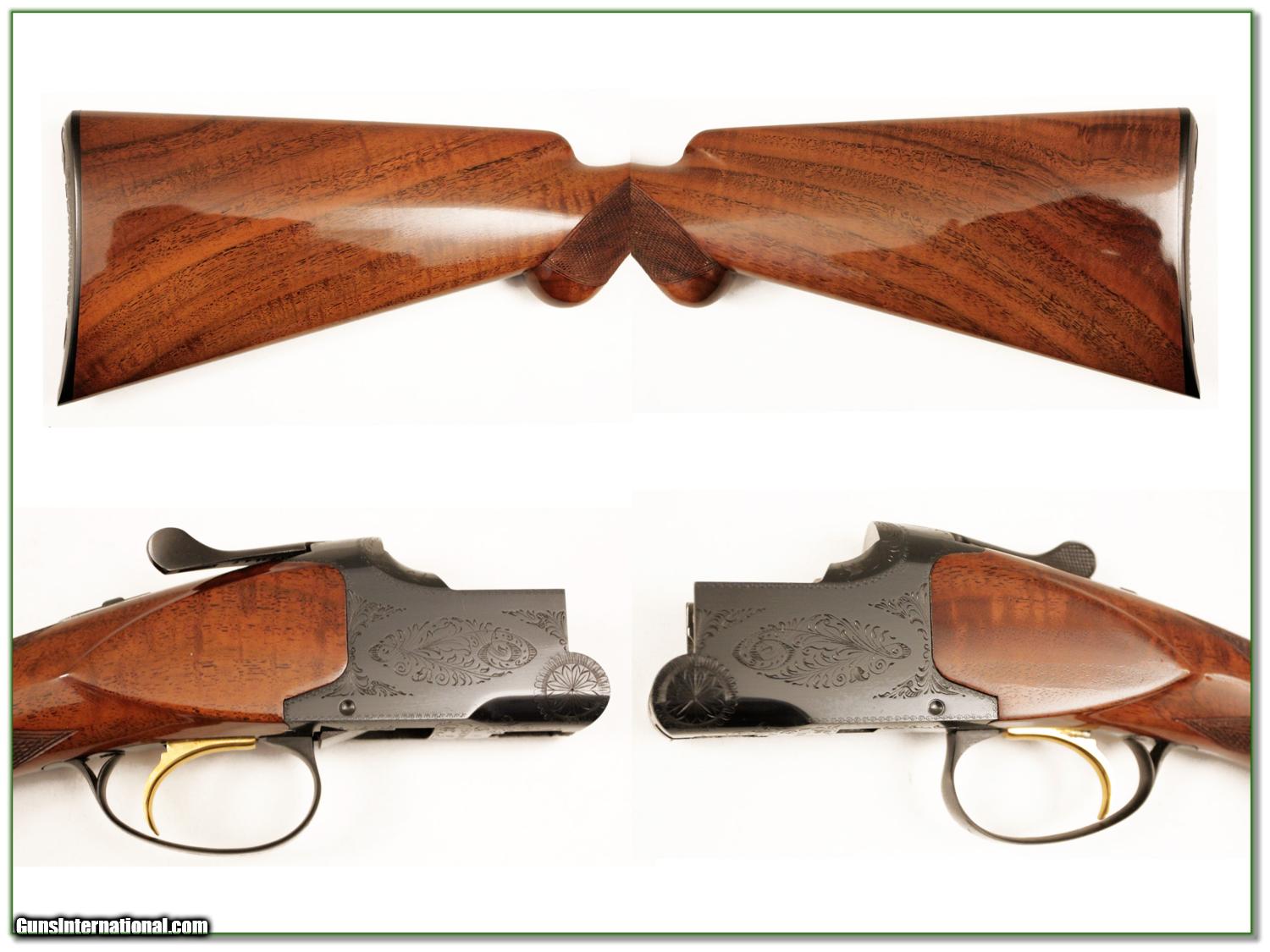 Description: Collectors and shooters, this is a beautiful Browning Superposed round knob. The wood is MUCH better than most and this one is as new in original box with manual and warrantee hangtag. I am not 100% sure it is unfired but the wood is perfect and the blue is perfect. It is a 26.5 in skeet and skeet. It was made in Belgium in 1967 and I am 1005 sure it is not saltwood. It will make a prized addition to your collection. Shipping and insurance is $40. Please email me with any questions or larger pictures. (I now consign quality firearms only 10%! Let me know if you have any you would like to sell!) [15-0445] Terms & Conditions Payment: Payment is by Money Order, Cashiers Check or Personal Check. I can now also accept MasterCard and Visa with a 3% convenience fee. PayPal can be used for some items but never firearms. Please let us know if you would like to pay via PayPal. Shipping: The shipping charge will be listed in each description. It is $30 for most guns. Some heavy guns or those insured for over $2000 may be higher. Shipments to Alaska and Hawaii are higher because air shipment is required. Most firearms are shipped within 5 days of receipt of payment. We prefer shipping at the beginning of the week to avoid firearms in transit over weekends. We package all shipments carefully and insure them for the full purchase price, rounded up to the next $100. In the unlikely event that damage occurs, it is important that you save all packaging material for the claims process. Optics are shipped Priority Mail and most other non-firearm shipments are shipped First Class. Returns: Our return policy is simple. If for any reason you are not pleased with your purchase, you may return your item for a refund. The only exception is ammunition, it cannot be returned. It is important to us that you are happy. Guns cannot be fired or dissembled before returning them and must be returned in the same condition as received. Notification of a return must occur with-in 3 days of receipt at your dealer. Shipping, convenience and dealer fees are not refundable and are the responsibility of the buyer. Lay-a-way: If needed, we offer a 60 day lay-a-way option on most firearms. It is 1/3 now, 1/3 in 30 days and 1/3 in 60 days. Lay-a-way firearm sales are final. Consigning your firearms with Shooting Investments: We will help you get top dollar for your firearms. While most local guns shops charge 20% or more, our fee is only 10% with a minimum of $50. At your local gun shop it might take months to sell. Selling on-line provides instant access to thousands of interested buyers. You won’t find any other on-line dealer willing to sell your firearms for only 10% or listing every gun on 4 separate s. Selling through an House typically costs 15% and you have to wait several months to sell and longer to receive funds. If properly priced, we will sell your firearms in a week or two. Send us an email or give us a call and we’ll explain how easy it is for you to get top dollar. Trading: We collect guns and usually just trade for guns we want to add to our collections. We often sell guns for others wanting to purchase one of ours. We find this the most fair to both of us. Our Commission is only 10% and we hold the gun you want until yours sells. Please contact us if you want to sell one of yours to buy one of ours. Help for California Buyers: We are happy to ship to California. It is the buyer’s responsibility to make sure any item you buy is legal in your state. We are also happy to help with your purchase of a firearm from someone other than us. If you see a gun you would like to buy but the seller can’t or won’t ship to California we can help. You buy the gun and have it shipped to us. We’ll then ship it to your California dealer. The cost for this service is only $30 + shipping. Let me know if we can help! SOLD |