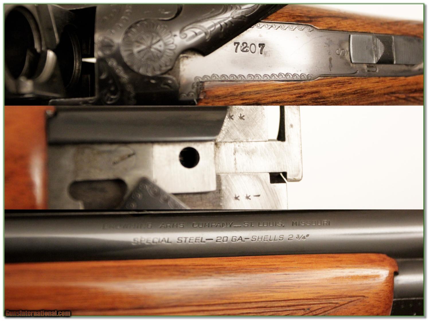 Description: Collectors, shooters and hunters, this is an excellent condition and early 1954 Belgium made Browning Superposed 20 gauge. It has 26in barrels choked Mod and IC and a VR. Original finished with beautiful rust blue and wood have only a couple insignificant handing marks. Horn butt plate is worm hole free. This will make a classic field gun and they don’t make them like this anymore! It is a Shooting Investment. Shipping and insurance is $45 and only $15 more if you want it shipped in a new Plano hard case. (I now consign quality firearms only 10%! Let me know if you have any you would like to sell!) [15-1477] Payment: Payment is by Money Order, Cashiers Check or Personal Check. I can now also accept MasterCard and Visa with a 3% convenience fee. PayPal can be used for some items but never firearms. Please let us know if you would like to pay via PayPal. Shipping: The shipping charge will be listed in each description. It is $35 for most guns. Some heavy guns or those insured for over $2000 will be higher. Shipments to Alaska and Hawaii are higher because air shipment is required. Most firearms are shipped within 5 days of receipt of payment. We prefer shipping at the beginning of the week to avoid firearms in transit over weekends. We package all shipments carefully and insure them for the full purchase price, rounded up to the next $100. In the unlikely event that damage occurs, it is important that you save all packaging material for the claims process. Optics are shipped Priority Mail and most other non-firearm shipments are shipped First Class. Returns: Our return policy is simple. If for any reason you are not pleased with your purchase, you may return your item for a refund. The only exception is ammunition, it cannot be returned. It is important to us that you are happy. Guns cannot be fired or dissembled before returning them and must be returned in the same condition as received. Notification of a return must occur with-in 3 days of receipt at your dealer. Shipping, convenience and dealer fees are not refundable and are the responsibility of the buyer. Lay-a-way: If needed, we offer a 60 day lay-a-way option on most firearms. It is 1/3 now, 1/3 in 30 days and 1/3 in 60 days. Lay-a-way firearm sales are final. Consigning your firearms with Shooting Investments: We will help you get top dollar for your firearms. While most local guns shops charge 20% or more, our fee is only 10% with a minimum of $50. At your local gun shop it might take months to sell. Selling on-line provides instant access to thousands of interested buyers. You won’t find any other on-line dealer willing to sell your firearms for only 10% or listing every gun on 4 separate s. Selling through an House typically costs the seller 15% and the buyer an addition 15% (so 30%) and you have to wait several months to sell and longer to receive funds. If properly priced, we will sell your firearms in a week or two. Send us an email or give us a call and we’ll explain how easy it is for you to get top dollar. Trading: We collect guns and usually just trade for guns we want to add to our collections. We often sell guns for others wanting to purchase one of ours. We find this the most fair to both of us. Our Commission is only 10% and we hold the gun you want until yours sells. Please contact us if you want to sell one of yours to buy one of ours. Help for California Buyers: We are happy to ship to California. It is the buyer’s responsibility to make sure any item you buy is legal in your state. We are also happy to help with your purchase of a firearm from someone other than us. If you see a gun you would like to buy but the seller can’t or won’t ship to California we can help. You buy the gun and have it shipped to us. We’ll then ship it to your California dealer. The cost for this service is only $30 + shipping. Let me know if we can help! SOLD |