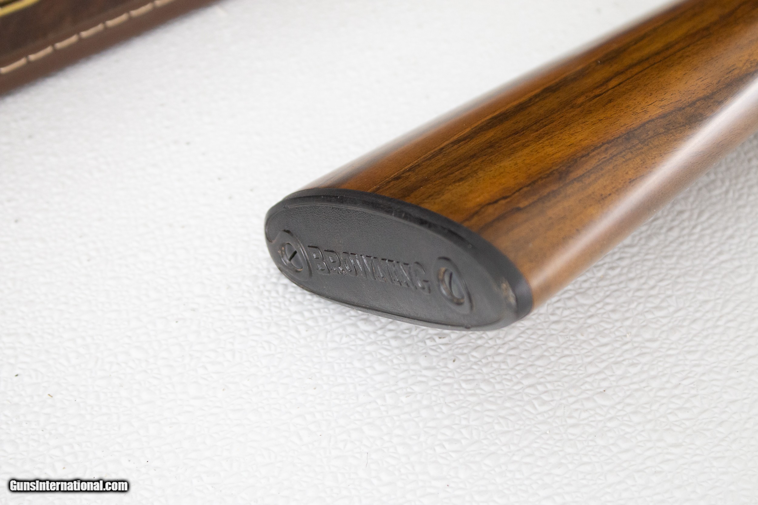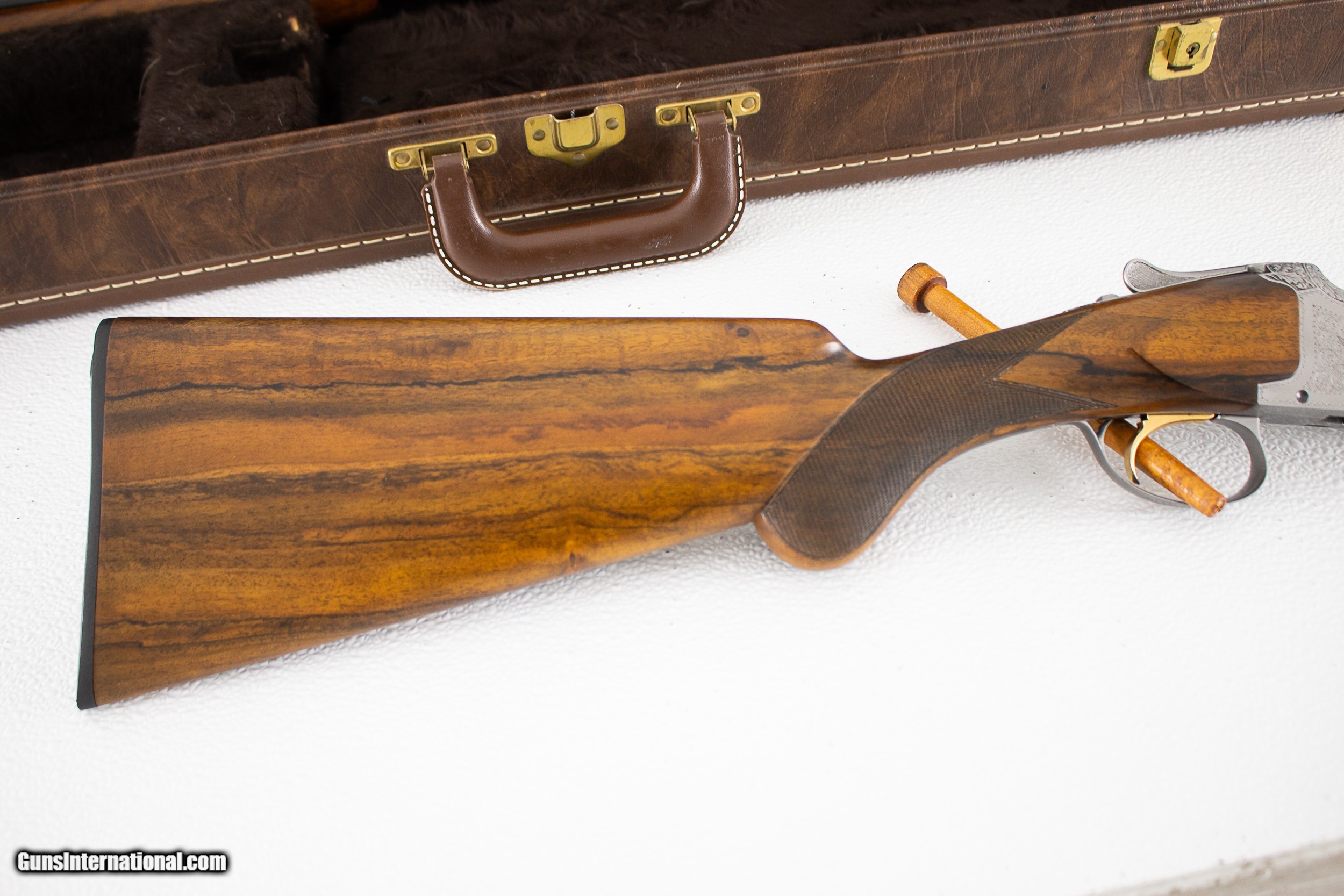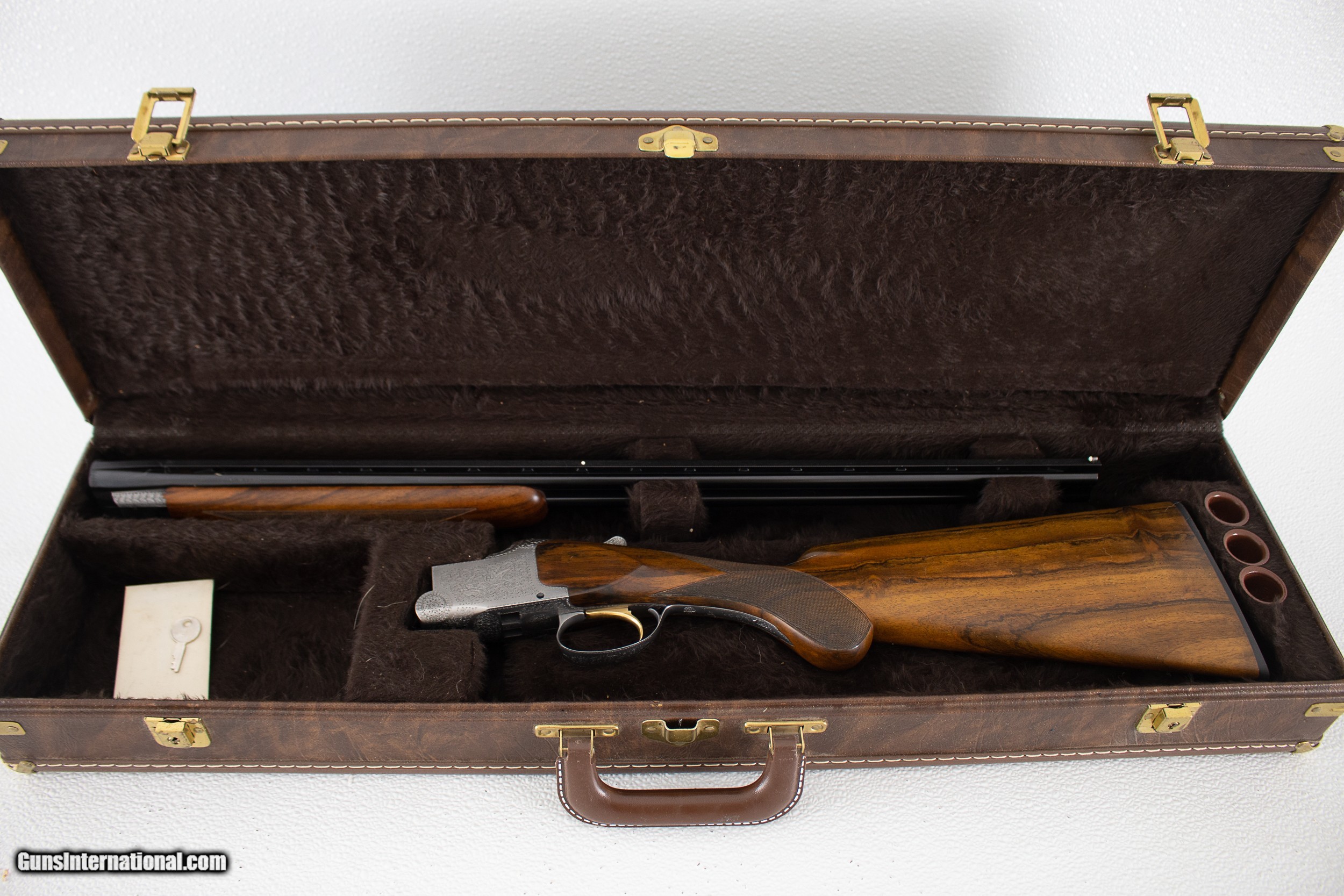 Description: MADE IN BELGIUM IN 1959. THIS IS THE SECOND .410 MADE. BARRELS ARE 26 3/8'' WITH A VENT RIB AND CHOKED SKEET/SKEET. INCLUDES CASE WITH KEY. PLEASE ADD $100 FOR SHIPPING. SOLD Curio/Relic: Yes Manufacturer: BROWNING Model: SUPERPOSED Condition: EXCELLENT Metal Condition: EXCELLENT Wood Condition: EXCELLENT Bore Condition: EXCELLENT Action: O/U Triggers: SINGLE/GOLD |