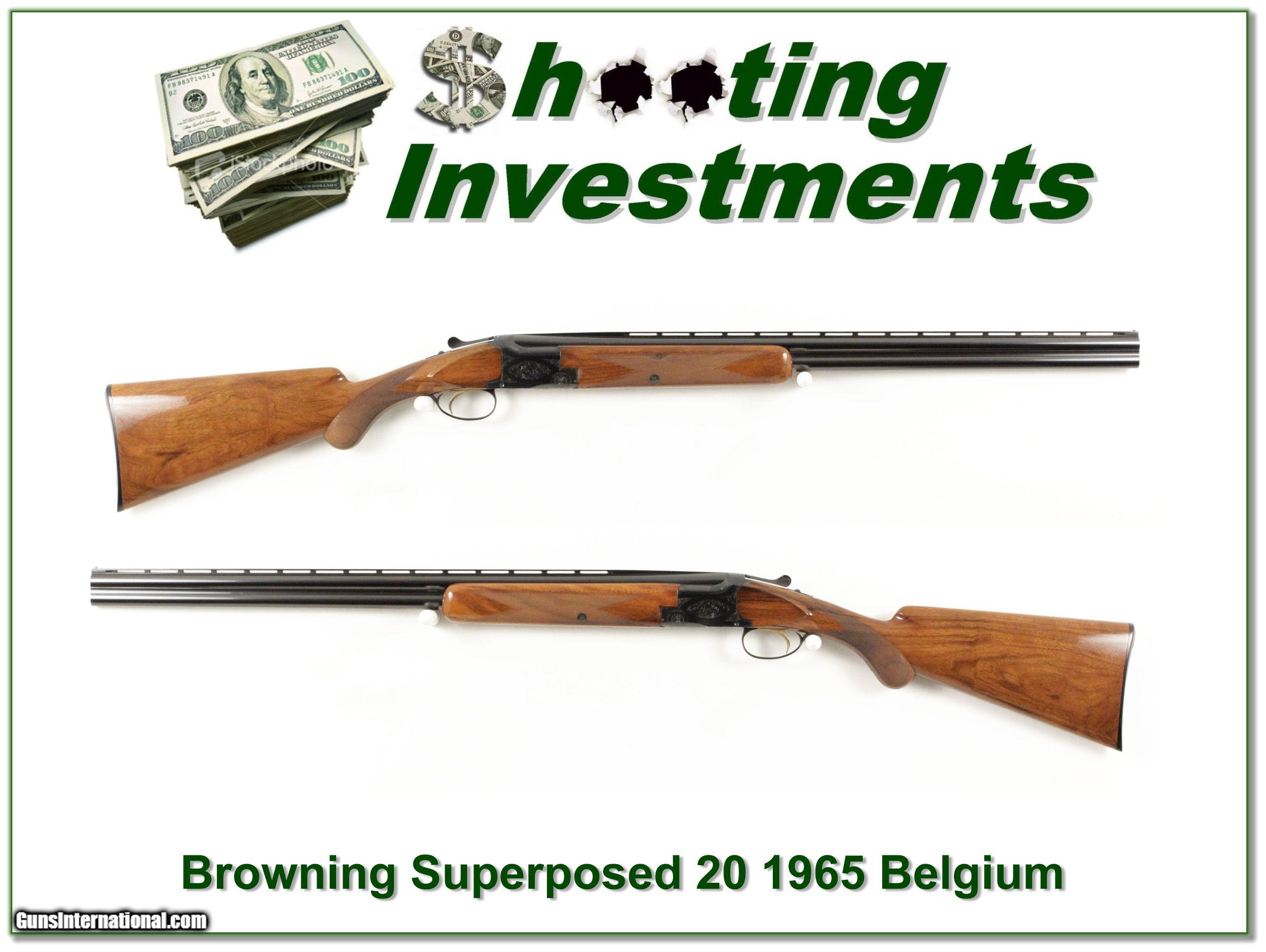 Description: This is a 1965 Belgium made Browning Superposed 20 Gauge. It has 26.5 in barrels choked full and Mod. The blue is excellent, and the wood shows some use on the bottom of the stock otherwise excellent. This is a pre-saltwood gun with Round Knob and Long Tang! It will make a classic field gun or fine addition to your collection. I am selling this one on consignment and as such, lay-a-way can’t be used. It does of course have the standard 3-day inspection. Shipping and insurance is $49. Please email me with any questions or larger pictures. (Consign your quality firearms with Shooting Investments for only 10%! Let me know if you have any you would like to sell!) 17-1191 Payment: Payment is by Money Order, Cashiers Check or Personal Check. I can now also accept MasterCard and Visa with a 3% convenience fee. PayPal can be used for some items but never firearms. Please let us know if you would like to pay via PayPal. Shipping: The shipping charge will be listed in each description. It is $39 for most long guns and $29 for most handguns. Some heavy guns or those insured for over $2000 will be higher. Shipments to Alaska and Hawaii are higher because air shipment is required. Most firearms are shipped on Tuesday and Thursday and usually in 5 days of receipt of payment. We package all shipments carefully and insure them. For long guns you can purchase a new Plano case for $19. They now cost us $22 when buying 100 at a time. Optics are shipped Priority Mail and most other non-firearm shipments are shipped First Class. Returns: Our return policy is simple. If for any reason you are not pleased with your purchase, you may return your item for a full refund of purchase price. Ammunition cannot be returned. It is important to us that you are happy. Guns cannot be fired or dissembled before returning them and they must be returned in the same condition as received. Notification of a return must occur with-in 3 days of receipt at your dealer. Shipping, convenience and dealer fees are not refundable and are the responsibility of the buyer. Lay-a-way: If needed, we offer a 60 day lay-a-way option on most firearms. It is 1/3 now, 1/3 in 30 days and 1/3 in 60 days. Lay-a-way firearm sales are final and if not completed the first payment cannot be returned. Consigning your firearms with Shooting Investments: We will help you get top dollar for your firearms. While most local guns shops charge 20% or more, our fee is only 10% with a minimum of $75. At your local gun shop it might take months to sell. Selling on-line provides instant access to thousands of interested buyers. You won’t find any other on-line dealer willing to sell your firearms for only 10% or listing every gun on 3 separate s. Selling through an House typically costs the seller 15% and the buyer an addition 15% (so 30%) and you have to wait several months to sell and longer to receive funds. If properly priced, we will sell your firearms in a few weeks. Send us an email or give us a call and we’ll explain how easy it is for you to get top dollar. Trading: Trading for use is really just buying your gun to re-sell. If you have a gun you want to trade, please email a picture and we will let you know what we can give or it. You will always get more if we sell it for you on consignment. Help for California Buyers: We are happy to ship to California. It is the buyer’s responsibility to make sure any item you buy is legal in your state. We are also happy to help with your purchase of a firearm from someone other than us. If you see a gun you would like to buy but the seller can’t or won’t ship to California they can ship to use and we’ll then ship it to your California dealer. The cost for this service is only $30 + shipping. Let us know if we can help! SOLD |
