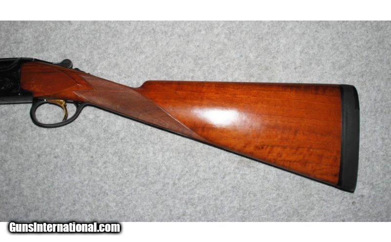 Description: ~ Browning Superposed English Stock 20 GA ~ SOLD Manufacturer: 1972 Caliber Info: 20 GA Chambers: 3 Metal Condition: Handling marks Wood Condition: Handling marks indentations on the stock Bore Condition: Very good Barrels: 28 Triggers: Single gold trigger. Stock: European walnut Stock Dimensions: LOP: 15 1/2 Fore End: European walnut Butt Pad: Black rubber pad Weight: 6 .15 Lbs Sights: Brass bead front/Brass bead middle Chokes: Modified/Improoved cylinder Item Location: Lacey, WA |