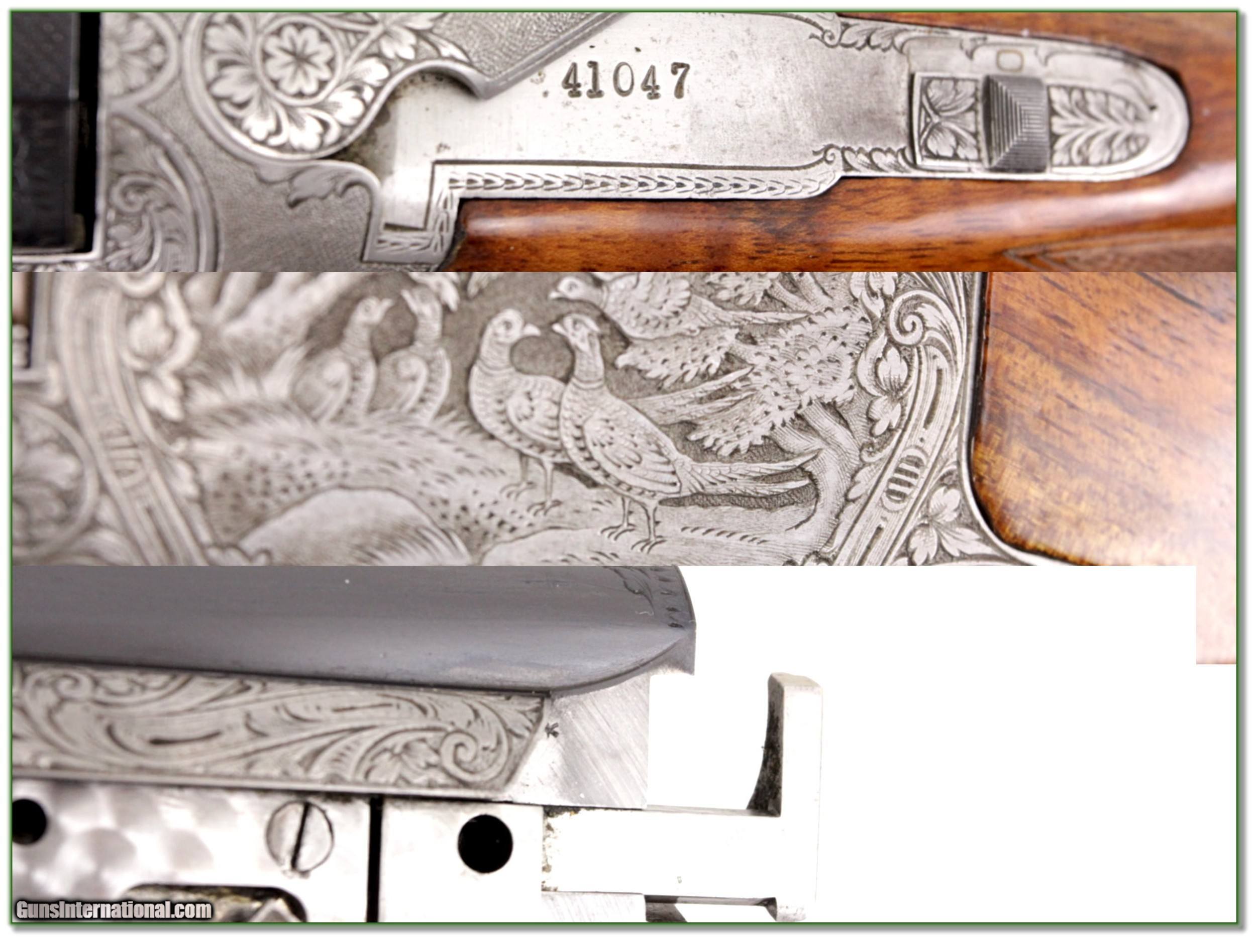 Description: Shooters and collectors, this is a 1954 Belgium made Browning Superposed 12 Gauge with hard to find Grade 4 engraving (like Diana Grade but more birds!) It is in excellent condition. The engraving was beautifully executed and signed V Doyen. It has a custom stock with right-handed cheek piece, palm swell and 14.25in LOP. The barrels are 30in choked Full and IM with the lower barrel ported. It will make a high-end clays gun for its next luck owner! I am selling this one on consignment and as such lay-a-way can’t be used. It does of course have the standard 3-day inspection. Shipping with insurance is $59. Please email me with any questions or larger pictures. (Consign your quality firearms with Shooting Investments for only 12%! Let me know if you have any you would like to sell!) 19-0816 Payment: Payment is by Money Order, Cashiers Check or Personal Check. I can now also accept Credit Cards (MasterCard, Visa, Discover & American Express) with a 3% convenience fee. PayPal can be used for some items but never for firearms. Shipping: The shipping charge will be listed in each description. It is $39 for most firearms. Some heavy guns or those insured for over $2000 will be higher. Shipments to Alaska and Hawaii are higher because air shipment is required. Most firearms are shipped on Tuesday and Thursday and usually in 5 days of receipt of payment. We package all shipments carefully and insure them. Optics are shipped Priority Mail and most other non-firearm shipments are shipped First Class. Returns: Our return policy is simple. If for any reason you are not pleased with your purchase, you may return your item for a full refund of purchase price. Ammunition cannot be returned. It is important to us that you are happy. Guns cannot be fired or dissembled before returning them and they must be returned in the same condition as received. Notification of a return must occur with-in 3 days of receipt at your dealer. Shipping, convenience and dealer fees are not refundable and are the responsibility of the buyer. Lay-a-way: If needed, we offer a 60 day lay-a-way option on most firearms. It is 1/3 now, 1/3 in 30 days and 1/3 in 60 days. Lay-a-way firearm sales are final and if not completed the first payment cannot be returned. Consigning your firearms with Shooting Investments: We will help you get top dollar for your firearms. While most local guns shops charge 20% or more, our fee is only 12% with a minimum of $75. At your local gun shop it might take months to sell. Selling on-line provides instant access to thousands of interested buyers. You won’t find any other on-line dealer willing to sell your firearms for only 12% or listing every gun on 3 separate s. Selling through an House typically costs the seller 15% and the buyer an addition 15% (so 30%) and you have to wait several months to sell and longer to receive funds. If properly priced, we will sell your firearms in a few weeks. Send us an email or give us a call and we’ll explain how easy it is for you to get top dollar. Trading: Trading for use is really just buying your gun to re-sell. If you have a gun you want to trade, please email a picture and we will let you know what we can give or it. You will always get more if we sell it for you on consignment. Help for California Buyers: We are happy to ship to California. It is the buyer’s responsibility to make sure any item you buy is legal in your state. We are also happy to help with your purchase of a firearm from someone other than us. If you see a gun you would like to buy but the seller can’t or won’t ship to California they can ship to use and we’ll then ship it to your California dealer. The cost for this service is only $30 + shipping. Let us know if we can help! SOLD |