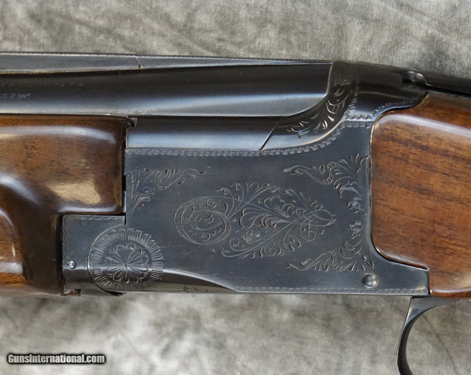 Description: Pre-Owned Browning Superposed Lightning Field 12GA with 30" fixed choke (IM/F) barrels, game rib. Bluing wear on barres, blued action showing wear. Aftermarket custom stock by unknown maker, beavertail style forearm-finish wear and scuffs in stock, inletting in stock is not performed well and has gaps. Does not include case. SOLD Shotgun Gauge: 12 Gauge |