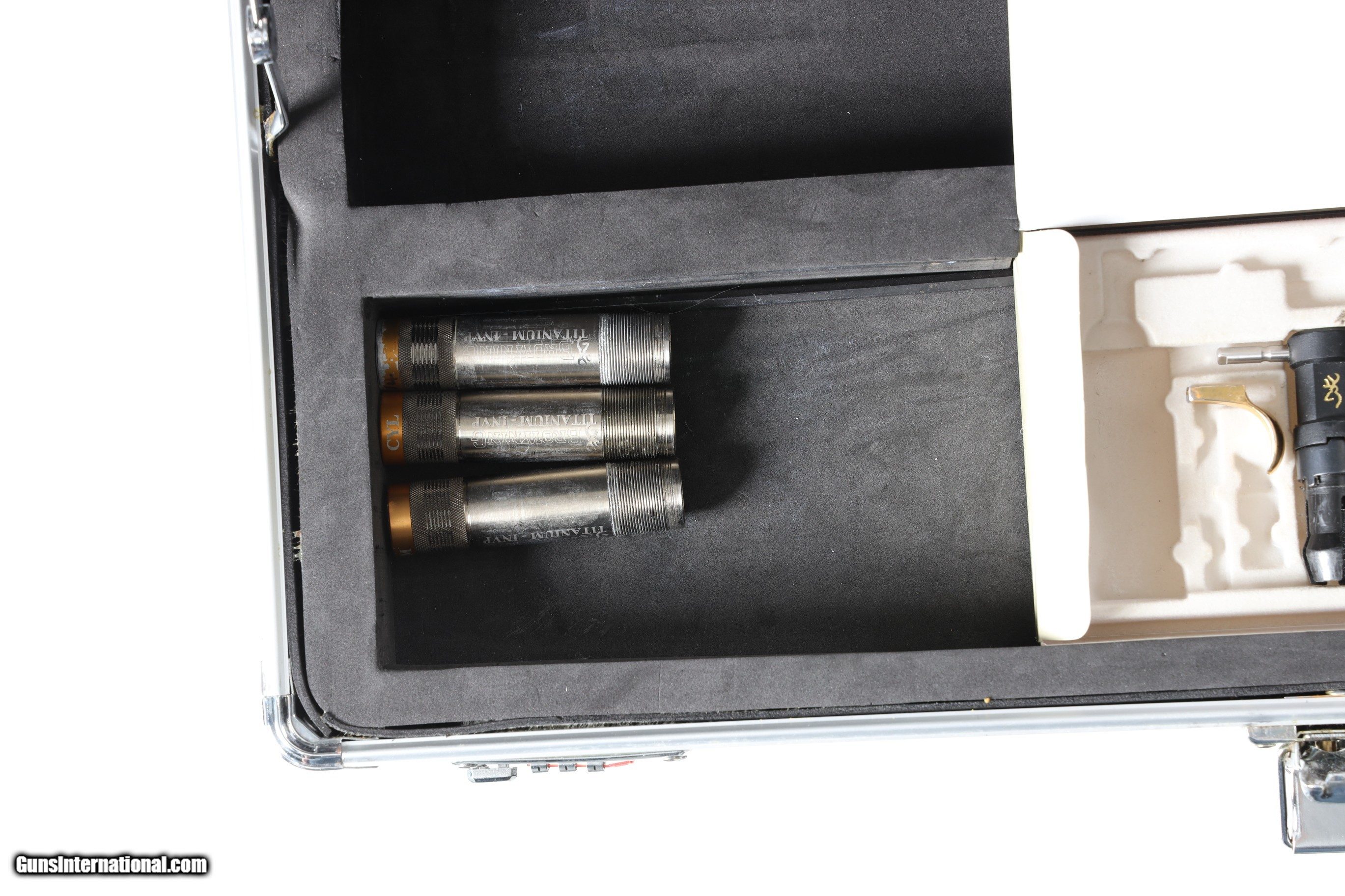 Description: Fine overall condition with light oxidation on barrels and numerous small bruises and impressions in stock. Choked Full/Imp Mod invector choke system, single selective trigger with ejectors, 3" chambers, LOP 14 1/2" with fully adjustable comb and butt. DAC with trunk case. • Free Shipping, No Credit Card Fees. • Lay-a-way available for this firearm. • 1/3 Down, a 1/3 in 30 Days 1/3 in 60 Days. SOLD Shotgun Gauge: 12 Gauge Manufacturer: Browning Model: Ultra XS Serial Number: 65245MR Barrel Length: 32 |