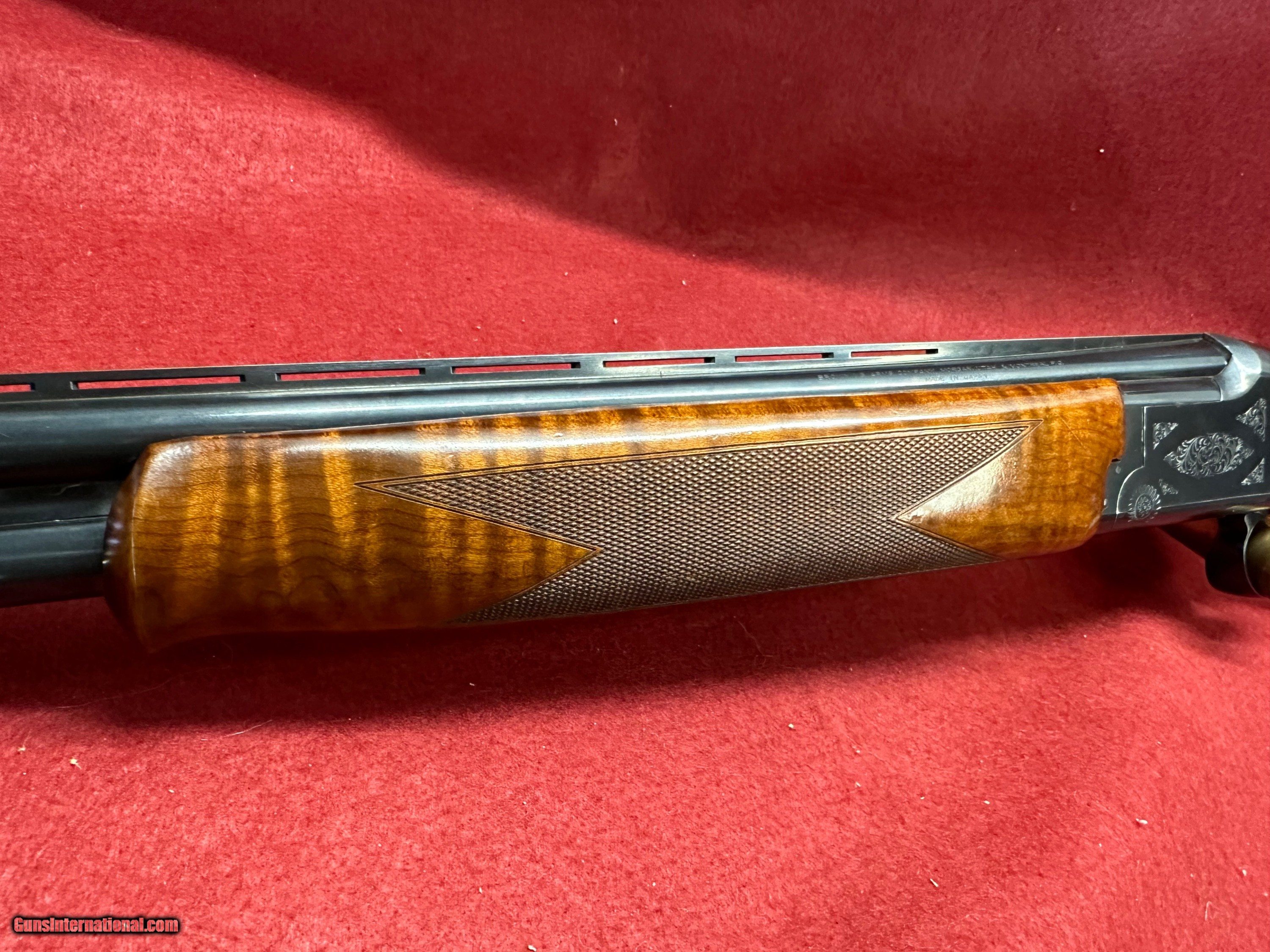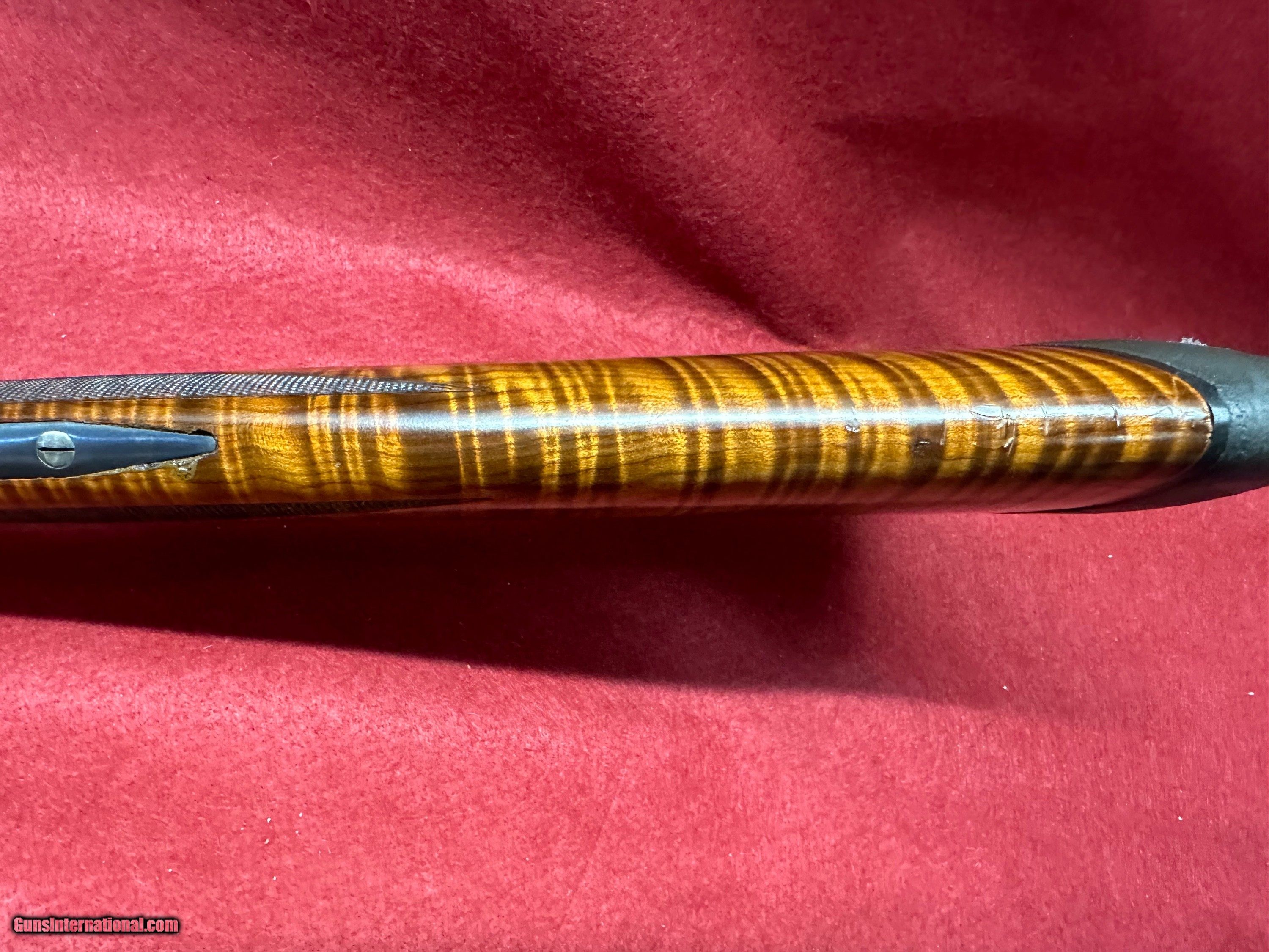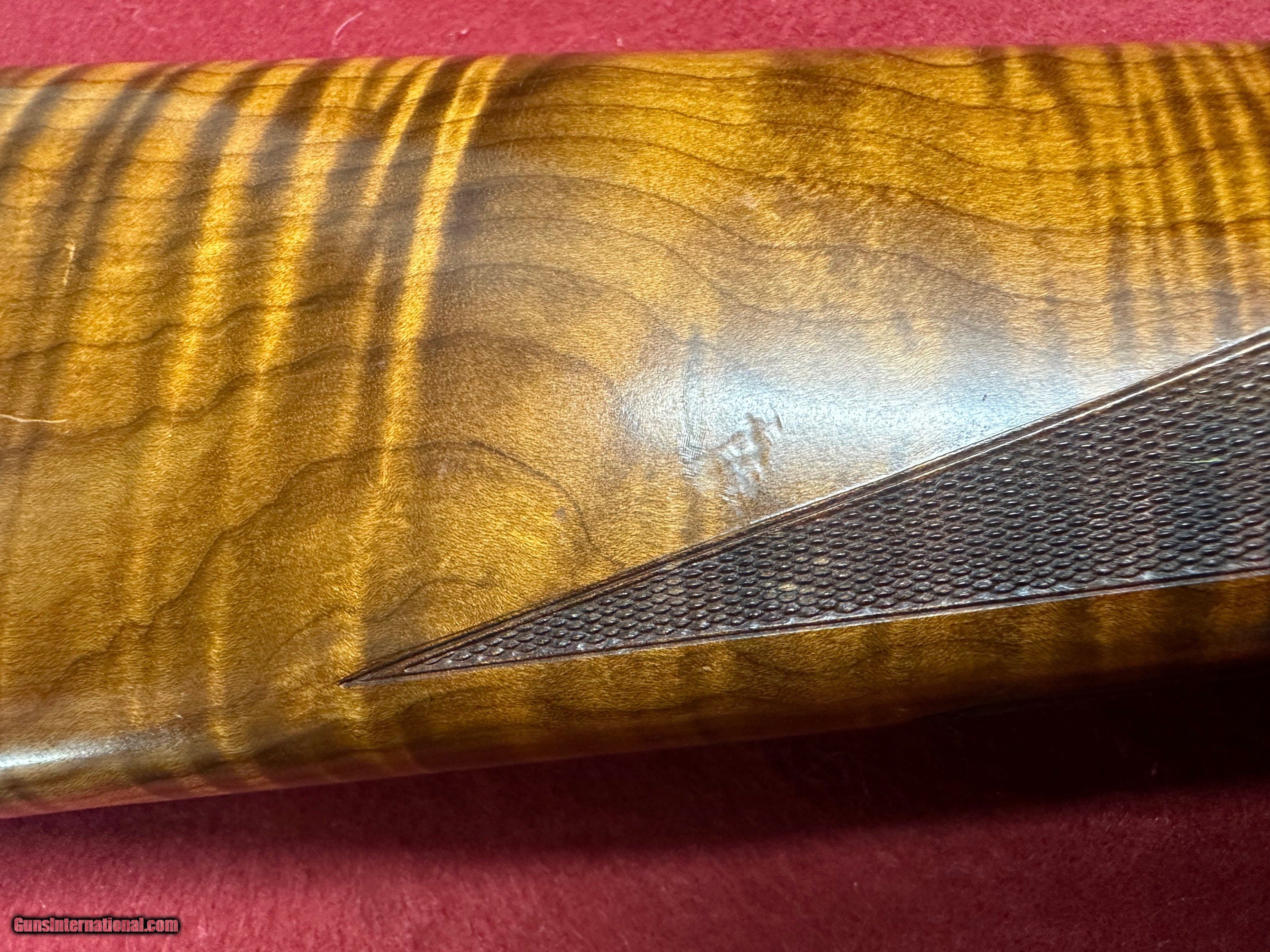 Description: The Browning Citori 20 ga Superlight features the most impressive tiger-striped walnut I've ever observed on a Grade I. This shotgun boasts a single selective trigger, auto ejectors, and removable choke tubes, including a skeet and improved cylinder choke tubes. It has a 14-1/4" length of pull, complemented by a well-fitted Limbsaver recoil reduction pad. The condition is very good, marred only by a few minor dings in the wood and three marks on the right side of the barrel, which prevent it from being in excellent condition. Overall, it's an exceptional shotgun with a superb gauge and absolutely stunning wood. Comes with 6 chokes, Original manual and Browning choke tube wrench. Price includes shipping and Credit card Fees SOLD Shotgun Gauge: 20 Gauge Manufacturer: Browning Model: Citori Serial Number: 18742PPA33 Barrel Length: 26 Condition: Very Good Metal Condition: Very Good Wood Condition: Very Good Bore Condition: Very Good Action: Break open LOP: 14-1/4 Rib: Vented Finish: Blued Manufacture Date: 1988 Engraving: On left and right side of the receiver Extras: Ejectors Single selective trigger Item Location: Buxton Maine |
