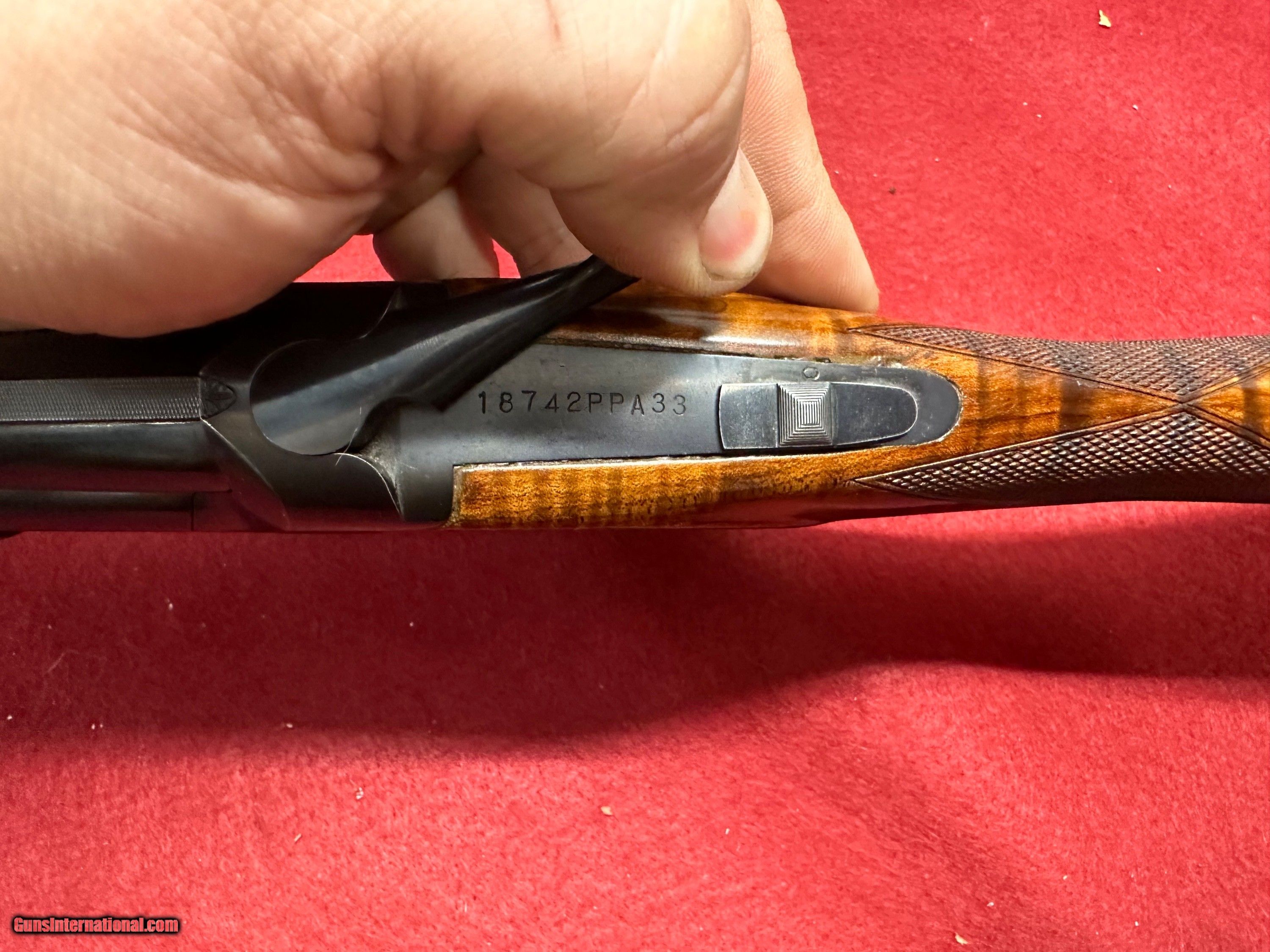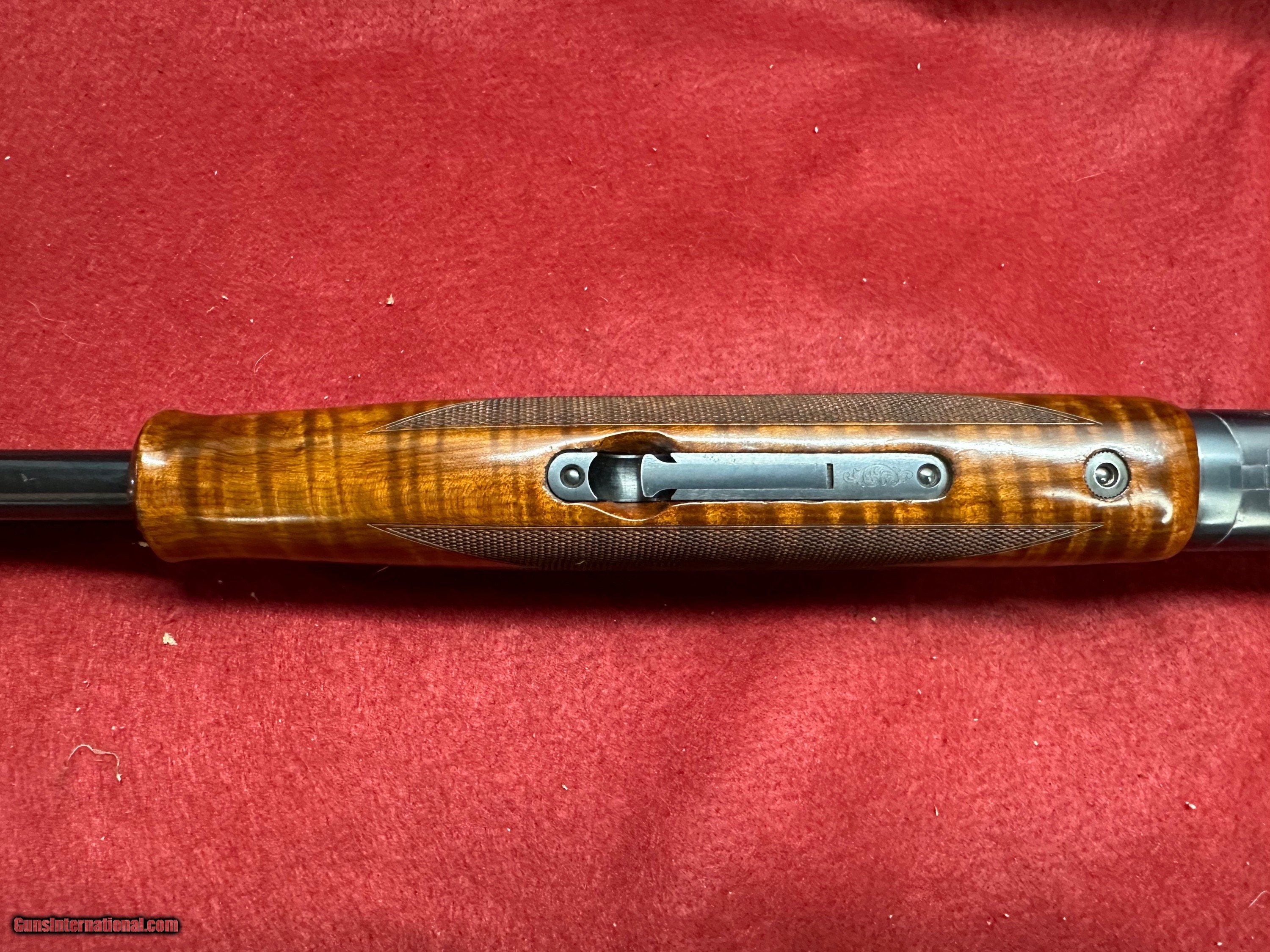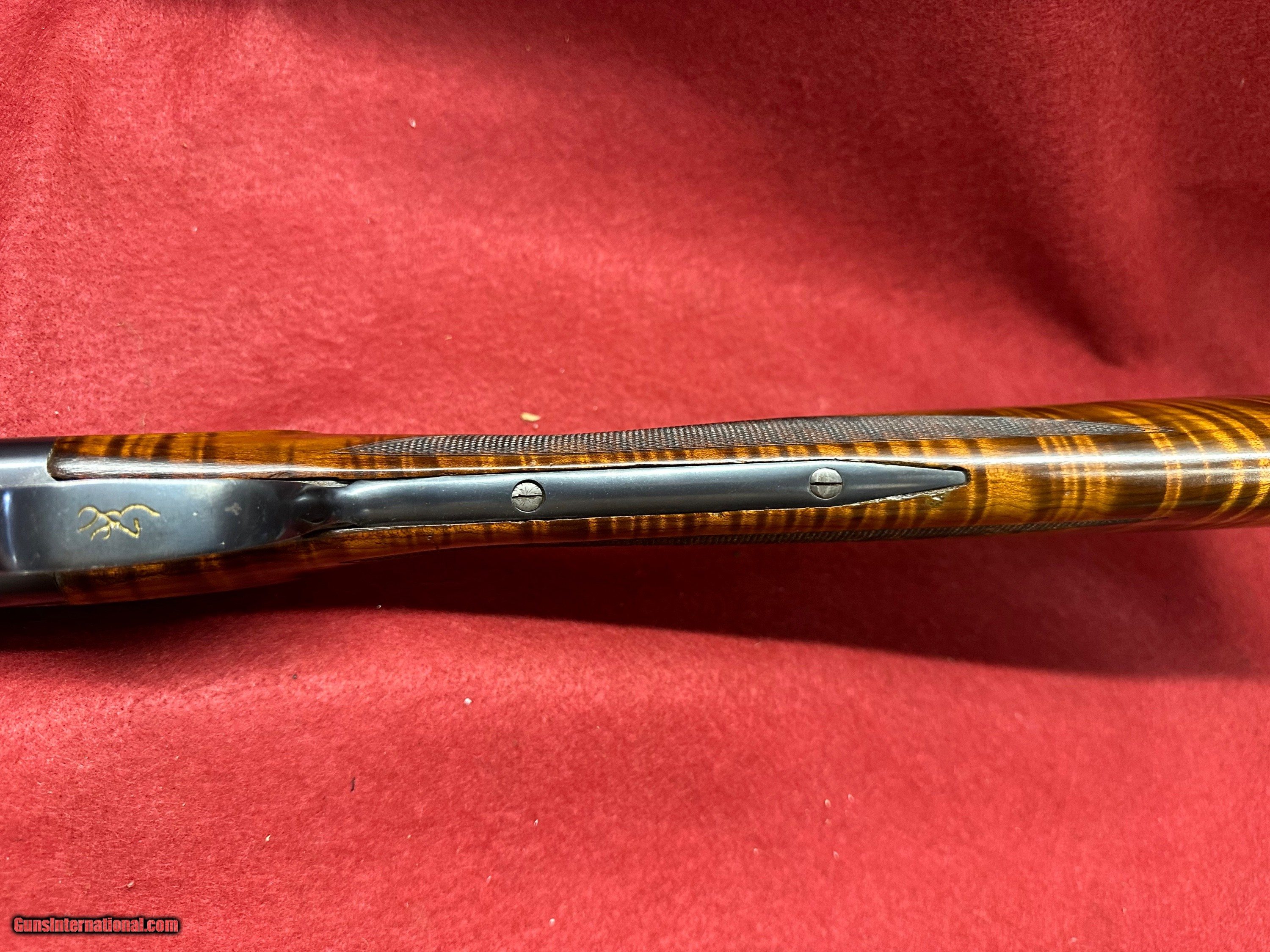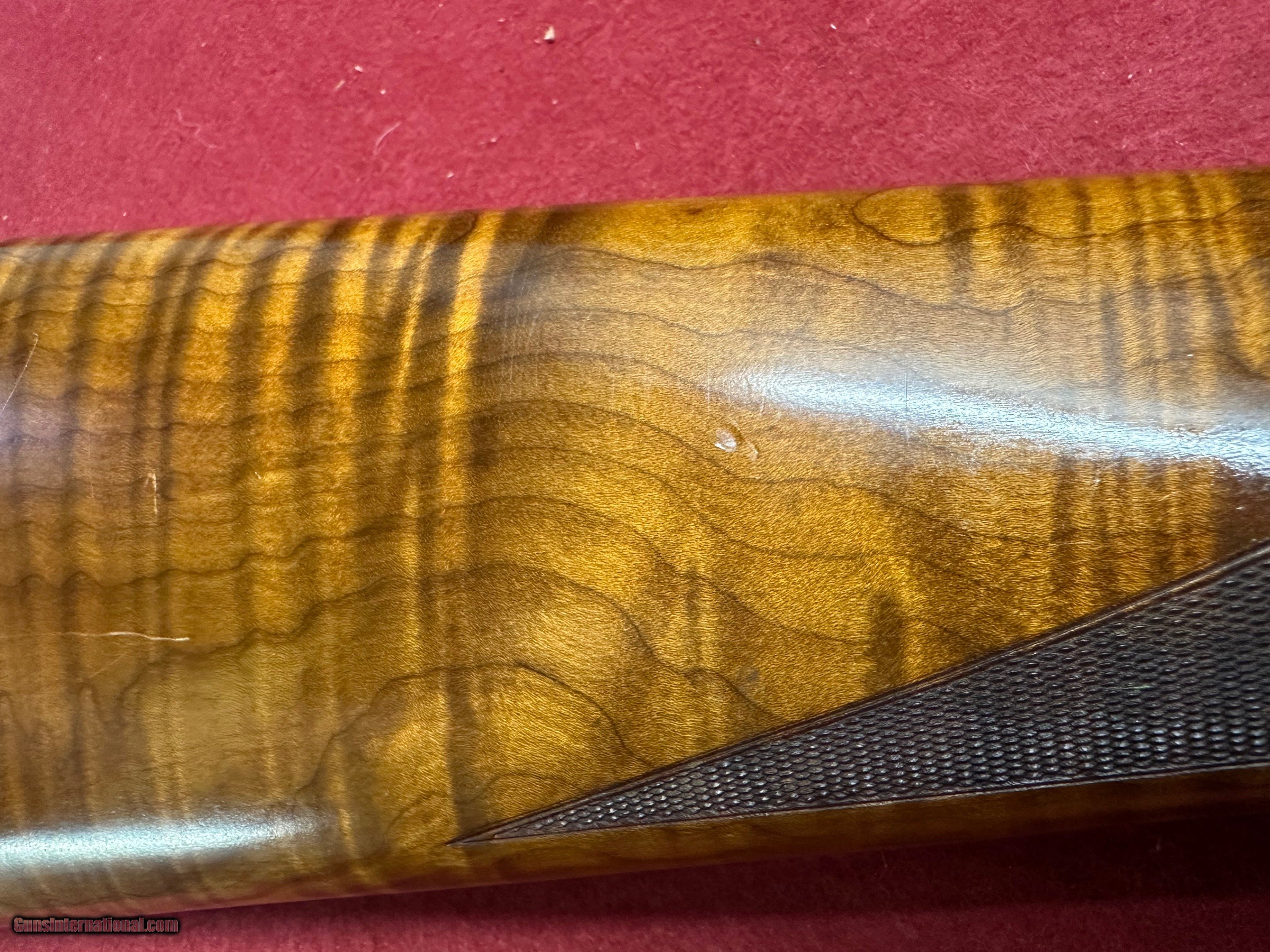 Description: The Browning Citori 20 ga Superlight features the most impressive tiger-striped walnut I've ever observed on a Grade I. This shotgun boasts a single selective trigger, auto ejectors, and removable choke tubes, including a skeet and improved cylinder choke tubes. It has a 14-1/4" length of pull, complemented by a well-fitted Limbsaver recoil reduction pad. The condition is very good, marred only by a few minor dings in the wood and three marks on the right side of the barrel, which prevent it from being in excellent condition. Overall, it's an exceptional shotgun with a superb gauge and absolutely stunning wood. Comes with 6 chokes, Original manual and Browning choke tube wrench. Price includes shipping and Credit card Fees SOLD Shotgun Gauge: 20 Gauge Manufacturer: Browning Model: Citori Serial Number: 18742PPA33 Barrel Length: 26 Condition: Very Good Metal Condition: Very Good Wood Condition: Very Good Bore Condition: Very Good Action: Break open LOP: 14-1/4 Rib: Vented Finish: Blued Manufacture Date: 1988 Engraving: On left and right side of the receiver Extras: Ejectors Single selective trigger Item Location: Buxton Maine |