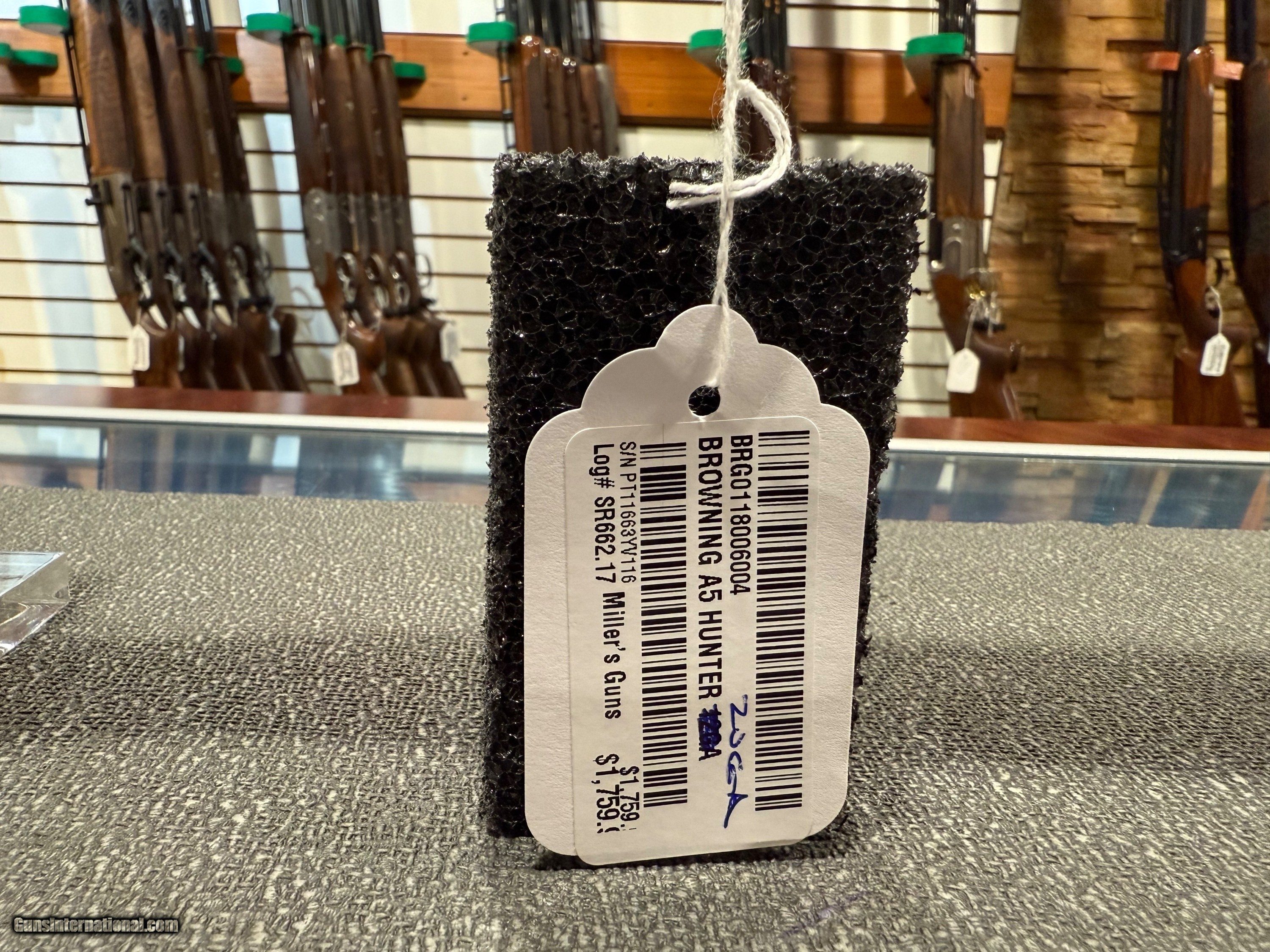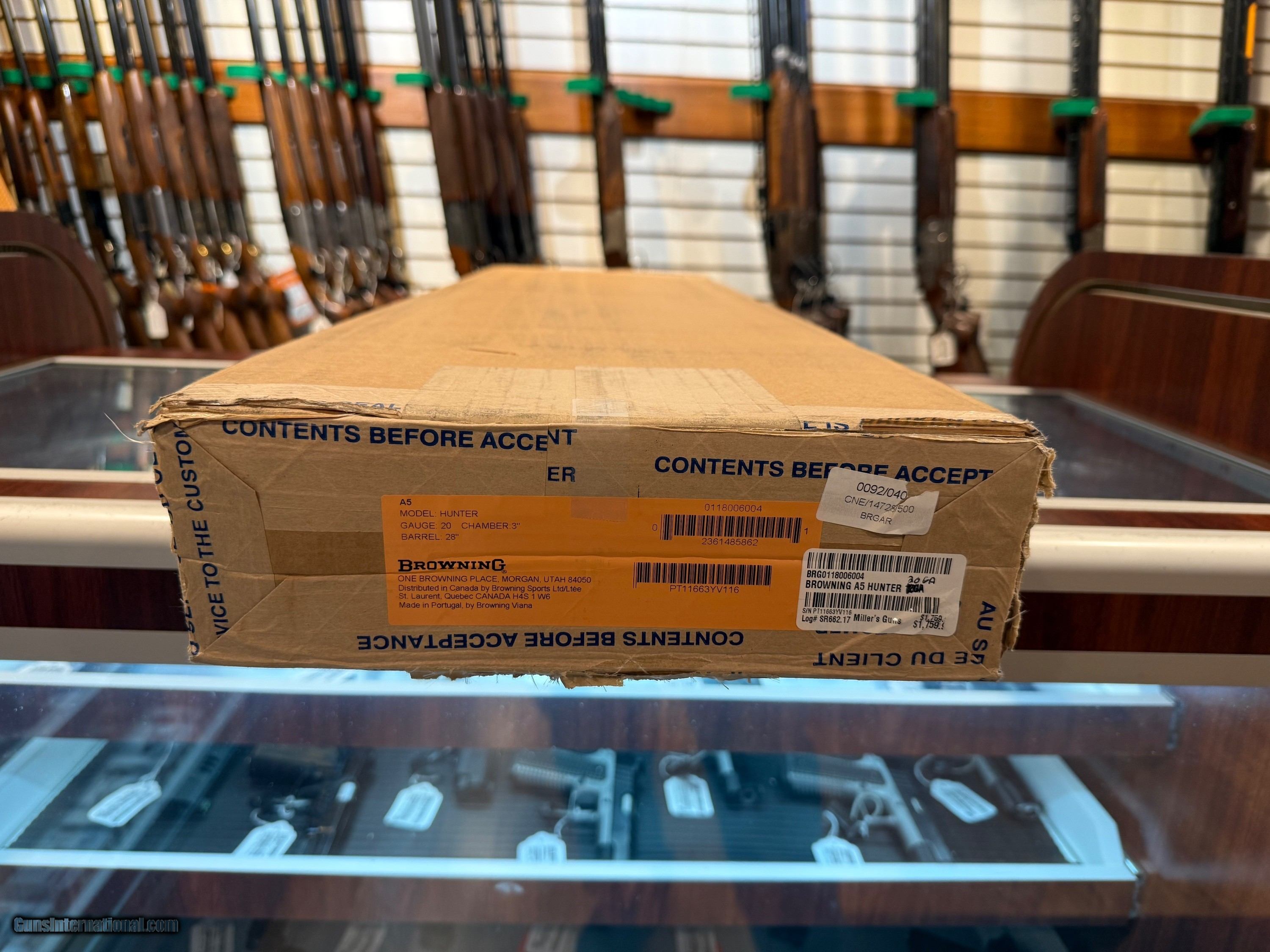 Description: New Browning A5 Hunter 20ga Semi auto 3" chamber 28" barrel 49 1/4" OAL 14 1/4" LOP 5lbs 10oz F,M,IC chokes included Browning Model # 0118006004 Shotgun Gauge: 20 Gauge Manufacturer: Browning Model: A5 Hunter Serial Number: PT11663YV116 Barrel Length: 28 Condition: NEW Price: $1,759.99 Contact Seller |