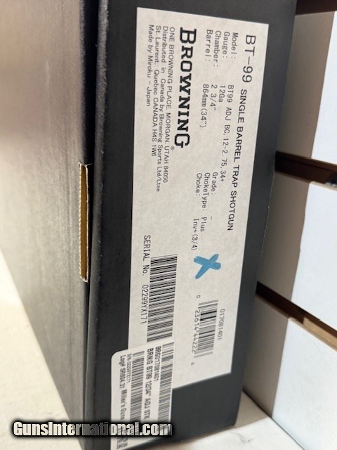 New Browning BT99, Single Barrel Trap Shotgun, 34" Barrel, 12 Gauge
