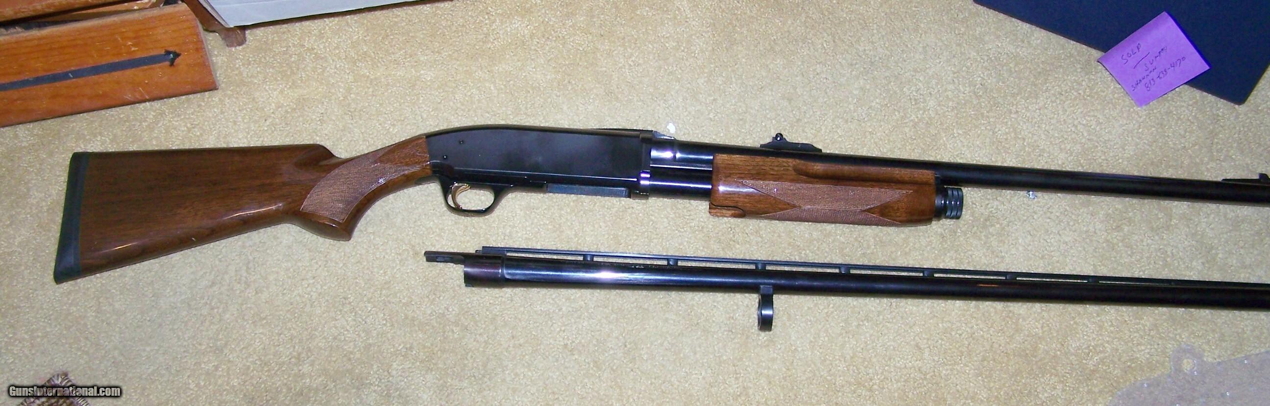 THIS IS A LIKE NEW 100% BLUEING BROWNING BPS GOLD TRIGGER GOLD ENGRAVING ON GUARD. COMES WITH 2 BARRELS SPICIAL STEEL 24" BUCK MODEL WITH RIFLE SIGHTS, SECOND BARREL SPICIAL STEEL FIELD INVECTOR PLUS CHOKE 30" I DON'T THINK THIS BARREL HAS BEEN SHOT. STOCK AND FORGRIP 99.5%.. HAS BROWNING RECOIL PAD. COMES IN SPICIAL HARD CASE. NO ISSUES OR PROBLEMS WITH THIS GREAT GUN. SHOTS 2/34 AND 3" MAGNUM .595.00 MAY TAKE TRADE OR PART TRADE