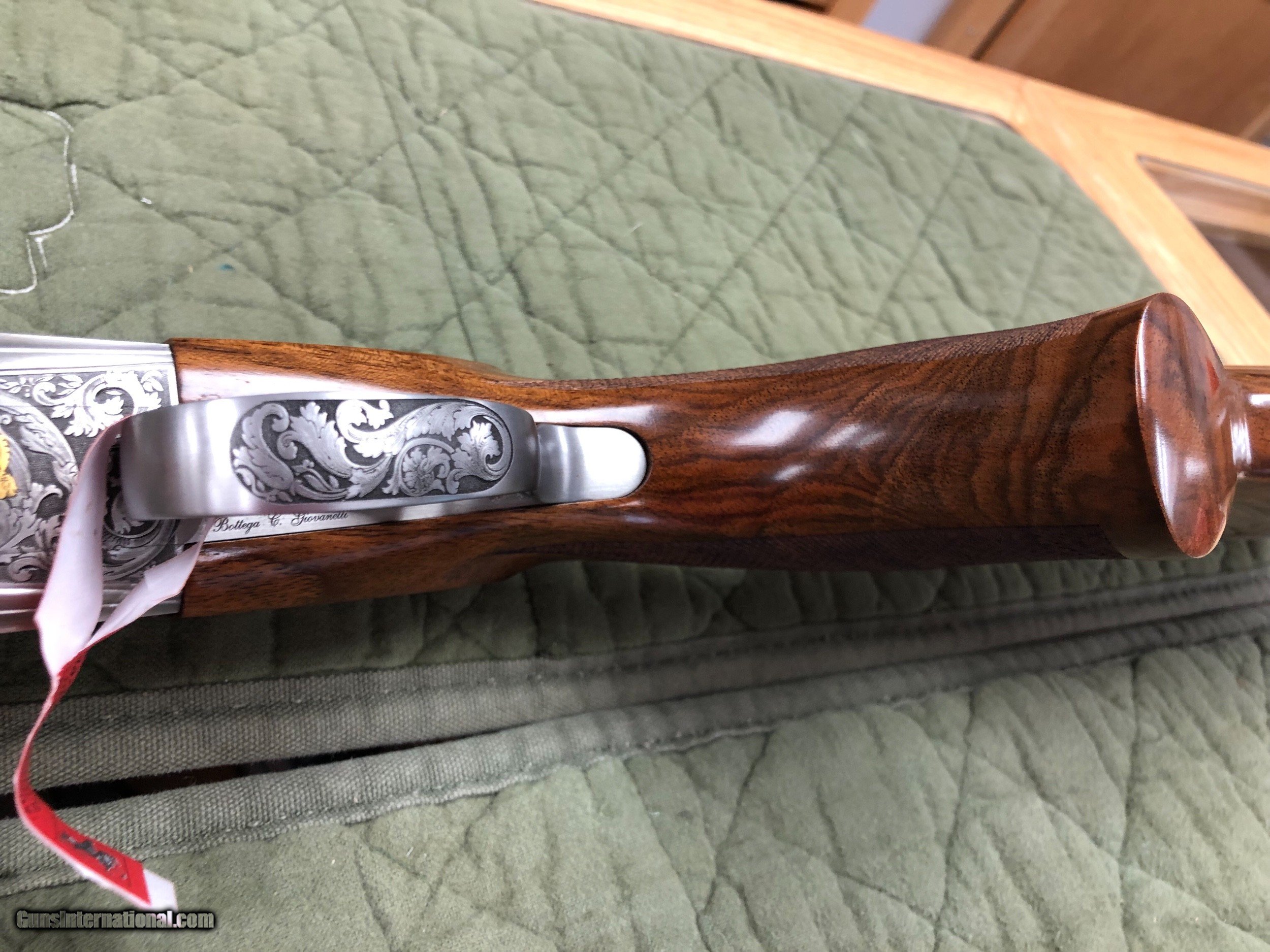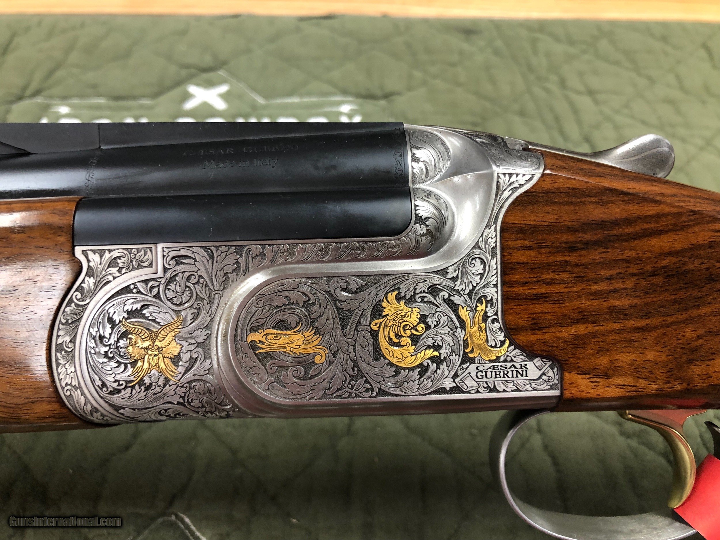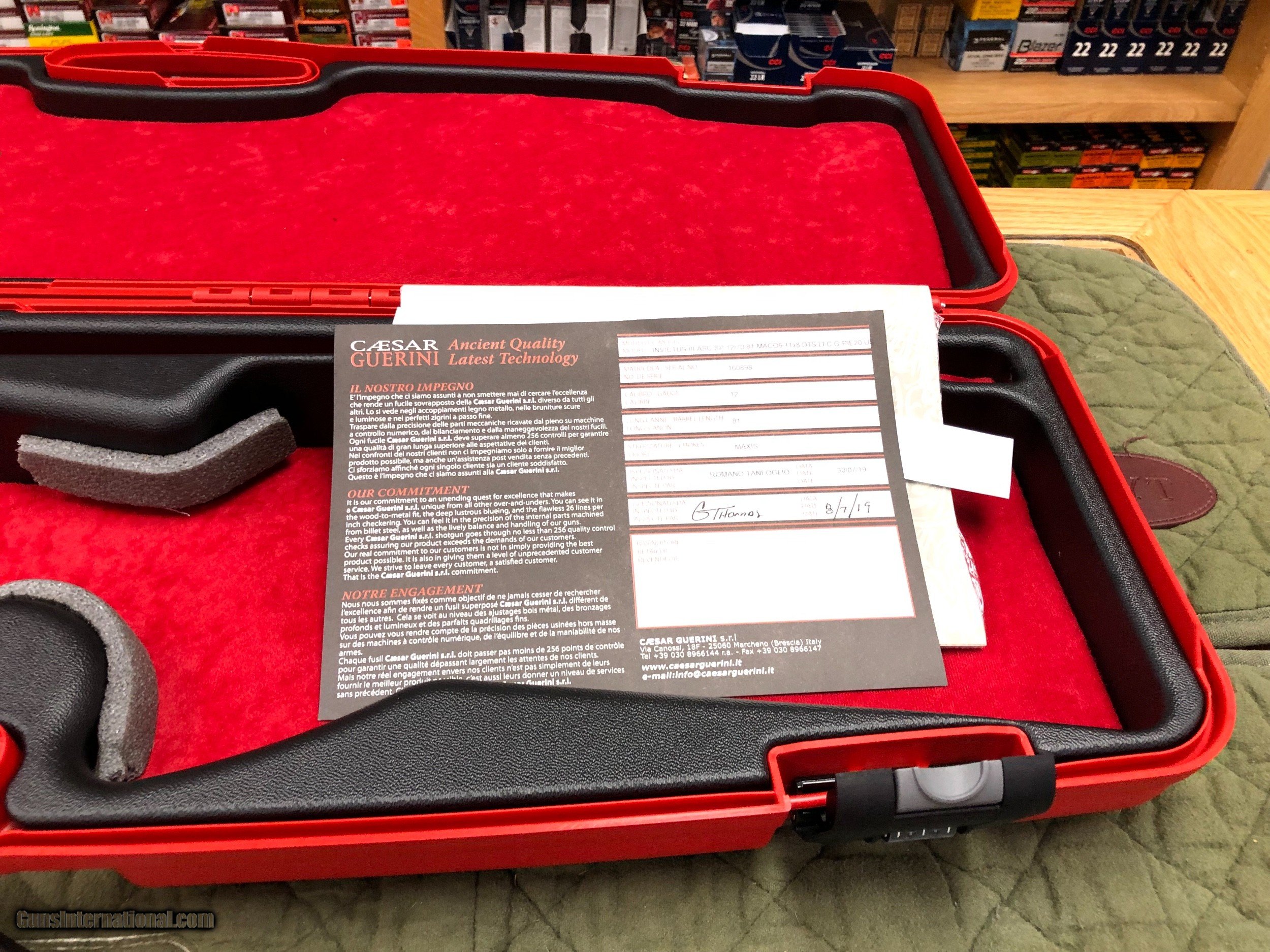 Description: Up for sale is a new Caesar Guerini Invictus III Ascent Sporting. This fine sporting gun is chambered in 12 ga and sports 32-inch barrels. The Ascent guns come standard with the DTS stock. This model has the coolest engraving pattern to date from Guerini, if you’re tired of the same old game scenes or scroll engraving feast your eyes on the Invictus III Ascent Sporting. This is in stock and ready to hit the sporting clays course. This is a new model for 2019 and has been on back order for the last few months. Caesar Guerini has strict MAP pricing polices so I must advertise at MAP pricing, all you must do is call for the best delivered price. I love to sell fine guns; I am not a curator of a museum. The Invictus III Sporting is a beautifully crafted Italian masterpiece and will turn heads wherever it goes. I stock a vast array of Caesar Guerini ,Fabarm , Syren ,Blaser,Merkel and many more. It is impossible for me to list everything I will special order you anything your heart desires. Below is a description from Caesar Guerrini’ssite Thanks for looking. In our ongoing pursuit to make the best Target shotgun possible, Caesar Guerini has created the Invictus. Featuring the greatest advancement in over-under durability in many years – the Invictus System. This revolutionary new system completely changes the way the barrel and action lock together when the gun is closed, making the whole system stronger. Additionally, all locking surfaces are now modular, creating a gun that is many times more durable than a traditional over-and-under shotguns. For the first time you can measure the life span of your shotgun not by how long you can shoot it, but how long your children and grandchildren can. Unfortunately, we might have to consider updating that Lifetime guarantee. All Ascent models feature a 10mm high fixed rib and Monte Carlo stock that allows the shooter to utilize a more upright shooting posture while still retaining the instinctive pointing qualities of a flat-rib sporting clays gun. The result is an modern sporting gun that accommodates both pre-mounted and gun-down shooting styles while remaining very comfortable to shoot. Gauge 12 Barrel length 32" (81cm) Avg. Weight** 8 lbs. 9oz. Receiver finish Hand polished coin finish with Invisalloy™ protective finish Stock Finish Hand rubbed oil Checkering 26 lines per inch Recoil Pad Black rubber Chamber 2 3/4" Top Rib Width 10mm - 8mm Tapered Rib Height* 10mm Fixed Center Rib Ventilated Forcing Cones 5" DuoCon Avg. Barrel Weight 32"-1.52kg (3.35lbs.) Avg. Bore .735, Chrome lined Chokes 6 MAXIS competition chokes Sight(s) White Bradley style front Silver center bead Fore-end Rounded Trigger DPS ultra-crisp trigger system with take up, over travel and length of pull adjustments. Factory selective release triggers available in single and double release. Safety Manual (Automatic as an option) Accessories Stock and trigger wrench, choke case, friction choke wrench Case Plastic hard case with fit interior and velvet stock sleeve and barrel sleeve Drop at comb 1.5" Drop at Monte Carlo 1.8" Drop at heel 2.25" Length of pull 14.75" Cast at heel .12" Cast at toe .25" Pitch 5° Breech to comb 7.25" Reach *4" A2X155 Invictus III Ascent 12g 32" barrels $9,450 SOLD |