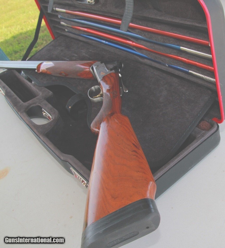 Description: Montecarlo stock 36/44/64mm (drop) Syren stock with original wood butt plate (not attached) Prince of Walles grip; Barrel length 355mm(28 inches) With/6mm rib +/- Briley Ultra tube set (28 & 410ga). Briley skeet chokes 2 each for 28 and 410 gauges Briley (Negrini) case, holds all 20 Gauge Ceasar chokes. 2 CYLINDER; 1 Mod 1 Improved cylinder; 1 FULL and 2 skeet Briley chokes Complete Paper work for shotgun and Tubes 3 small dents on left side of stock also faded gold roses on right side of receiver Call DON 913 837 5116 or 913-837 0359 Shotgun Gauge: 20 Gauge Manufacturer: Caesar Guerini Ejectors: 2 Condition: very nice Metal Condition: very good Wood Condition: 1 Small dent Bore Condition: bright Barrels: 2 Stock Drop: 36/44/64mm drop Price: $5,500.00 Buy Now Contact Seller |