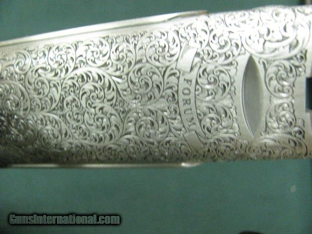 7389 Caesar Guerini FORUM 20 gauge 28 inch barrels 6 chokes cy, 2 ic m im full wrench, booklets, standing raised rib, 100% coin silver engraved receiv