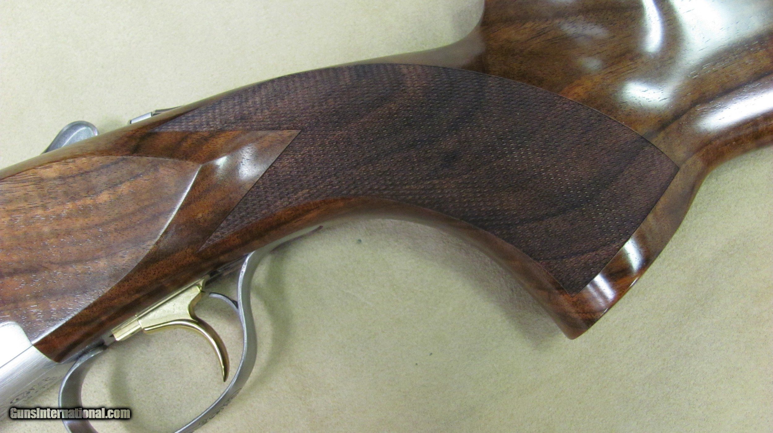 Description: Caesar Guerini 12 Gauge O/U Summit grade shotgun with 32 inch vent rib, ported barrel in perfect condition with factory case and six screw in choke tubes. SOLD Shotgun Gauge: 12 Gauge Manufacturer: Caesar Guerini Model: Summit Trap Barrel Length: 32 Inches Chambers: 2 3/4 Inches Ejectors: Yes Condition: Excellent Metal Condition: Excellent Wood Condition: Excellent Bore Condition: Excellent Barrels: Ported with Vent Rib Action: Box Lock Triggers: Single Select Stock: Fancy Walnut Stock Comb: Adjustable Comb Stock Heel: 2 1/2 Inches Fore End: Semi Beavertail Butt Pad: Factory Pad LOP: 14 7/8 Inches Rib: Vent Rib Weight: 8 lbs. 8 oz. Sights: Single Front Sight Manufacture Date: After 2007 Chokes: Six Screw in Chokes Engraving: Light Scroll Engraving Case: Factory Case as New Proof:Nitro: Nitro |