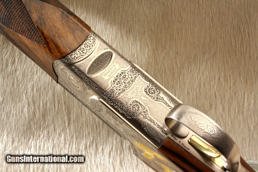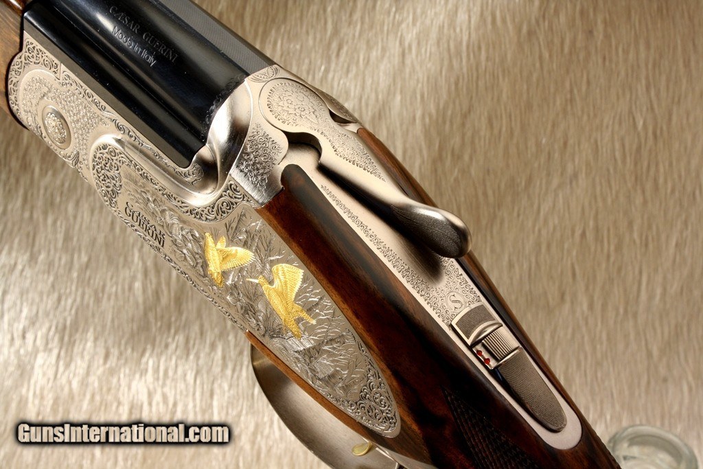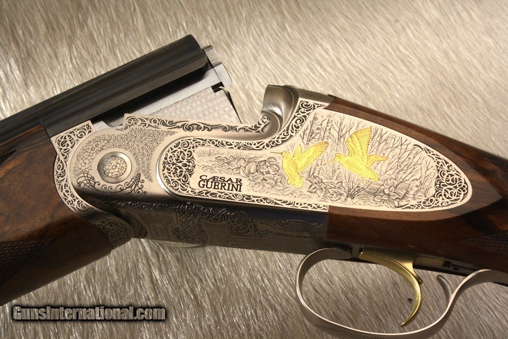 Description: Caesar Guerini Magnus Grade LIGHT 12ga, 26" barrels with stunning upgraded wood!!! The engraving work and inlays on the Magnus sideplates never disappoints. Imagine a perfectly balanced 5.9lb gun!!!! No other model gets as many inquiries as the Magnus. UNFIRED- MARKED AS DEMO FOR FOLLOWING-This gun was scratched in transit- marks are all shown in photos and are in the finish- these are true oil finishes- the CH USA shop can easily fix this at your first free service for WAY less than I'm discounting this gun. YOU MUST CALL FOR THE PRICE ON THIS GUN AS I CANNOT ADVERTSIDE IT- YOU WILL NOT BE DISAPPOINTED. Chrome lined barrels, full set of (5) Flush Chokes, all enclosed in factory lockable airline case. This is a true right handed gun with cast-off and dimensioned heel & toe & GORGEOUS Wood! The ONLY shotgun maker with a Lifetime Warranty, and Free annual services- well known for the best Elite level service in the industry. If you have a question about this gun or any in their line, just ask. WHY CALL? My name is August and I am the owner. As an authorized dealer I must adhere to published retail pricing guidelines. You will get the absolute lowest delivered price by calling my direct line. 512-567-7855. You will get much more than that however. I want you to get the right gun both for you and your application. You won't be passed off to a clerk, rather you will speak directly to ME. Have the confidence you are buying the exact gun you need for your goals by discussing it with a master class competitor, instructor and fitter with over 40 years of experience in the shooting sports. I know the guns I sell and their makers. I visit them all and have relationships with their owners and gunsmiths. You will know what you are getting and be happy when you do. Thank you FROM CAESAR GUERINI: "The Magnus is designed to appeal to the discriminating hunter who appreciates a classic shotgun with timeless qualities. The elegantly sculpted sideplate receiver features upgraded engraving with ornamental scroll, depicting game scenes in gold against a richly colored case hardened finish. The unique sideplates have no pins or screws allowing for a perfectly smooth receiver with uninterrupted engraving. The Magnus series receives a deluxe grade Turkish walnut stock with a traditional hand rubbed oil finish to enhance the highly figured grain. The meticulously fitted wood butt plate allows for snag-free gun mounts and adds a custom look and feel. The grip is in the Prince-of-Wales style with the length-of-pull being fourteen and one-half inches. The fore-end is a schnabel design and incorporates an Anson button latch identical to the most expensive British guns. Every Caesar Guerini field gun comes with a velvet lined lockable hard case and five precision patterned flush chokes (CYL, IC, M, IM, F). A plastic choke case is also included." A TRULY DIFFERENT BUYING EXPERIENCE Notice the rag tag on the guns in my photos? They are brand new never handled guns and that is the way they will arrive. We are not open to the public so your gun has not been handled unlike retailers where guns are endlessly handled, slammed shut and clacked back on a rack countless times by the masses. I have run firearms retail and could not stand this aspect of it. When you receive a gun from me it’s been packed with care and arrives as your BRAND NEW GUN. When a gun is sold it gets packed that day, by ME, with over 90% shipped same day with FEDEX tracking sent to my client immediately. I contact your FFL FOR YOU, and handle all the paperwork. California? No problem, I have been shipping there for over a decade- I understand their process and handle same day. Canada and Australia- have sent many there, just ask for details. AUGUST M CROCKER 512-567-PULL (7855) SOLD |