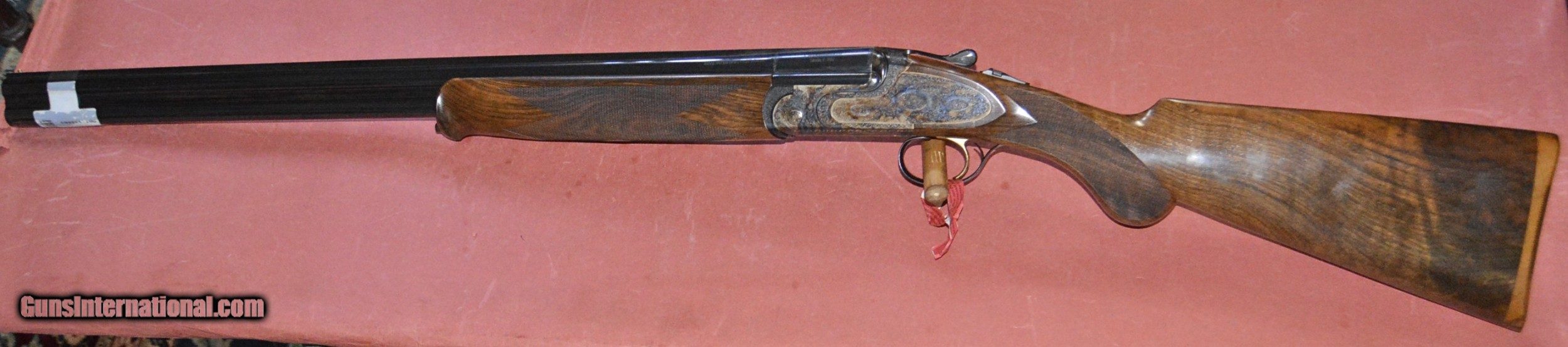 Description: Caesar Guerini 20 gauge Essex grade.This gun is new and unfired in the maker's case with accessories.It has 28" solid rib barrels with Guerini chokes.The gun retains 100% of the original blue,case colors,and wood finish.It still has the retailers hang tags on it.The wood is outstanding highly figured walnut with 145/8" LOP over the wooden buttplate.The gun is chambered for 3" shellls making it very versitile for hunting or clays.The receiver is fully engraved with fine English scroll and has the classic look of the English Best over unders.A great value in an all around game gun. SOLD Manufacturer: Caesar Guerini Model: Essex Serial Number: 118063 Chambers: 3 Metal Condition: new Wood Condition: new Bore Condition: new Action: over under Triggers: single selective Stock Dimensions: 145/8"x13/8"x21/4 Butt Pad: factory wooden buttplate Weight: 6-5 Chokes: Guerini chokes |