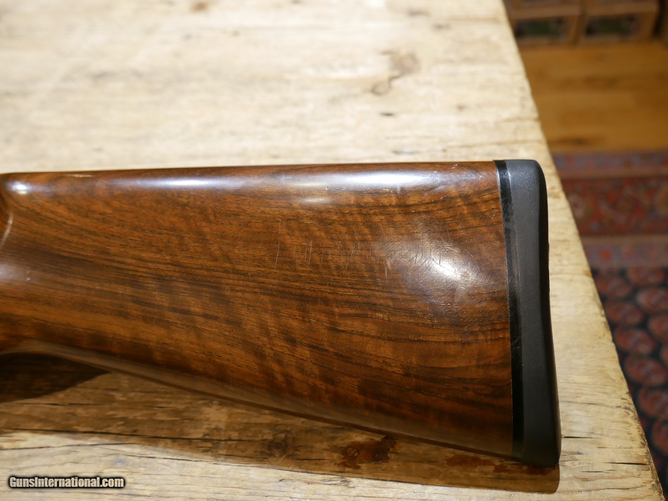 Description: Caesar Guerini Challenger Sporting over/under shotgun in 12 gauge. 32" ventilated tapered rib barrel. 2 3/4" Maxis Bore chambers with Duocon forcing cones. Gold adjustable trigger. LOP 14 3/4". Unaltered right handed stock with palm swell. Beautiful engraving. This gun has been used some and is in very good condition. The stock shows scattered light use marks but nothing deep or problematic, see pics for details. Bluing is very good with a few small marks and rub wear underneath from the Sporting Clays stands. Excellent shiny bores. Tight solid lockup, still tons of life left in this beautiful range gun! Comes with: Hard plastic locking case, velvet stock and barrel sleeves, 6 extended competition chokes with case, stock wrench, manuals. Please call or email with any questions. Must ship to FFL. ***$35 SHIPPING AND INSURANCE*** ***NO CREDIT CARD FEES*** ***NO WARRANTIES IMPLIED OR EXPRESSED*** SOLD Manufacturer: CAESAR GUERINI Model: CHALLENGER SPORTING Condition: USED, VERY GOOD Gauge Info: 12 |