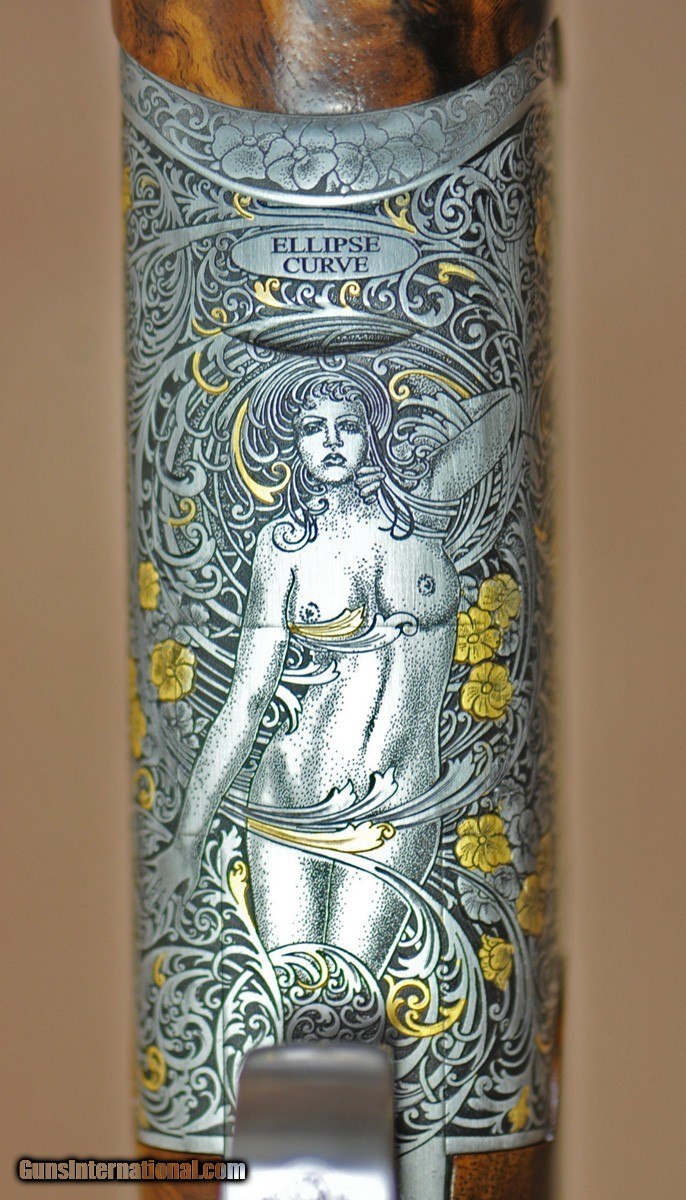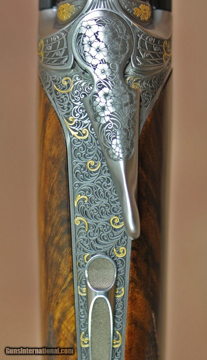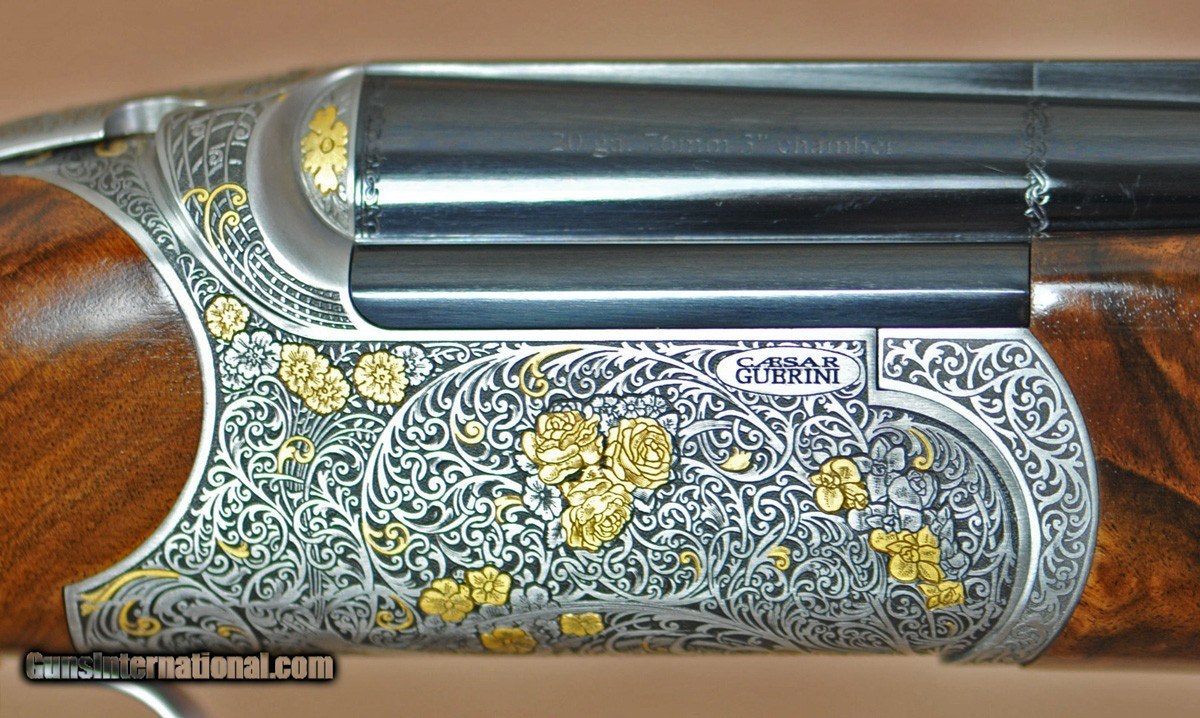Description: New Limited Edition Caesar Guerini Ellipse Curve Gold Field 20ga. Features factory flush choke tube 28" barrels with flat game rib. Heavily engraved receiver featuring floral rose and scroll engraving pattern with gold highlights. Highly figured right hand Prince of Wales stock with Round forend. Comes in factory case. Pacific Sporting Arms is the largest dealer in high grade shotguns in the world. SOLD Shotgun Gauge: 20 Gauge |