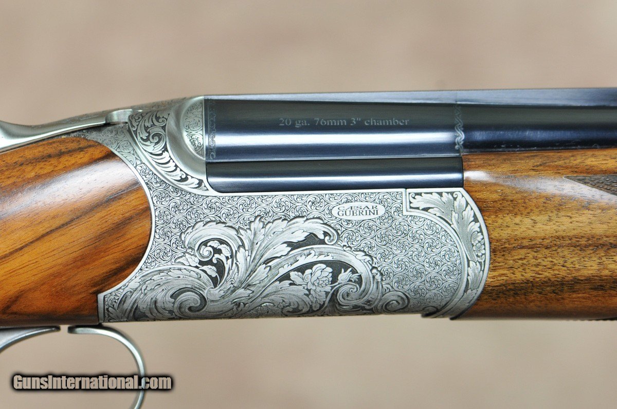 Description: New Caesar Guerini Ellipse EVO game Gun 20 gauge. Features 20 gauge round action, 28″ factory C/T barrels with five flush chokes and solid rib. Highly figured Turkish walnut field stock with Prince Of Wales grip. Factory hard case included SOLD |