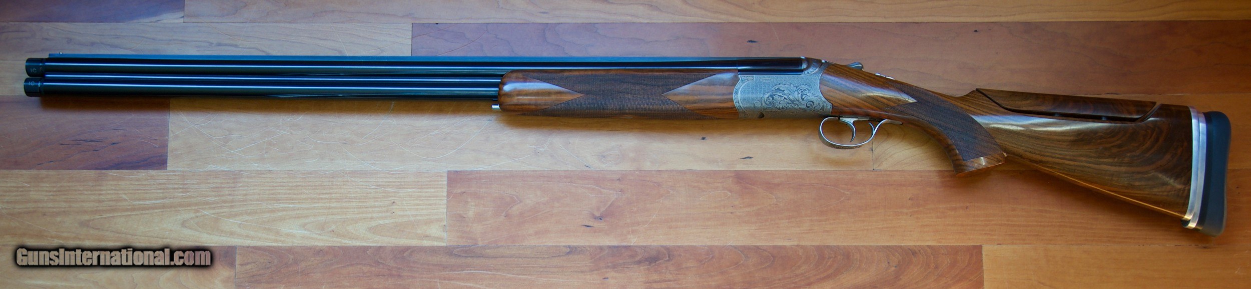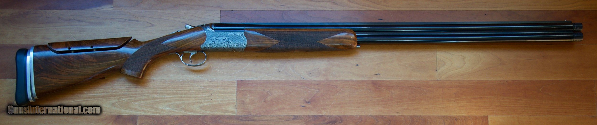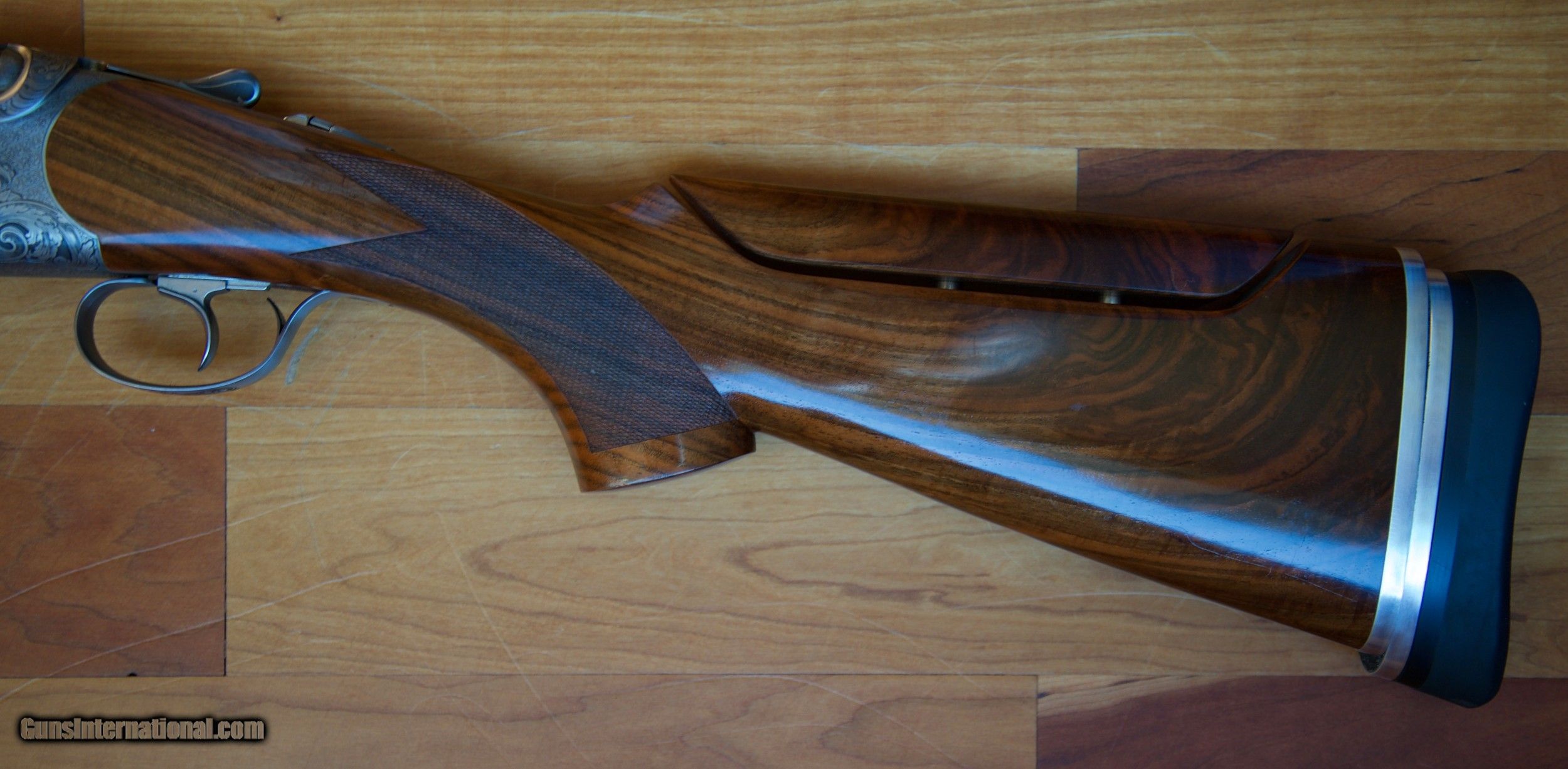 Description: Pre-owned, like new condition. Ellipse rounded action with beautiful engraving by Bottega Giovanelli. 32" maxi-bore barrels with 7 factory extended screw-in choke tubes. Highly-figured walnut stock is fully adjustable for drop and cast. LOP: 15 1/4" with trigger adjustable for length of reach, overtravel & take-up. Weight: 8.5 pounds. Molded factory case with protective sleeves for barrels and stock, tools, owner's manual. SOLD Manufacturer: Caesar Guerini Model: Ellipse Evo Sporting Chambers: 2 3/4 Ejectors: yes Condition: excellent Metal Condition: excellent Wood Condition: excellent Bore Condition: bright & shiny Barrels: 32" maxi-bore Triggers: single selective, adjustable for overtravel, take-up & length of reach Gauge Info: 12 Stock: checkered, walnut Stock Drop: adjustable Stock Comb: adjustable Stock Heel: adjustable Stock Cast: adjustable Butt Pad: Kick-Eze black rubber LOP: 15 1/4 Finish: high gloss Weight: 8.5 pounds Sights: silver bead Chokes: extended screw-in: cylinder, skeet, skeet, IC, IC, LM, mod Extras: Owner's manual, tools Case: factory, molded w/velvet sleeves for bbls & stock |