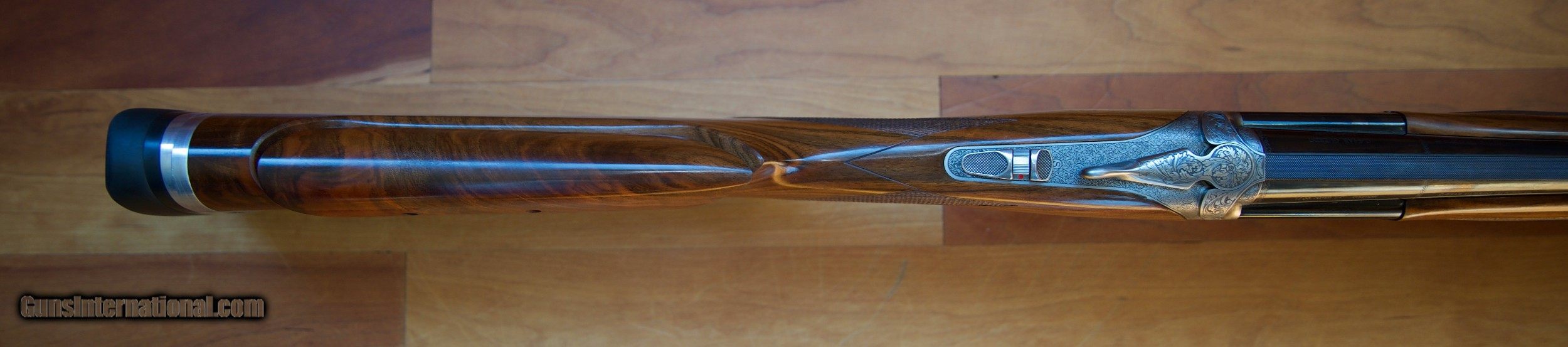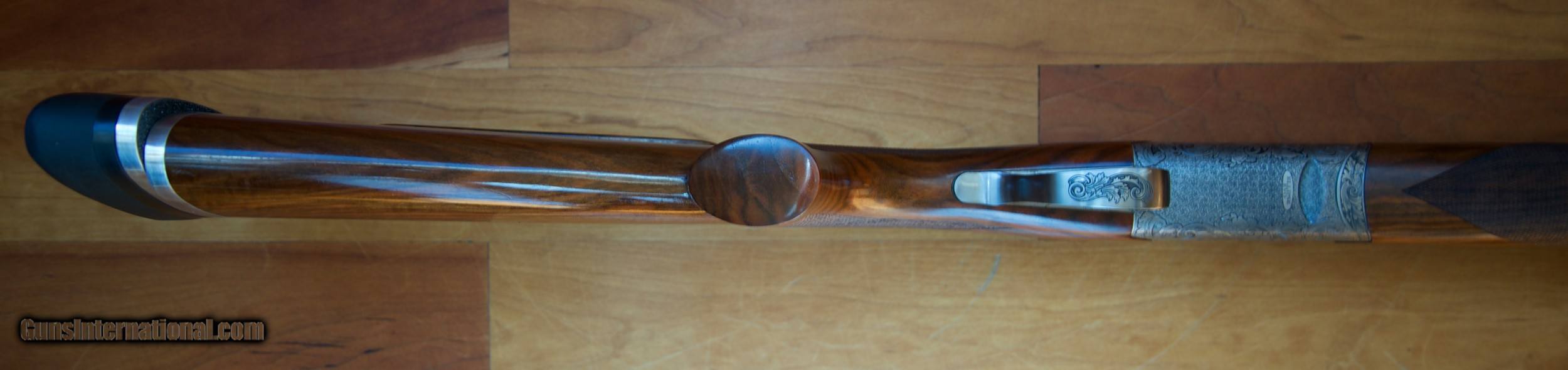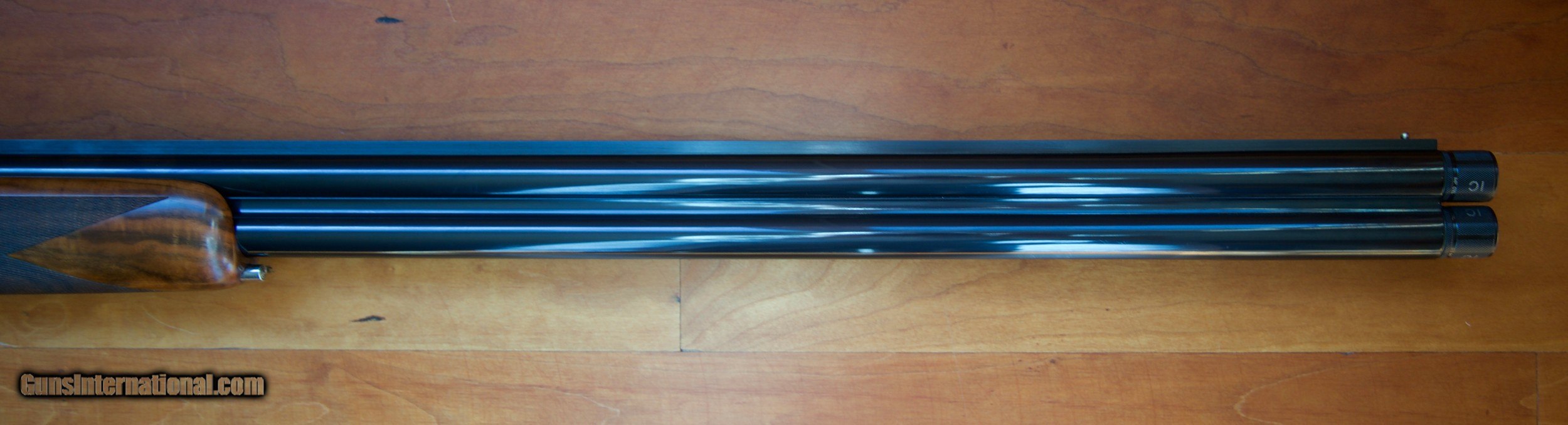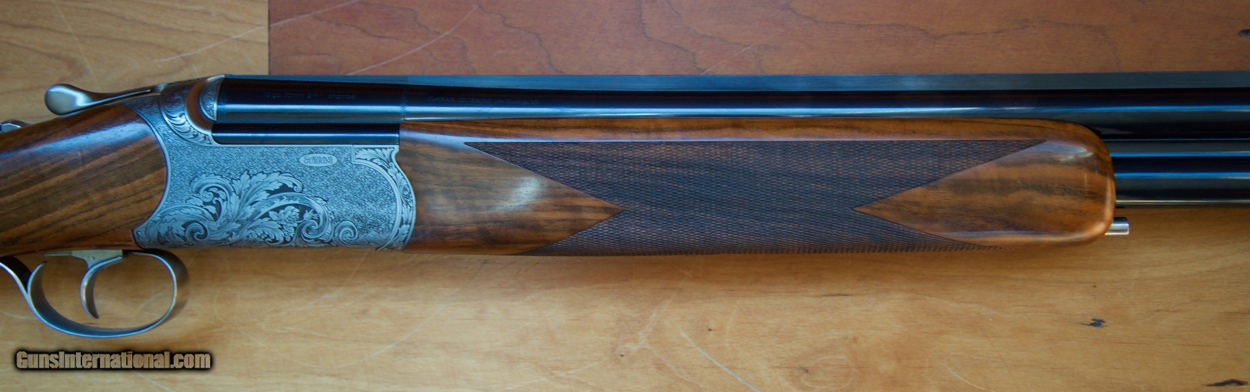 Description: Pre-owned, like new condition. Ellipse rounded action with beautiful engraving by Bottega Giovanelli. 32" maxi-bore barrels with 7 factory extended screw-in choke tubes. Highly-figured walnut stock is fully adjustable for drop and cast. LOP: 15 1/4" with trigger adjustable for length of reach, overtravel & take-up. Weight: 8.5 pounds. Molded factory case with protective sleeves for barrels and stock, tools, owner's manual. SOLD Manufacturer: Caesar Guerini Model: Ellipse Evo Sporting Chambers: 2 3/4 Ejectors: yes Condition: excellent Metal Condition: excellent Wood Condition: excellent Bore Condition: bright & shiny Barrels: 32" maxi-bore Triggers: single selective, adjustable for overtravel, take-up & length of reach Gauge Info: 12 Stock: checkered, walnut Stock Drop: adjustable Stock Comb: adjustable Stock Heel: adjustable Stock Cast: adjustable Butt Pad: Kick-Eze black rubber LOP: 15 1/4 Finish: high gloss Weight: 8.5 pounds Sights: silver bead Chokes: extended screw-in: cylinder, skeet, skeet, IC, IC, LM, mod Extras: Owner's manual, tools Case: factory, molded w/velvet sleeves for bbls & stock |