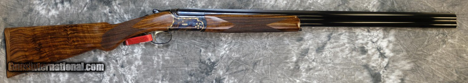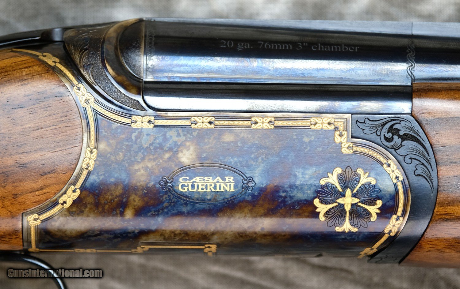 Description: New Caesar Guerini Ellipse Limited Gold round action game 20GA with 30" factory choke tubed barrels, parallel game solid top rib and solid side ribs. Case-color hardened round action with gold borders and highlights Factory Prince of Wales pistol grip game stock to removable wooden butt plate, English game forearm. Limited edition, exclusive to Elite Dealers Only. Factory case, chokes and tools. SOLD Shotgun Gauge: 20 Gauge |