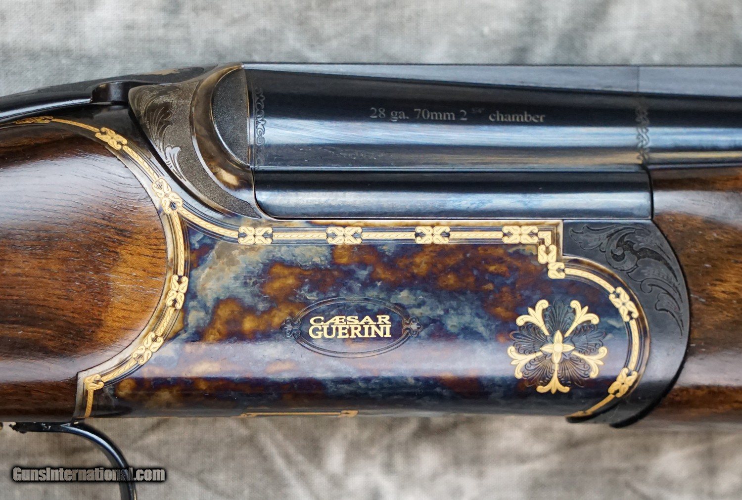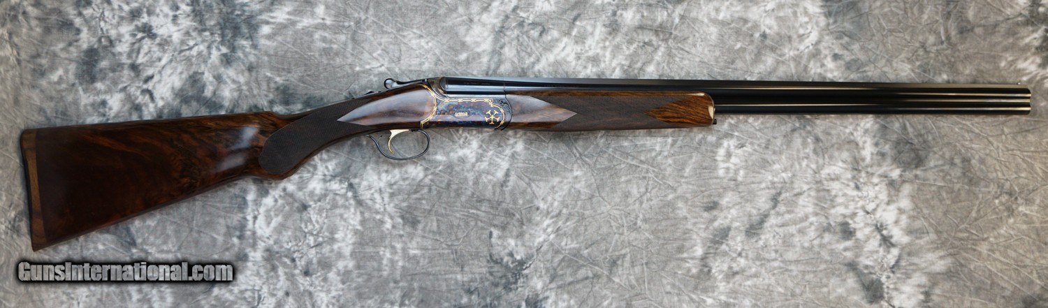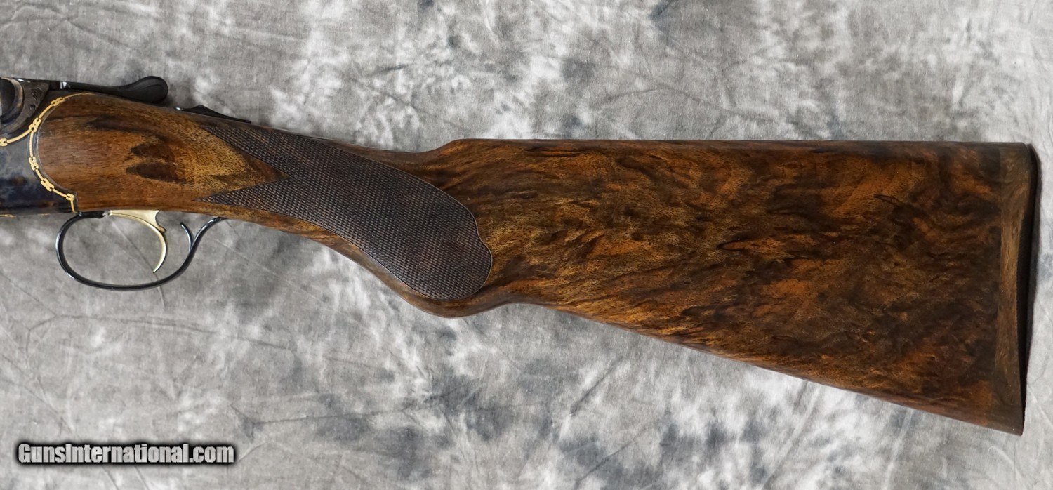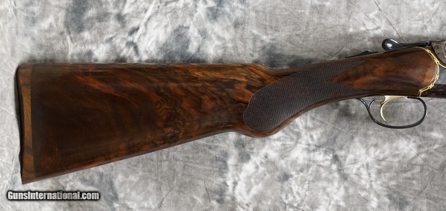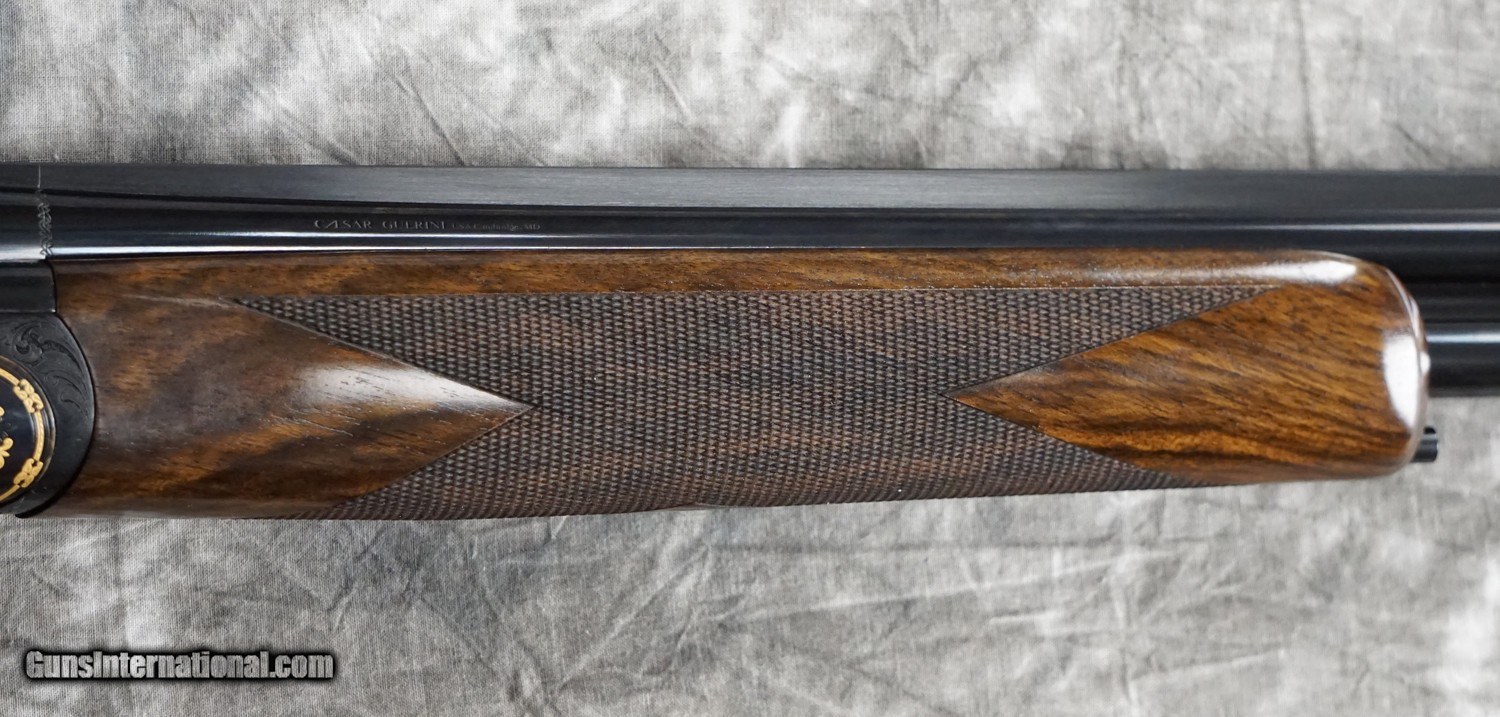 Description: New Caesar Guerini Ellipse Limited Gold round action game 28GA with 30" factory choke tubed barrels, parallel game solid top rib and solid side ribs. Case-color hardened round action with gold borders and highlights Factory Prince of Wales pistol grip game stock to removable wooden butt plate, English game forearm. Limited edition, exclusive to Elite Dealers Only. Factory case, chokes and tools. Call 626-633-1002 for pricing. SOLD Shotgun Gauge: 20 Gauge |