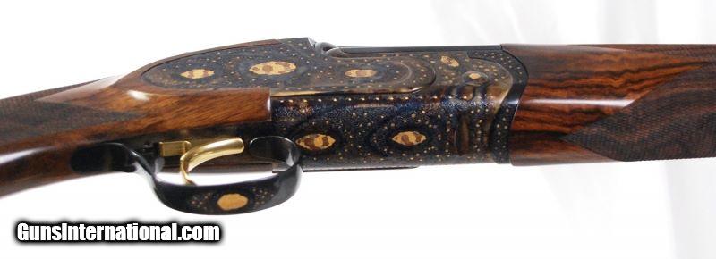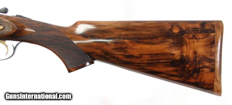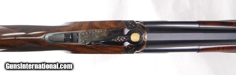 Description: CAESAR GUERINI Essex Limited Gold 20 gauge O/U, Limited edition only available at Caesar Guerini Elite Dealers, English scroll engraved color case hardened sideplated receiver contrasted by white, rose & gold inlays representing the colors of autumn, 28" bbls. w/ 2 3/4" & 3" chambers, Solid tapered rib, 5 Flush choke tubes: C,IC,M,IM,F, Single selective gold-plated trigger, Automatic ejectors, Oil-finished extra deluxe grade Turkish walnut Prince of Wales stock w/ wooden buttplate, Field-style forearm, Stock Dimensions: DC: 1 1/2" x DH: 2 1/4" x Cast: 1/8" off at Heel x LOP: 14 3/4", Weight: 6 lb. 9 oz., Condition: New in maker's case, Made in Italy, Serial #152876. (N7408) MSRP: $7105 FIELDSPORT: POR To see and enjoy the entire inventory of fine shotguns, rifles and handguns on display in the Fieldsport Gun Room, please visit us at: FieldsportLTD SOLD Manufacturer: Caesar Guerini Model: Essex Limited Gold Serial Number: 152876 Chambers: 2 3/4" & 3 Ejectors: Automatic ejectors Condition: New Barrels: 28 Action: Sideplated boxlock O/U Triggers: Single selective trigger Gauge Info: 20 Stock Comb: 1 1/2 Stock Heel: 2 1/4 Stock Cast: 1/8" off at Heel Fore End: Field-style forearm Butt Pad: Wooden buttplate LOP: 14 3/4 Rib: Solid tapered Weight: 6 lb. 9 oz. Sights: Metal bead Chokes: 5 Flush choke tubes: C,IC,M,IM,F Engraving: English scroll engraved w/ white, rose & gold inlays Case: Maker's case Item Location: Michigan |