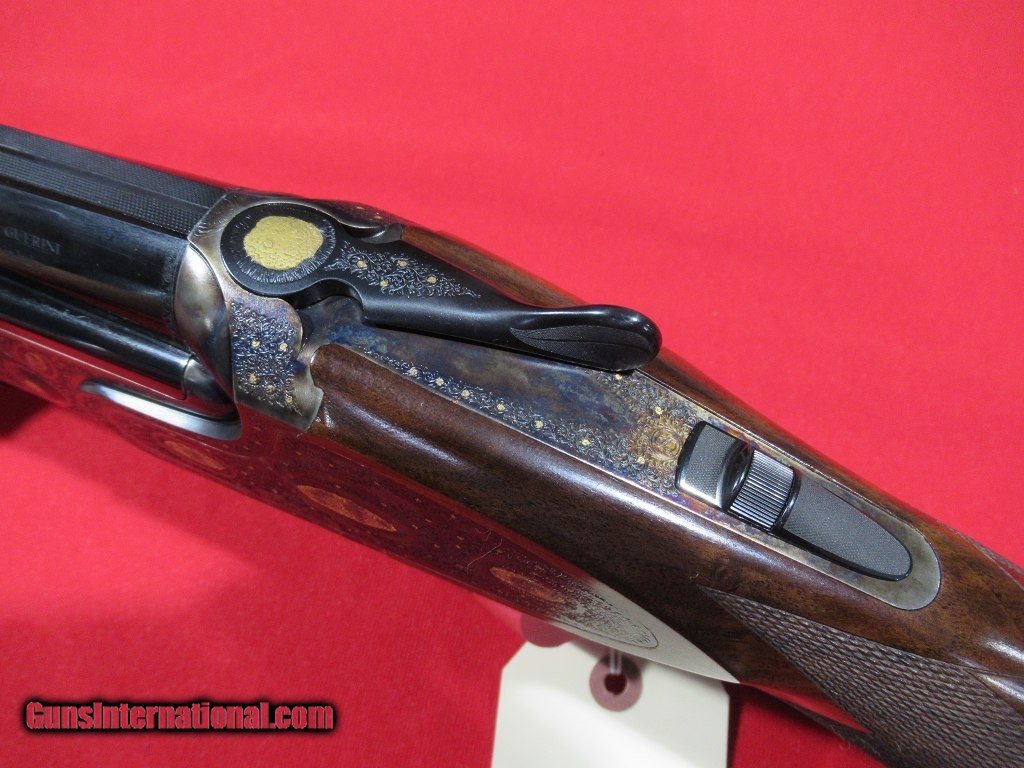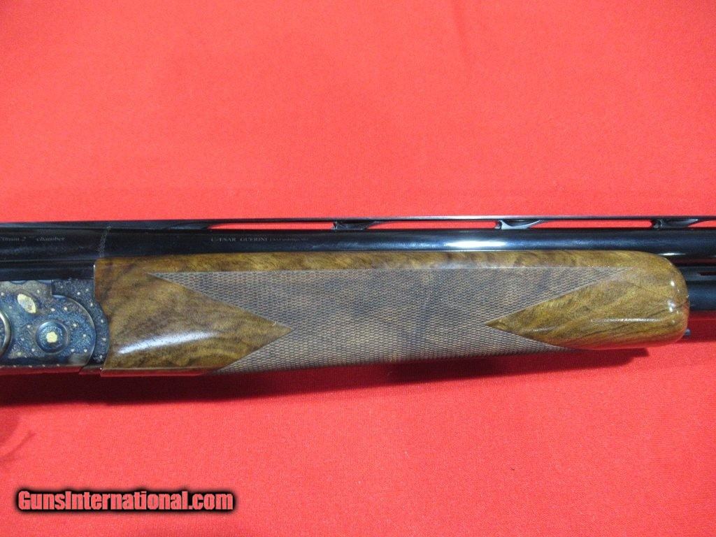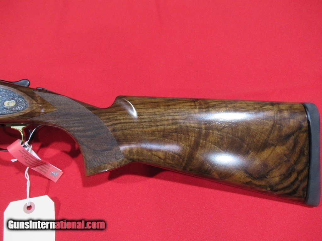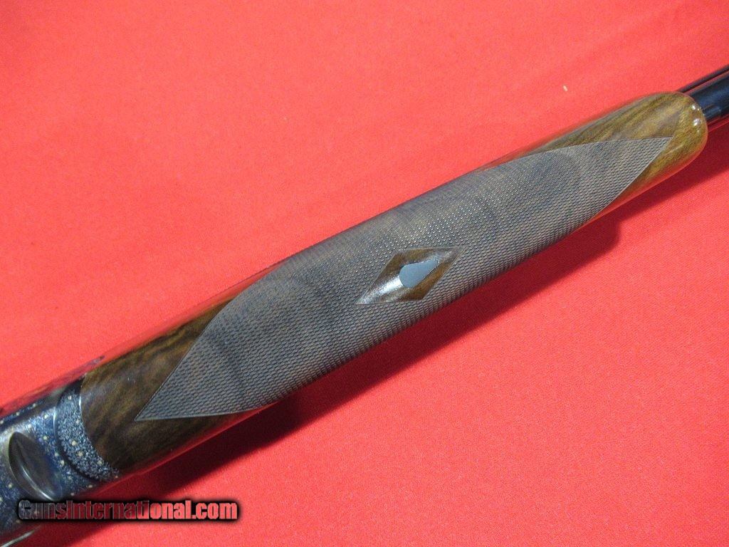 Description: Limited production sideplated gun with full coverage engraving with multi-colored gold highlights. This particular gun has an exceptional stock and round forend, high polished blued barrels, selective manual safety, threaded for Maxis Competition choke tubes (six included), adjustable trigger. Comes with a hard case, choke tube wrench with thread cleaner, wrench to adjust the trigger, and owner's manual with warranty card. SOLD |