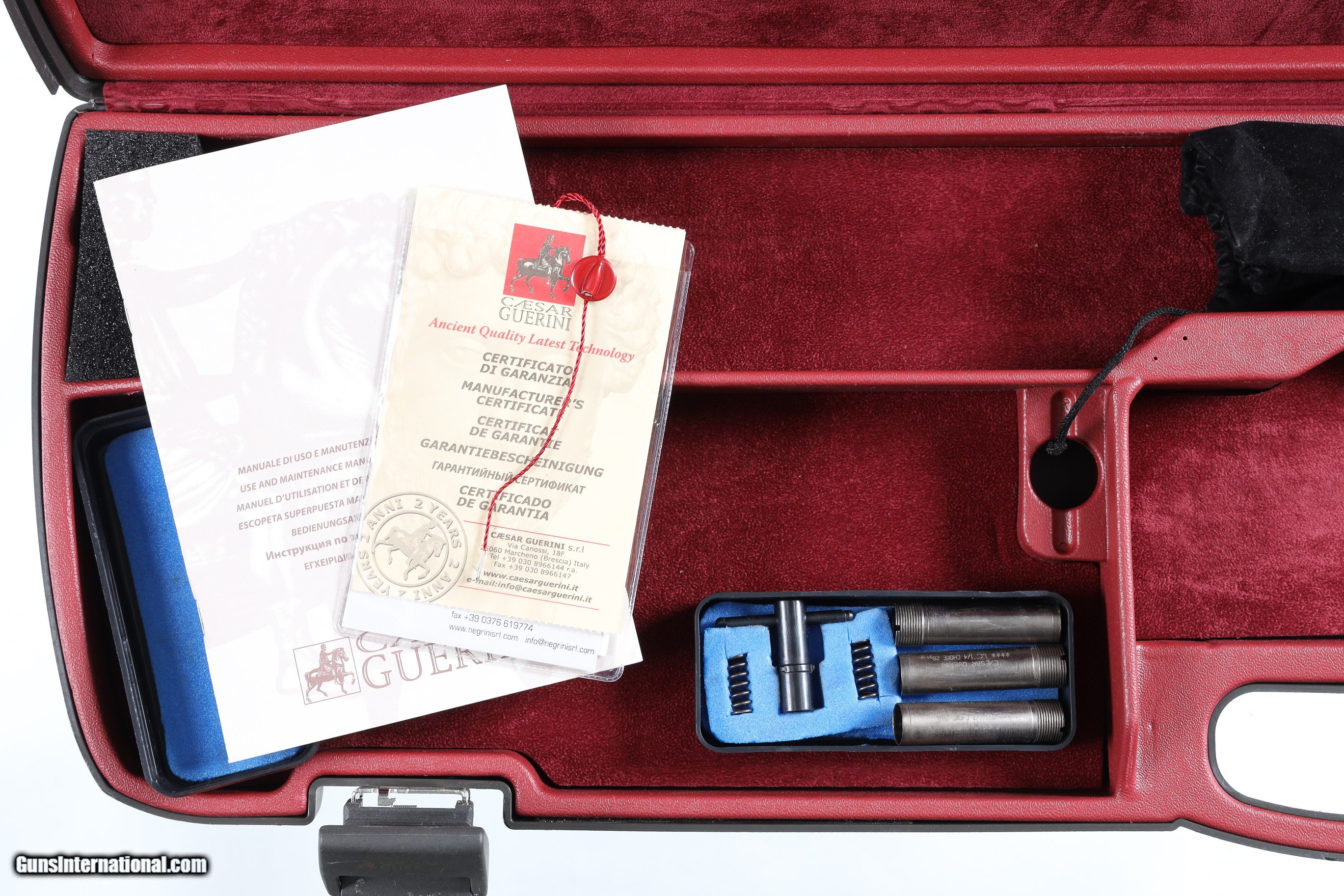 Description: 2 3/4" chambers, interchangeable choke tubes. Profusely engraved case colored receiver, engraved in rose and scroll with Essex on underside, engraving is signed by Bottega Giovanelli. Single selective trigger with ejectors. Highly figured checkered pistol grip stock with matching forearm. LOP 15" over custom extension. DAC 1 1/2", DAH 2 1/2". Shotgun is housed in factory luggage case with additional choke tubes and wrench. Excellent overall condition retaining most original finish with several small impression in stock. Case is very good overall. Mfg in 2009 • Free Shipping, No Credit Card Fees. • Lay-a-way available for this firearm. • 1/3 Down, a 1/3 in 30 Days 1/3 in 60 Days. SOLD Shotgun Gauge: 28 Gauge Manufacturer: Caesar Guerini Model: Essex Serial Number: 120455 Barrel Length: 32 Bore: 28 Ga, Chambers: 2 3/4 Ejectors: Yes Condition: Excellent Metal Condition: Excellent Wood Condition: Excellent Bore Condition: Bright Barrels: 32 Barrel Type: Over Under Action: Box Lock Triggers: Single Selective Stock Comb: 1 1/2 Stock Heel: 2 1/2 LOP: 15 Rib: Vent Finish: Blue & Case Color Manufacture Date: 2009 Chokes: Interchangeable Tubes Extras: Luggage Case / Tools |