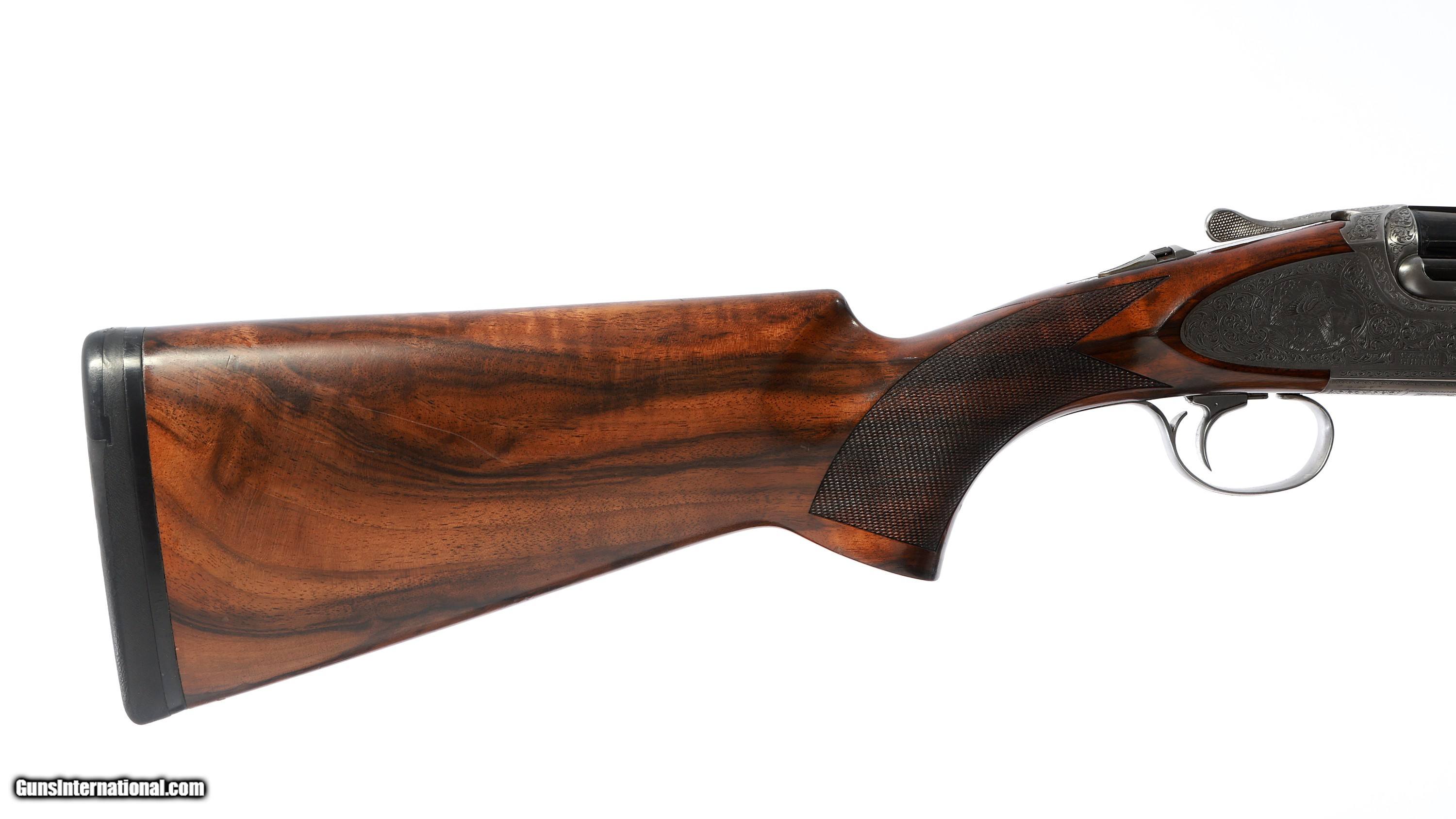 Description: Correction - 34" Sporting Barrel and 32" Carrier - Preowned - Caesar Guerini Forum Sporting - 12ga 34" Sporting barrel with factory Maxis screw in extended chokes - Excellent Right handed Turkish Walnut stock - Fine scroll engraving with birds on all 3 sides - Included is a fitted 30" 12ga Carrier barrel and a full set of Briley Ultra Lights Tubes set and chokes (410,28ga,20ga). Nice soft case included as well as the 2 Muller chokes pictured. Overall in good shape - older gun with some use but well kept - Handling marks through out stock - Minor finish wear through out receiver SOLD Shotgun Gauge: 12 Gauge Manufacturer: Caesar Guerini Model: Forum Serial Number: 106503 Barrel Length: 32" 30 |