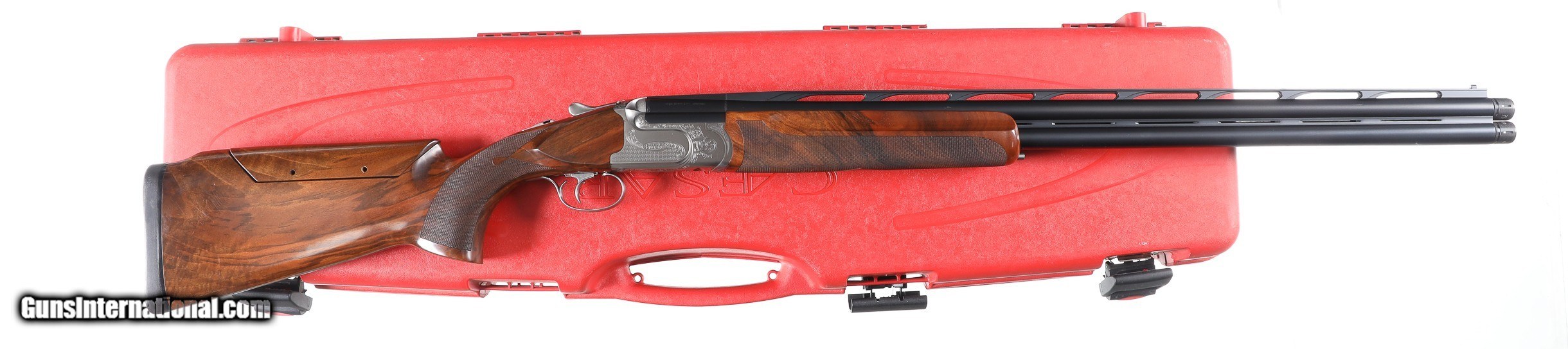 Description: Caesar Guerini Invictus 1 12 Ga, with 30 raised ventilated rib with dual sight beads. Interchangeable choke system and accompanied by a full compliment of extended tubes. Stainless receiver with single selective adjustable trigger with ejectors. The Invictus system is known to outlast all other current production over unders by 200-300% using its modular locking system. Mounted with very highly figured varnished checkered pistol grip walnut stocks with competition adjustable comb. LOP 14-1/2" (adjustable DAC 7 DAH (Adjustable. Chamber 3". Gun is housed in factory luggage case with travel sleeves. Condition, Extremely fine with some very light use being evident. Stocks remain excellent with a very few minor impressions. Action operates properly and locks solidly. • Free Shipping, No Credit Card Fees. • Lay-a-way available for this firearm. • 1/3 Down, a 1/3 in 30 Days 1/3 in 60 Days. SOLD Shotgun Gauge: 12 Gauge Manufacturer: Caesar Guerini Model: Invictus 1 Serial Number: 143481 Barrel Length: 30 |