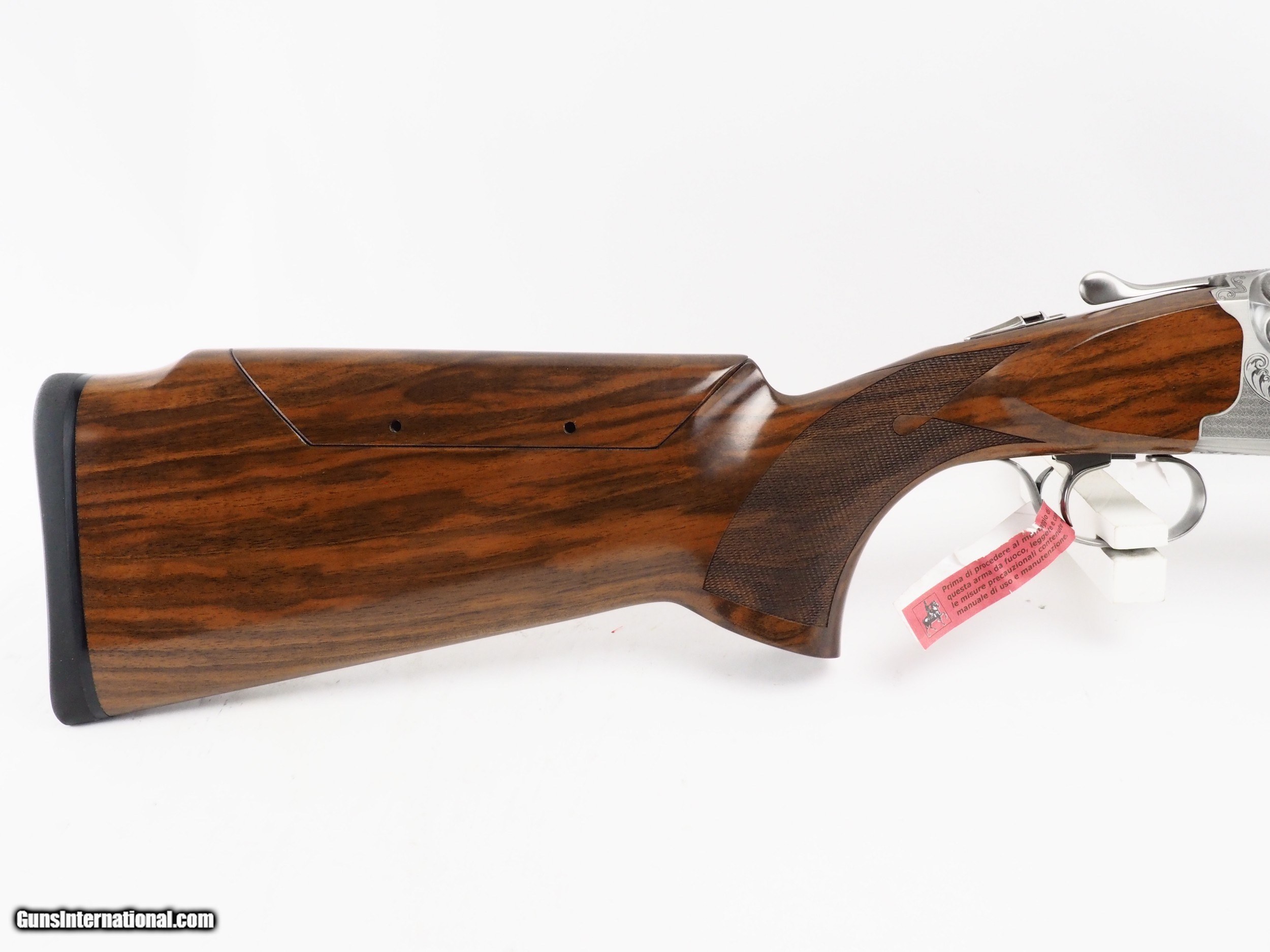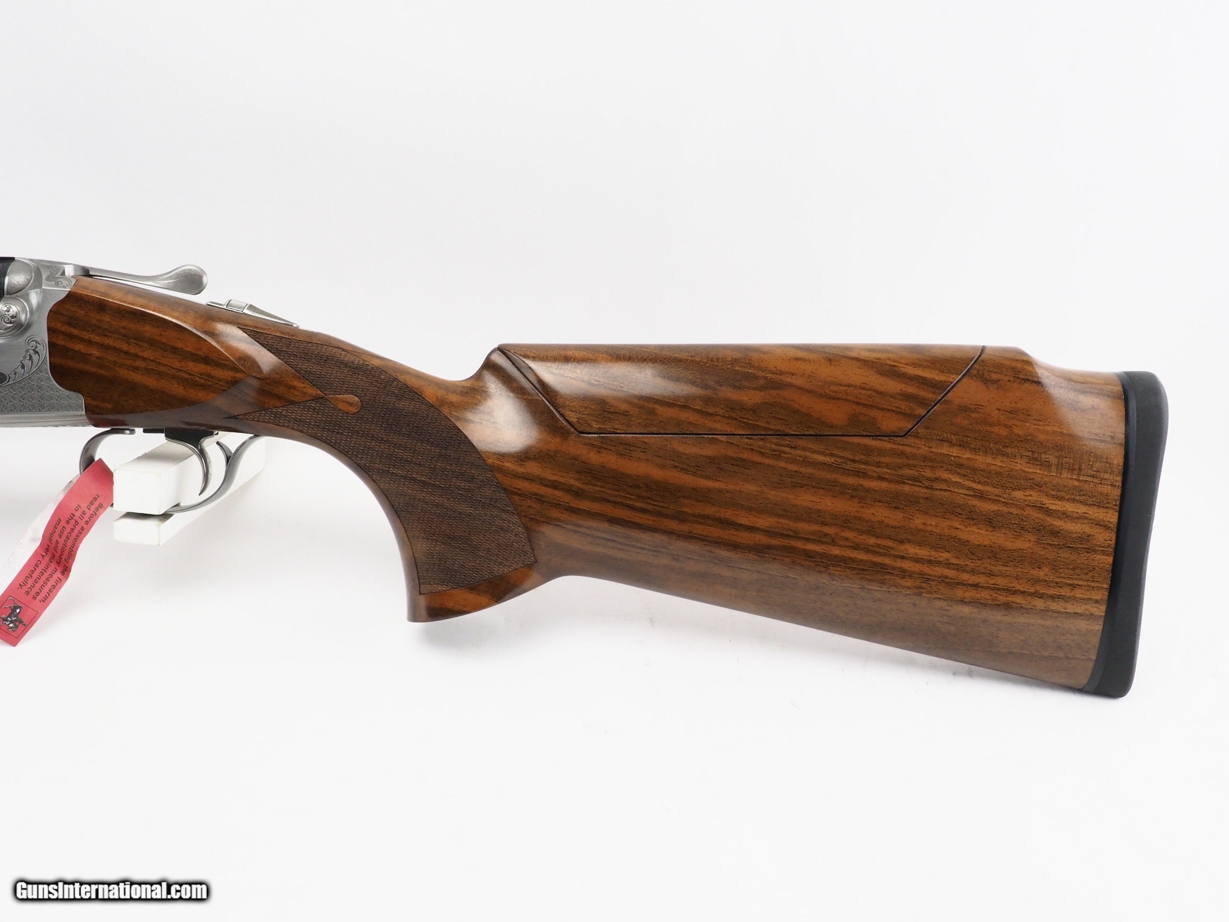 Description: Book #56. Call or email for competitive pricing, The Invictus Ascent is the standard Invictus Sporting, but with the addition of a slightly higher mid-height rib (10mm vs 6mm) and a corresponding Monte Carlo comb with adjustable DTS hardware built in. The rib is fixed at 50/50 point of impact when the beads are held in a figure-8. This is a great gun for the longer-necked sporting clays player, or the shooter who simply prefers a rib slightly taller than standard. Don't forget that the Invictus system is as durable as an anvil—and will last even longer if you take advantage of the cost-free Pit Stop maintenance program. Ask us about it! Condition: new Gauge: 12 Barrel length: 32" (81cm) Avg. Weight: 8 lbs. 6oz. (32") Stock Finish: Hand rubbed oil Checkering: 26 lines per inch Recoil Pad: Black rubber Chamber: 2 3/4" Top Rib Width: 10mm - 8mm, Tapered Rib Height: 10mm Fixed Forcing Cones: 5" DuoCon Avg. Barrel Weight: 32"-1.52kg (3.35lbs.) Avg. Bore: .735, Chrome lined Chokes: 6 MAXIS competition chokes Sight(s): White Bradley style front Silver center bead Safety: Manual (Automatic as an option) Accessories: Stock and trigger wrench, choke case, friction choke wrench Case: Plastic hard case with fit interior and velvet stock sleeve and barrel sleeve Drop at comb: 1.5" Drop at Monte Carlo: 1.8" Drop at heel: 2.25" Length of pull: 14.75" Cast at heel: .12" Cast at toe: .25" Pitch: 5° SOLD |