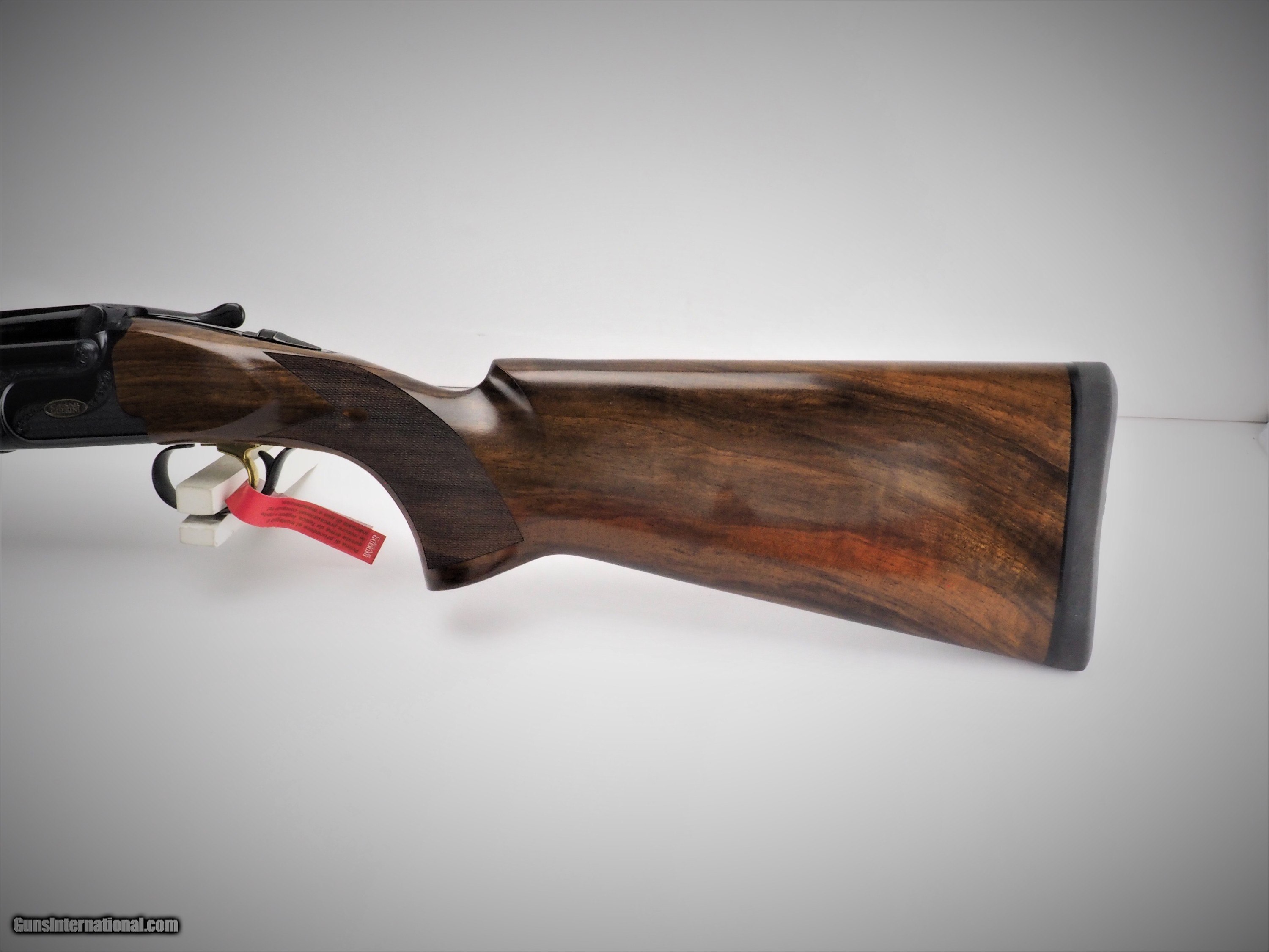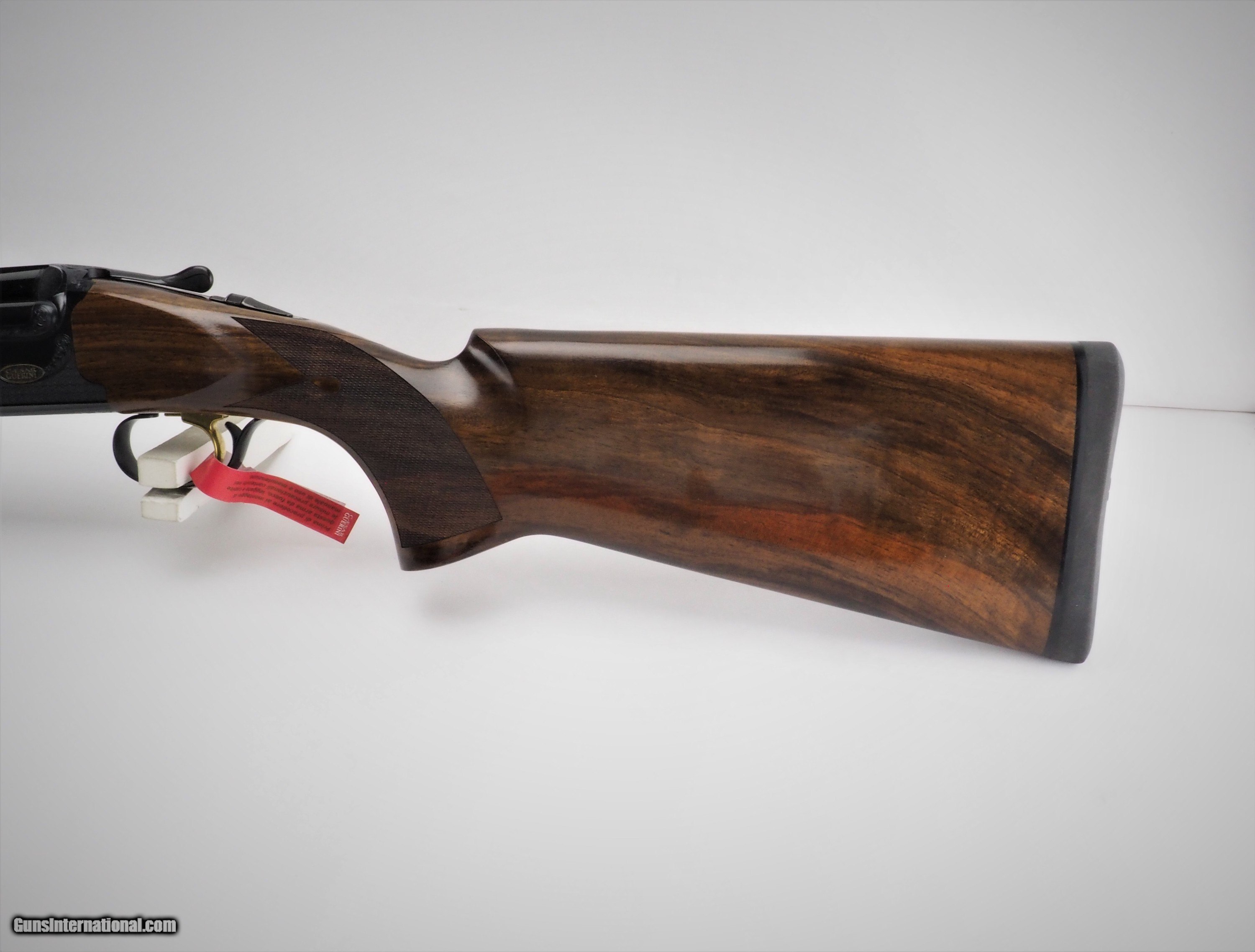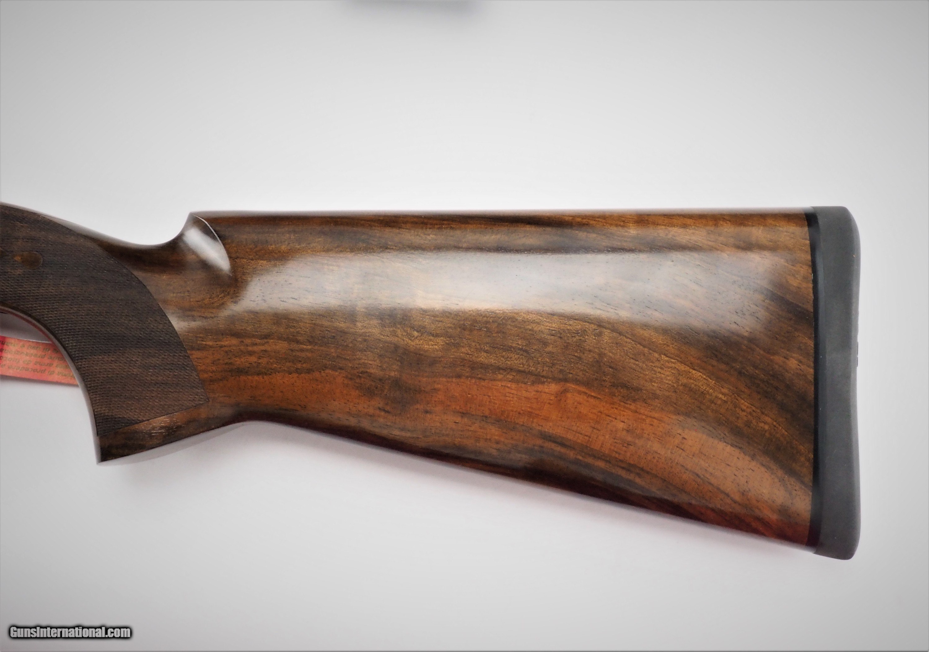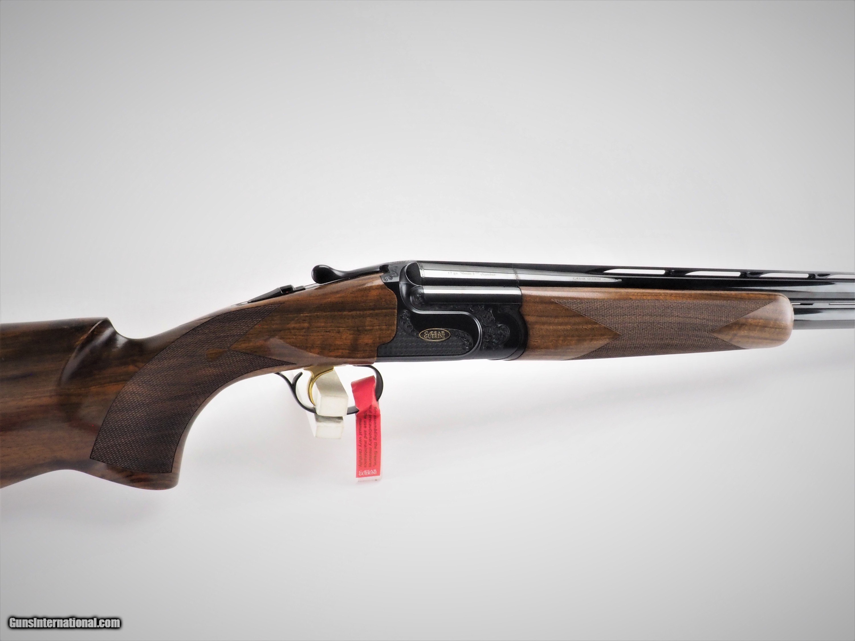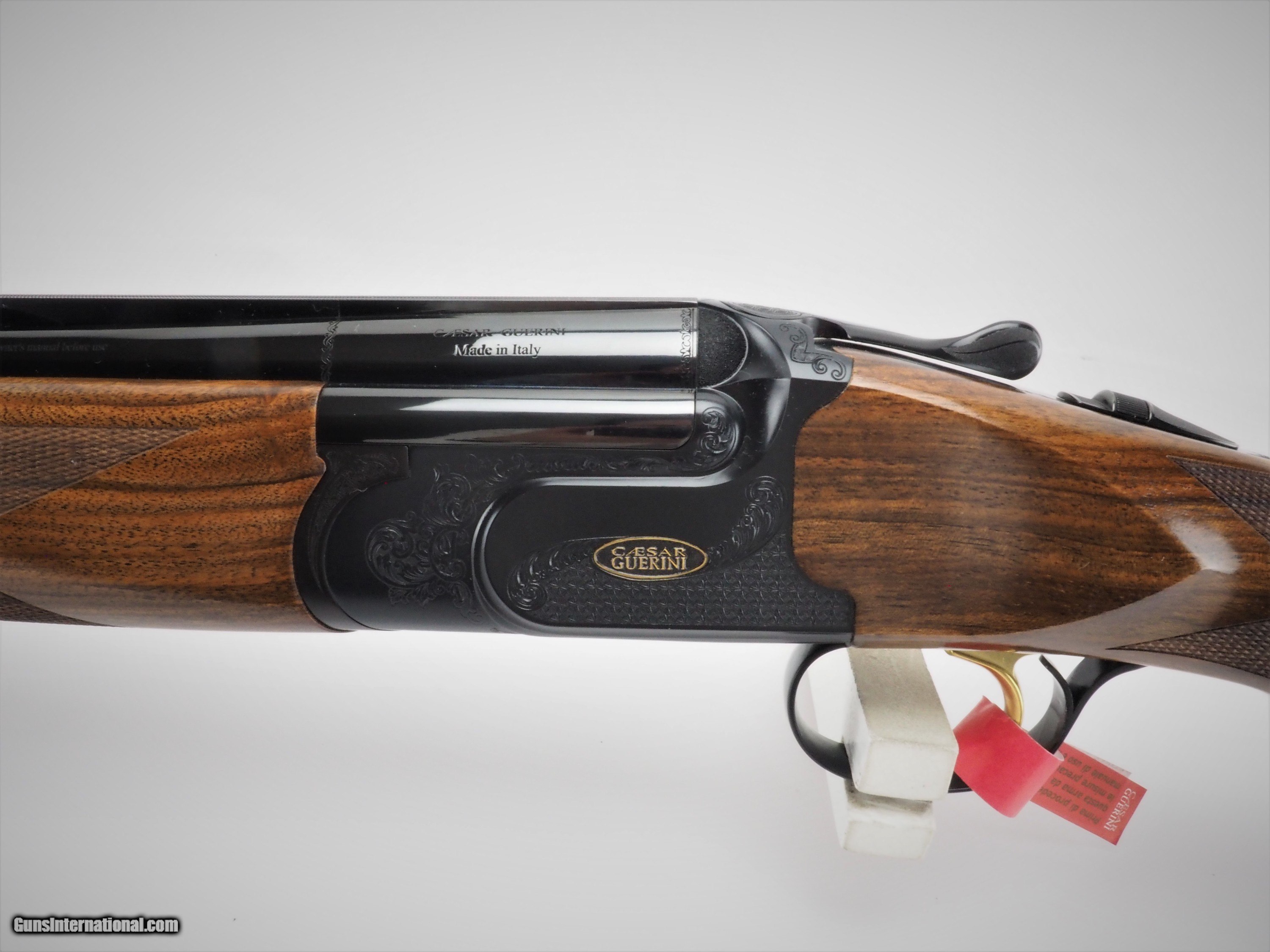 Description: In the ongoing pursuit to make the best Target shotgun possible, Caesar Guerini has created the Invictus. Featuring the greatest advancement in over-under durability in many years – the Invictus System. This revolutionary new system completely changes the way the barrel and action lock together when the gun is closed, making the whole system stronger. Additionally, all locking surfaces are now modular, creating a gun that is many times more durable than a traditional over-and-under shotguns. Drop at comb: 1.5" (38.1mm) Drop at heel: 2.25" (57.15mm) Length of pull: 14.75" Cast at heel: 1/8" Cast at toe: 1/4" Pitch: 5° Condition: New Gauge: 12ga Barrel length: 34" Avg. Weight: 8 lbs. 6oz. (32") Stock Finish: Hand rubbed oil Checkering: 26 lines per inch Recoil Pad: Black rubber Chamber: 2 3/4" Top Rib Width: 10mm - 8mm, Tapered Rib Height: 10mm Fixed Forcing Cones: 5" DuoCon Avg. Barrel Weight: 32"-1.52kg (3.35lbs.) Avg. Bore: .735, Chrome lined Chokes: 6 MAXIS competition chokes Sight(s): White Bradley style front Silver center bead Safety: Manual (Automatic as an option) Accessories: Stock and trigger wrench, choke case, friction choke wrench Case: Plastic hard case with fit interior and velvet stock sleeve and barrel sleeve SOLD |