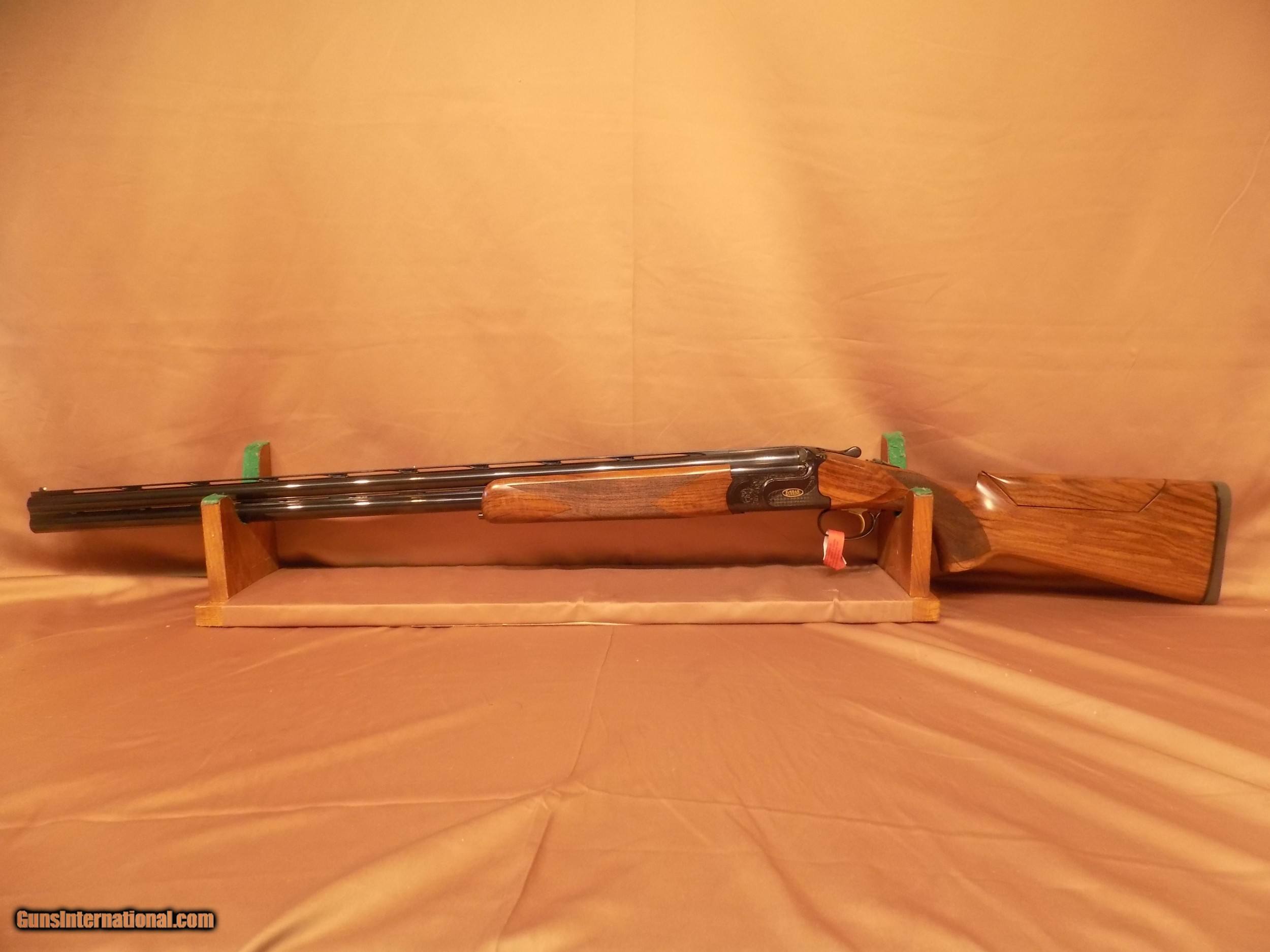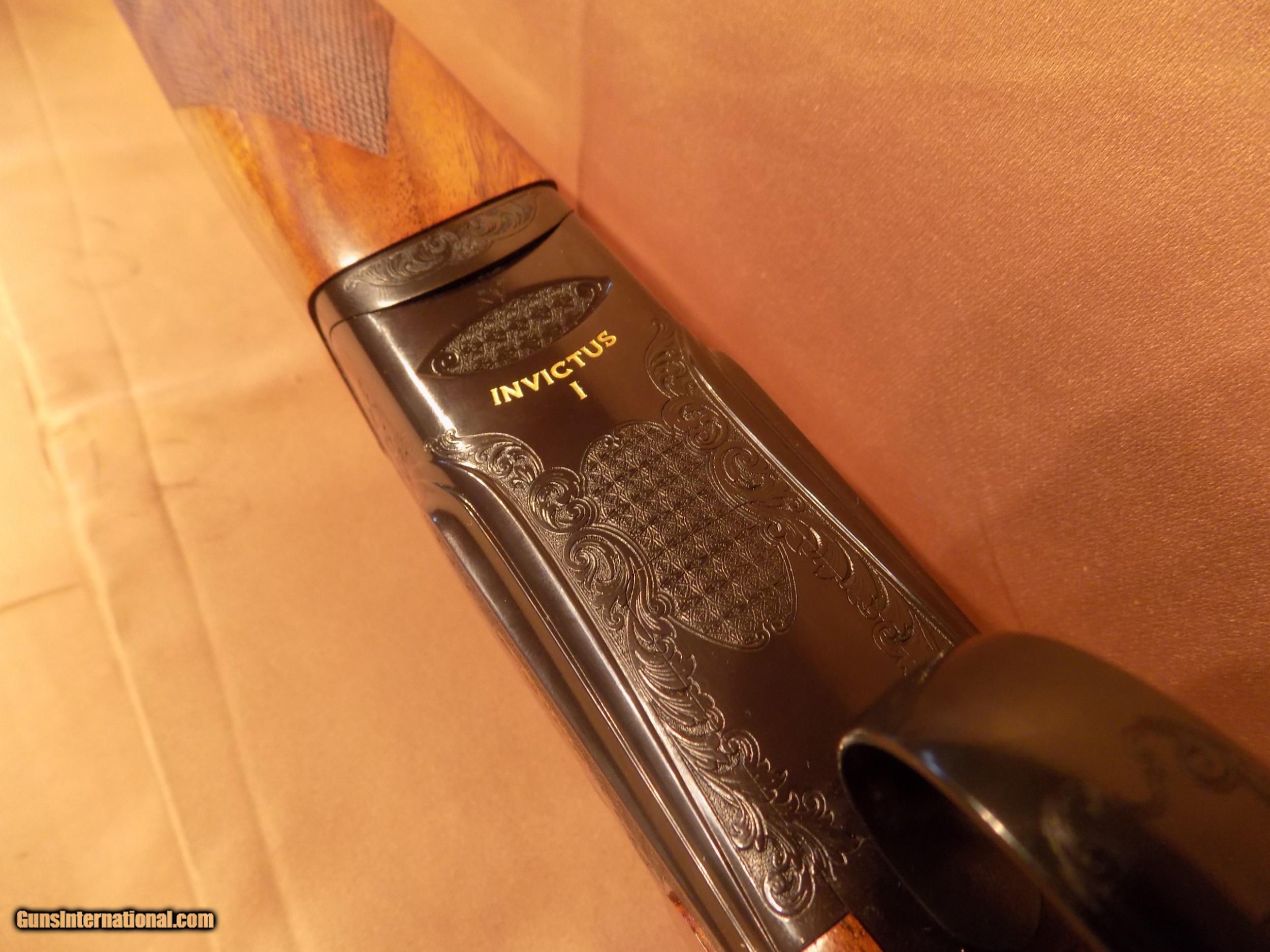 Description: Book #1698. Call or email for pricing. Invictus I Sporting M-SPEC - 12ga/32" - RH - adj. DTS comb - new gun Factory specs/description: Designed to be durable enough to shoot over one million rounds, Caesar Guerini’s Invictus made a big splash when it was introduced in 2014. Now, the Invictus line has expanded with a high-performance variant designated the M-SPEC. Based off of world class shooter Richard Fauld’s input, the M-SPEC is designed to tackle the most demanding sporting clays targets. The barrels feature fixed chokes in Modified and Improved Modified constrictions with tighter and more open chokes available by special order. The top rib incorporates a radical taper of 10mm to 6mm to be more precise on far targets. The design of the fixed choke barrels reduces weight at the muzzle end, resulting in enhanced handling characteristics. The serious competition theme carries over to the cosmetic appearance of the M-SPEC with a deep blued finish on all metal surfaces and subtle gold accents. The Invictus line is the top of the food chain for competitors seeking a shotgun that can endure a lifetime of spent shells and a legacy to pass on for generations to come. The Invictus system completely changes the way the barrel and action lock together when the gun is closed, making the whole system stronger. The result is a shotgun engineered to shoot over one million rounds, backed by an industry leading Lifetime Warranty. The Invictus I Sporting M-SPEC is available in 12 gauge with 32” barrels. The deluxe walnut stock features a conventional style comb and asymmetrical pistol grip with palm swell. Gauge: 12 Barrel length: 32" (81cm) Avg. Weight**: 8lbs 1oz. Receiver finish: Satin blued finish with Invisalloy™ clear protection Stock Finish: Hand rubbed oil Checkering: 26 lines per inch Recoil Pad: Black rubber Chamber: 2 3/4" Top Rib Width: 10mm to 6mm tapered Rib Height*: 6mm Center Rib: Ventilated Forcing Cones: 5" DuoCon Avg. Barrel Weight: 32"-1.59kg (3.50lbs.) Avg. Bore: .735, Chrome lined Chokes: The barrels feature fixed chokes in Modified and Improved Modified constrictions with tighter and more open chokes available by Special Order. Sight(s): White Bradley style front Silver center bead Fore-end: Rounded Trigger: DPS ultra-crisp trigger system with take up, over travel and length of pull adjustments. Factory selective release triggers available in single and double release. Safety: Manual (Automatic as an option) Accessories: Stock and trigger wrench, choke case, friction choke wrench Case: Plastic hard case with fit interior and velvet stock sleeve and barrel sleeve Drop at comb: 1.5" Drop at heel: 2.25" Length of pull: 14.75" Cast at heel: .125" Cast at toe: .20" Pitch: 5° Breech to comb: 7.25" Reach: 3.75 SOLD |