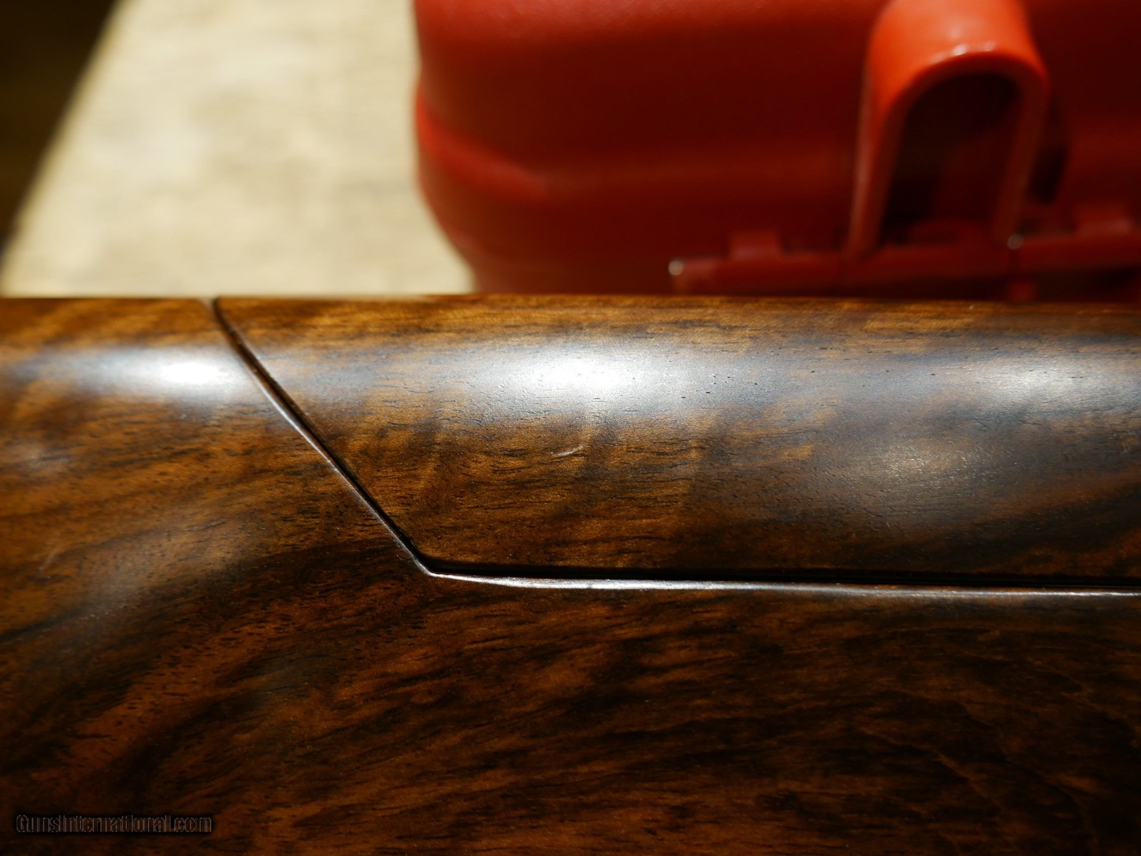 Description: ***LEFTY SPORTING 12GA*** Caesar Guerini Invictus II Limited Sporting over/under shotgun in 12 gauge. Left handed cast stock. Gorgeous stock character with an adjustable comb. 32" ventilated barrels with 2 3/4" chambers. 5" DuoCon forcing cones. 10mm-to-8mm tapered width tip rib. DPS adjustable trigger. Case colored receiver with Invisalloy finish. Tasteful and striking gold inlay. Invictus receiver with modular locking surfaces that can adjusted and replaced over time, solving the "off-face" issue that arises over time with high volume use and wear. LOP is 14 5/8" to where the trigger is currently sitting (adjustable). The DAC and DAH is variable due to the adjustable comb. Weight is 8lbs 13oz on our shipping scale. This beautiful sporter is lightly used and was impeccably cared for. It was purchased from us new in March of 2021. This is a hard-to-find lefty competition-ready sporting 12ga. The stock has a couple small handling marks and the barrel bluing has a couple extremely small marks, all details shown in pics. Comes with all original extras except the choke wrench (chokes are extended hand-tighten style). Comes with: Hard plastic case, 6 Maxis Competition chokes w/case and wrench, comb adjustment tool, stock wrench, velvet stock and barrels sleeves, patch, manuals, clean warranty card. Please call or email with any questions. Must ship to FFL. ***$35 SHIPPING AND INSURANCE*** ***NO CREDIT CARD FEES*** ***ALL WARRANTIES ARE HANDLED BY THE MANUFACTURER*** ***NO WARRANTIES THROUGH SILVER CREEK OUTFITTERS IMPLIED OR EXPRESSED*** ***MUST CALL TO COMPLETE TRANSACTION*** ***PLEASE BE IN CONTACT WITH A RECEIVING FFL AND BE PREPARED TO PROVIDE THEIR EMAIL ADDRESS OR AT LEAST THEIR PHONE WHEN MAKING PAYMENT*** SOLD Shotgun Gauge: 12 Gauge Manufacturer: CAESAR GUERINI Model: A20018 Condition: USED, EXCELLENT |