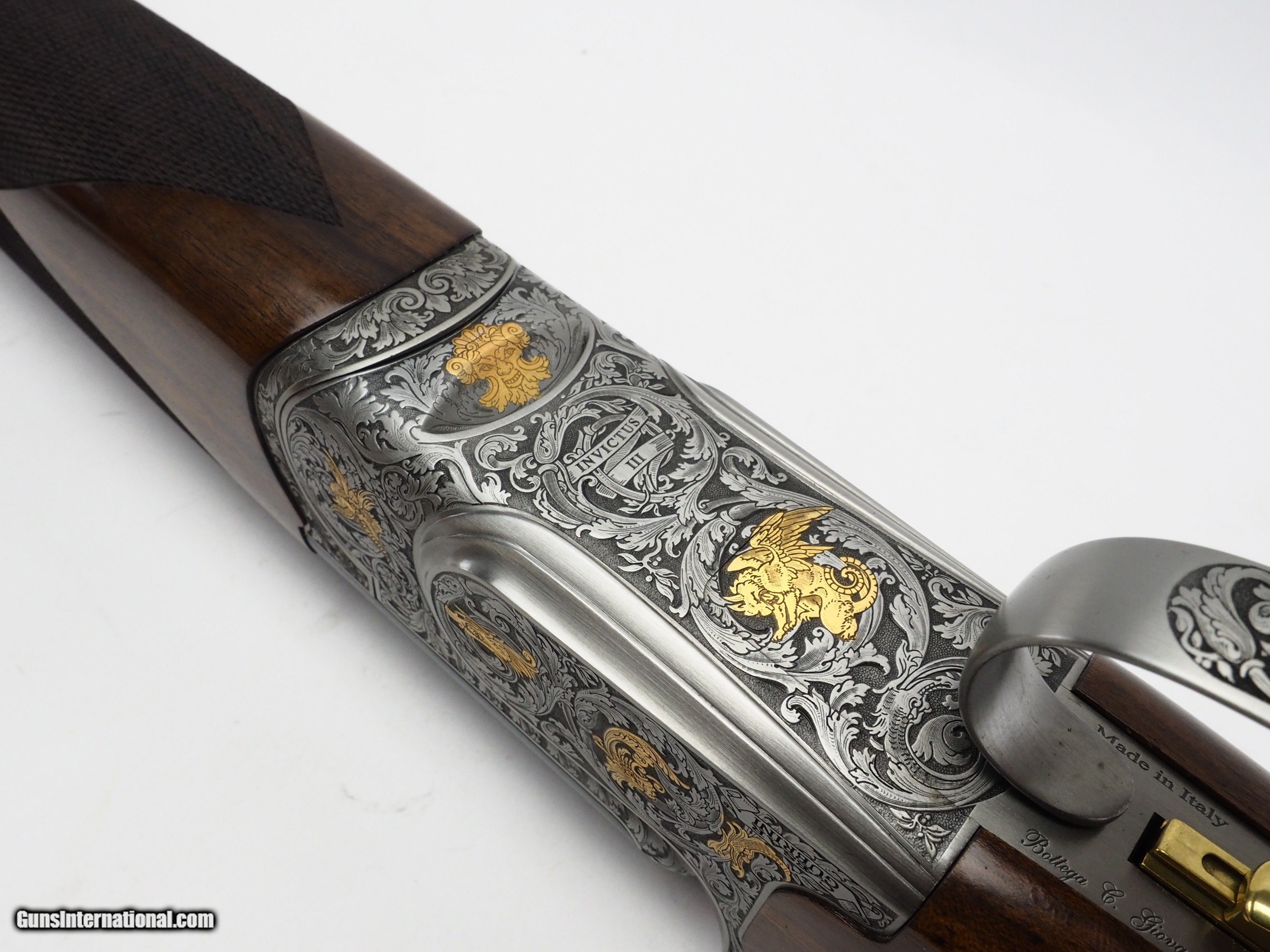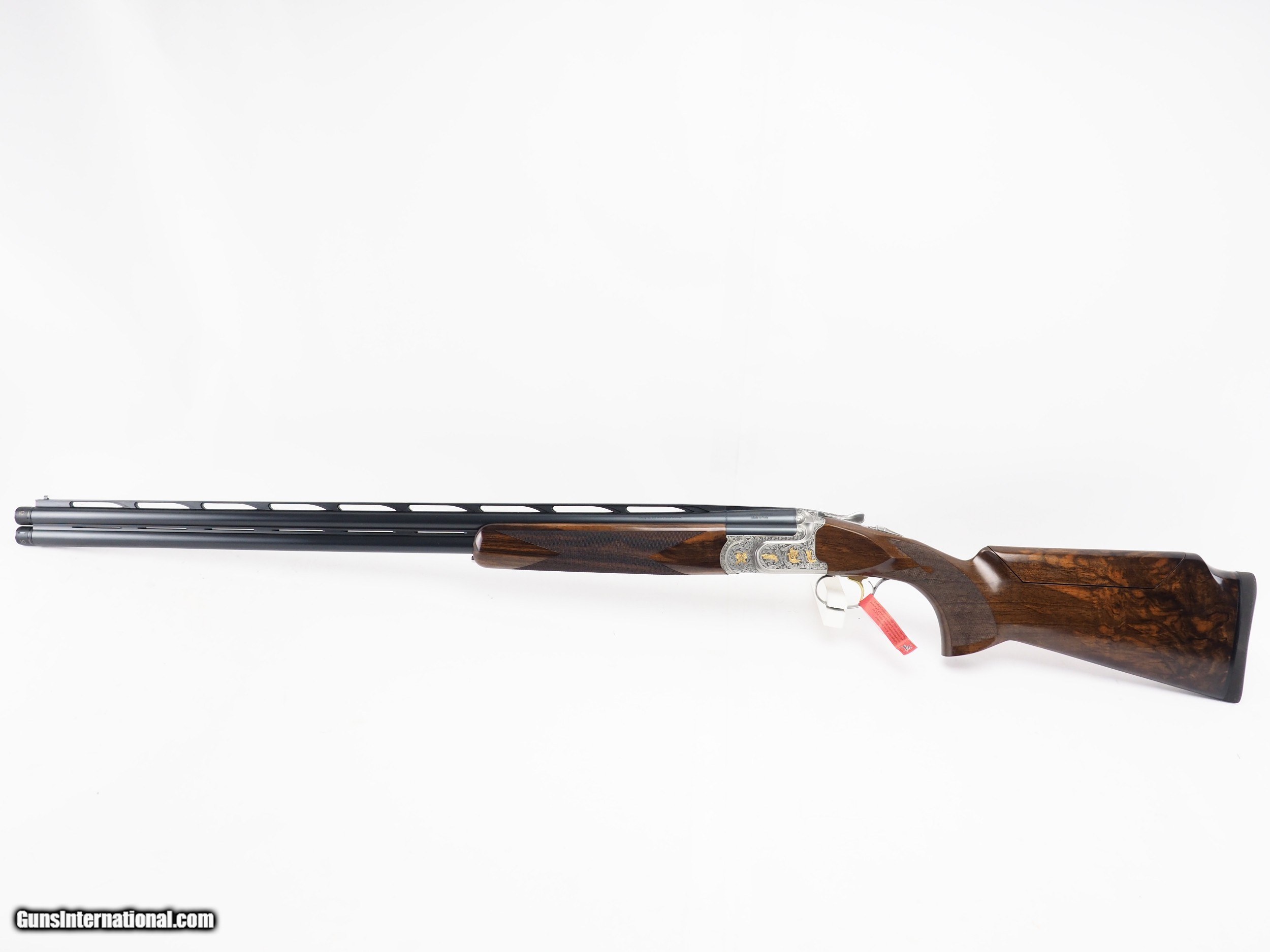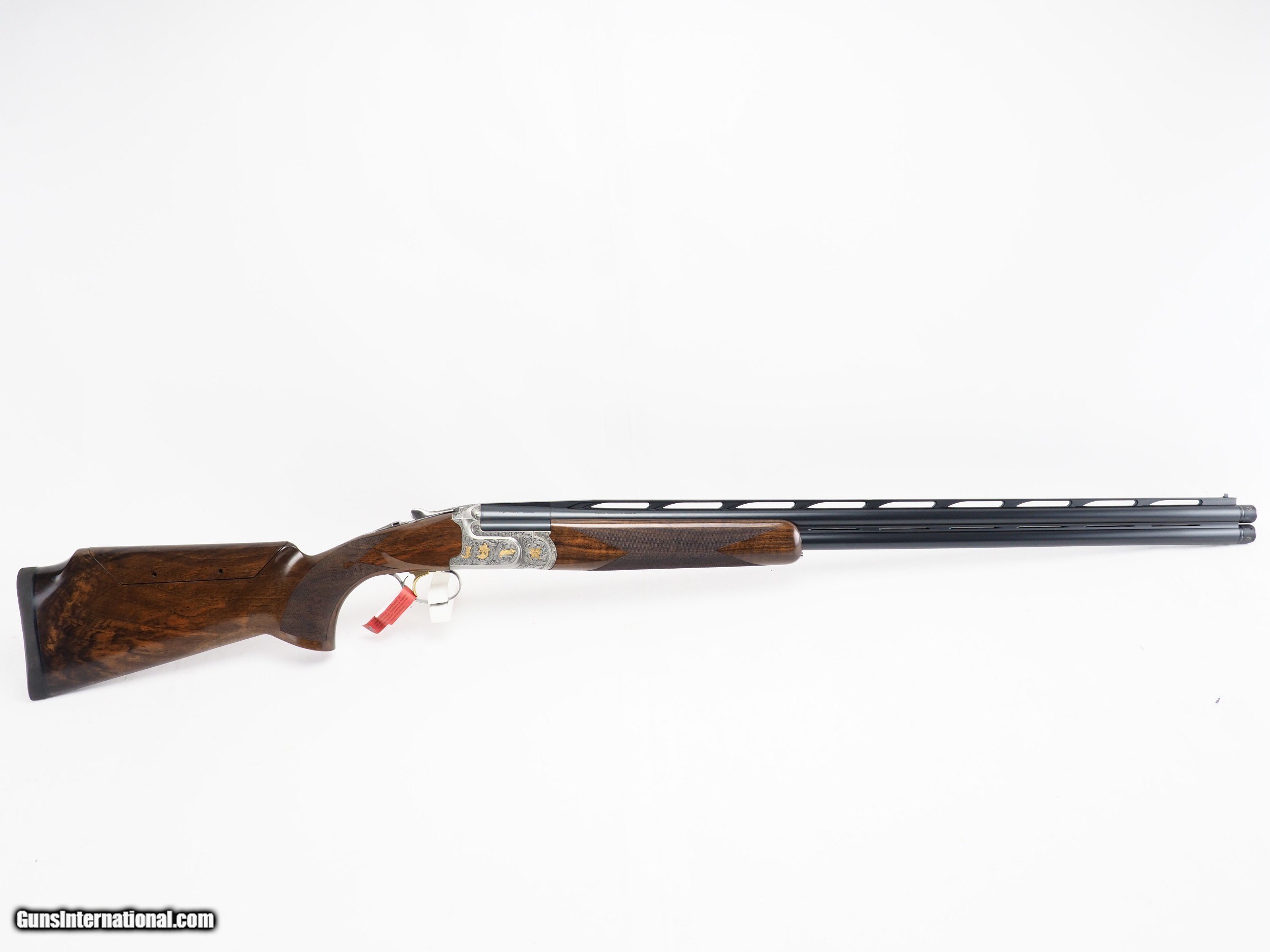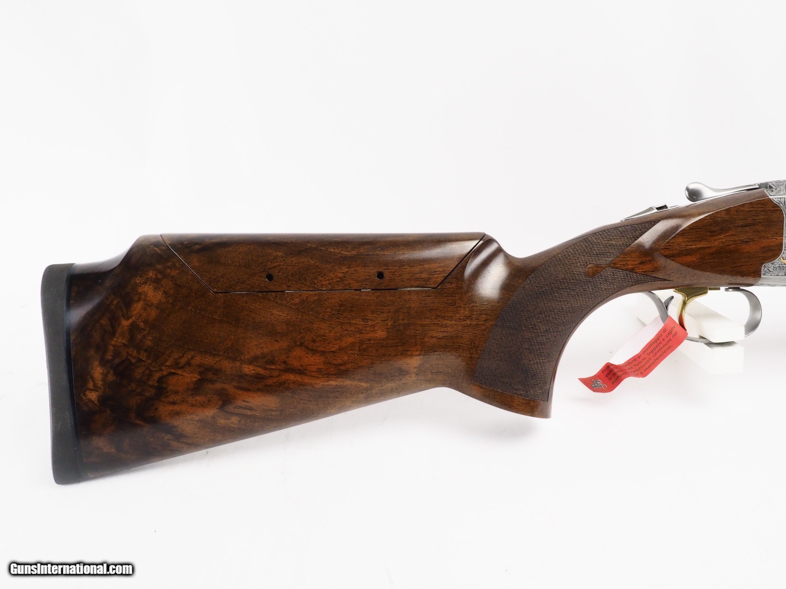 Description: Book #2286. MSRP: $9450.00 (call for competitive pricing). The Invictus Ascent is the standard Invictus Sporting, but with the addition of a slightly higher mid-height rib (10mm vs 6mm) and a corresponding Monte Carlo comb with adjustable DTS hardware built in. The rib is fixed at 50/50 point of impact when the beads are held in a figure-8. This is a great gun for the longer-necked sporting clays player, or the shooter who simply prefers a rib slightly taller than standard. Don't forget that the Invictus system is as durable as an anvil—and will last even longer if you take advantage of the cost-free Pit Stop maintenance program. Ask us about it! Condition: new Gauge: 12 Barrel length: 32" (81cm) Avg. Weight: 8 lbs. 6oz. (32") Stock Finish: Hand rubbed oil Checkering: 26 lines per inch Recoil Pad: Black rubber Chamber: 2 3/4" Top Rib Width: 10mm - 8mm, Tapered Rib Height: 10mm Fixed Forcing Cones: 5" DuoCon Avg. Barrel Weight: 32"-1.52kg (3.35lbs.) Avg. Bore: .735, Chrome lined Chokes: 6 MAXIS competition chokes Sight(s): White Bradley style front Silver center bead Safety: Manual (Automatic as an option) Accessories: Stock and trigger wrench, choke case, friction choke wrench Case: Plastic hard case with fit interior and velvet stock sleeve and barrel sleeve Drop at comb: 1.5" Drop at Monte Carlo: 1.8" Drop at heel: 2.25" Length of pull: 14.75" Cast at heel: .12" Cast at toe: .25" Pitch: 5° SOLD |