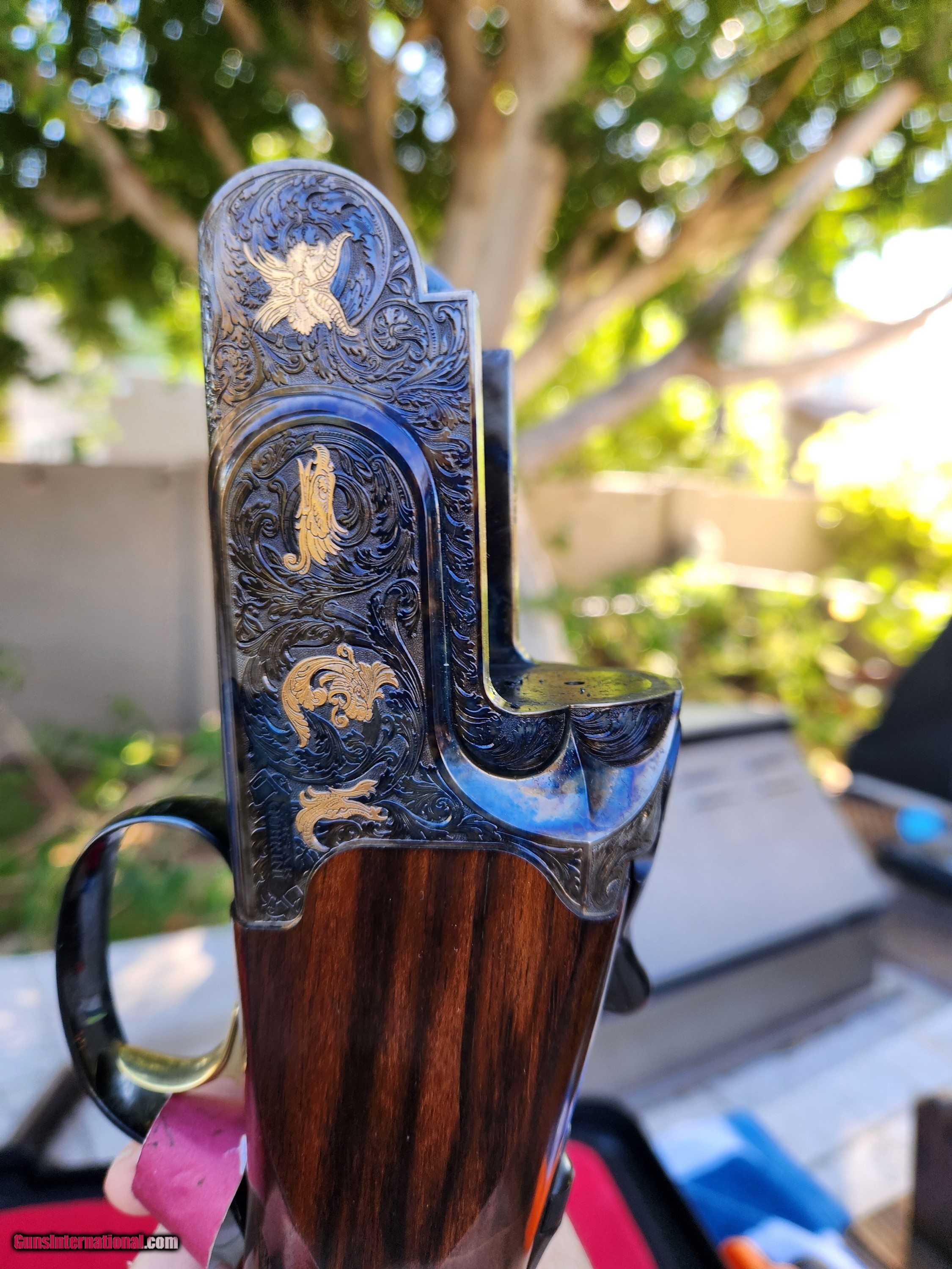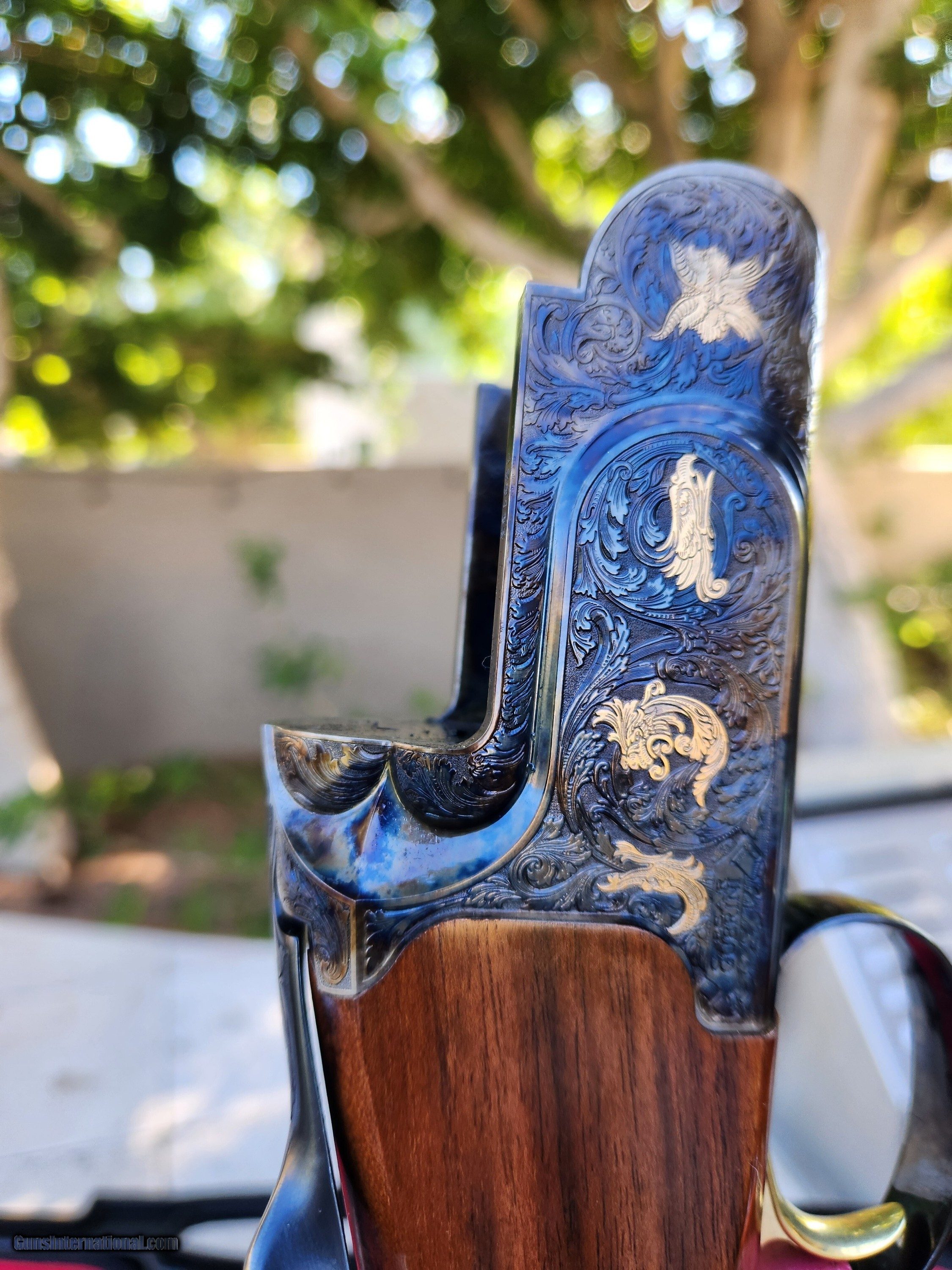 Description: Like new, unfired Caesar Guerini Invictus 3 Limited MSPEC 34 Inch. This spectacular gun comes with a deep engraved Color Case Hardened receiver with Gold Accents on mythical creatures making this gun a head turner. The MSPEC barrels were developed in conjunction with Richard Faulds, a champion shooter in the UK. By building the fixed choke barrels in 34 inch it provide a longer sighting plane in a lively barrel that handles with the best barrels in the industry. This gun is choked IM and Full As with all Ceasar Guerini shotguns the wood work is spectacular. The Invictus system is built to last 1 Million rounds so this is a gun that will be passed on as a spectacular gun to children and grandchildren. If your looking for a top of the line clay gun at a great discount off new please give me a call. Shotgun Gauge: 12 Gauge Manufacturer: Ceasar Guerini Model: Invictus III Barrel Length: 34 Bore Info: 12 Chambers: 3 Ejectors: Yes Condition: Like New Metal Condition: Like New Wood Condition: Like New Bore Condition: Like New Barrels: 34 Barrel Type: over under Action: O/U Triggers: 1 Weight: 8 lbs 4 oz Price: $6,995.00 Shipping: $100.00 Contact Seller |