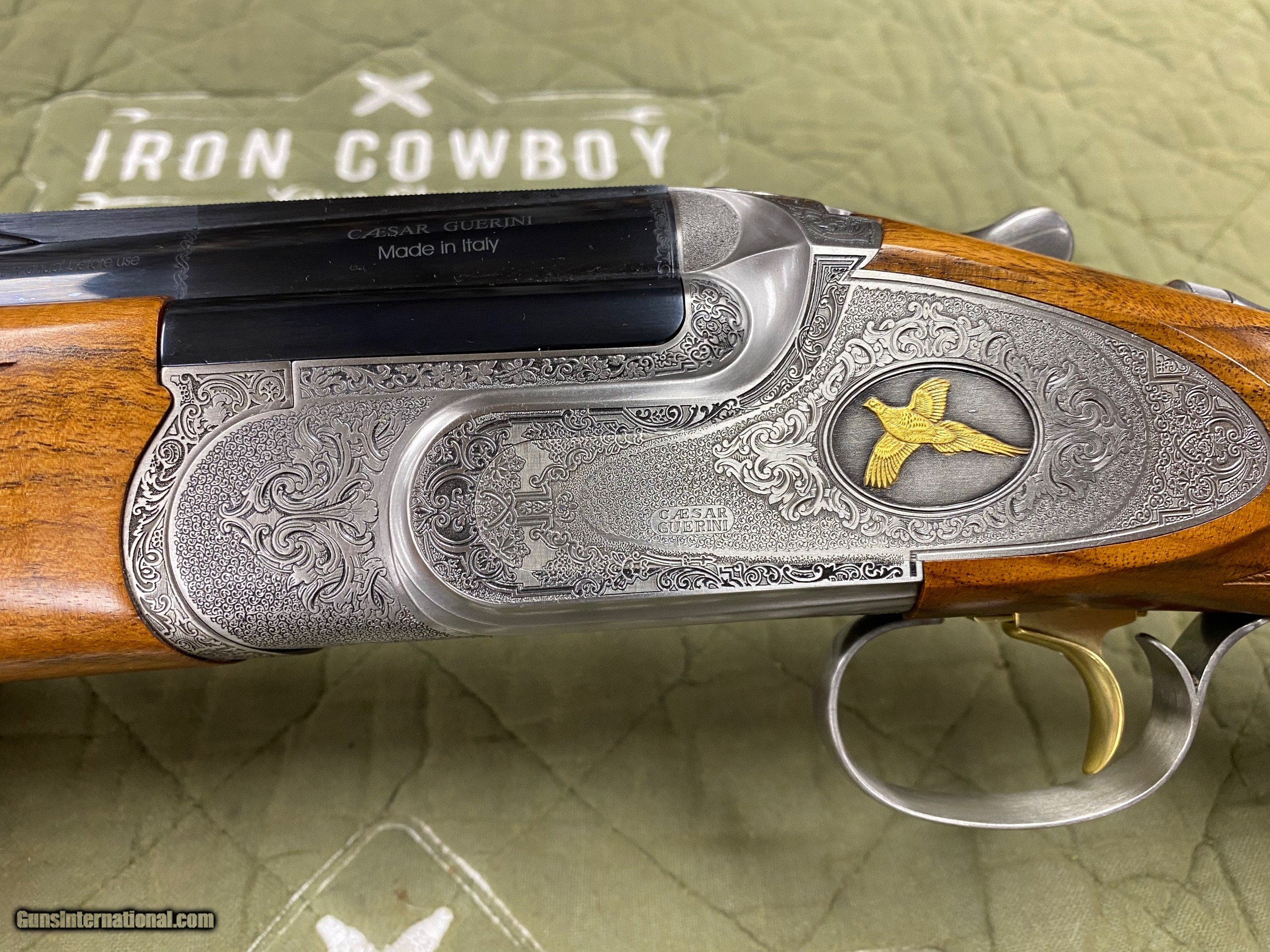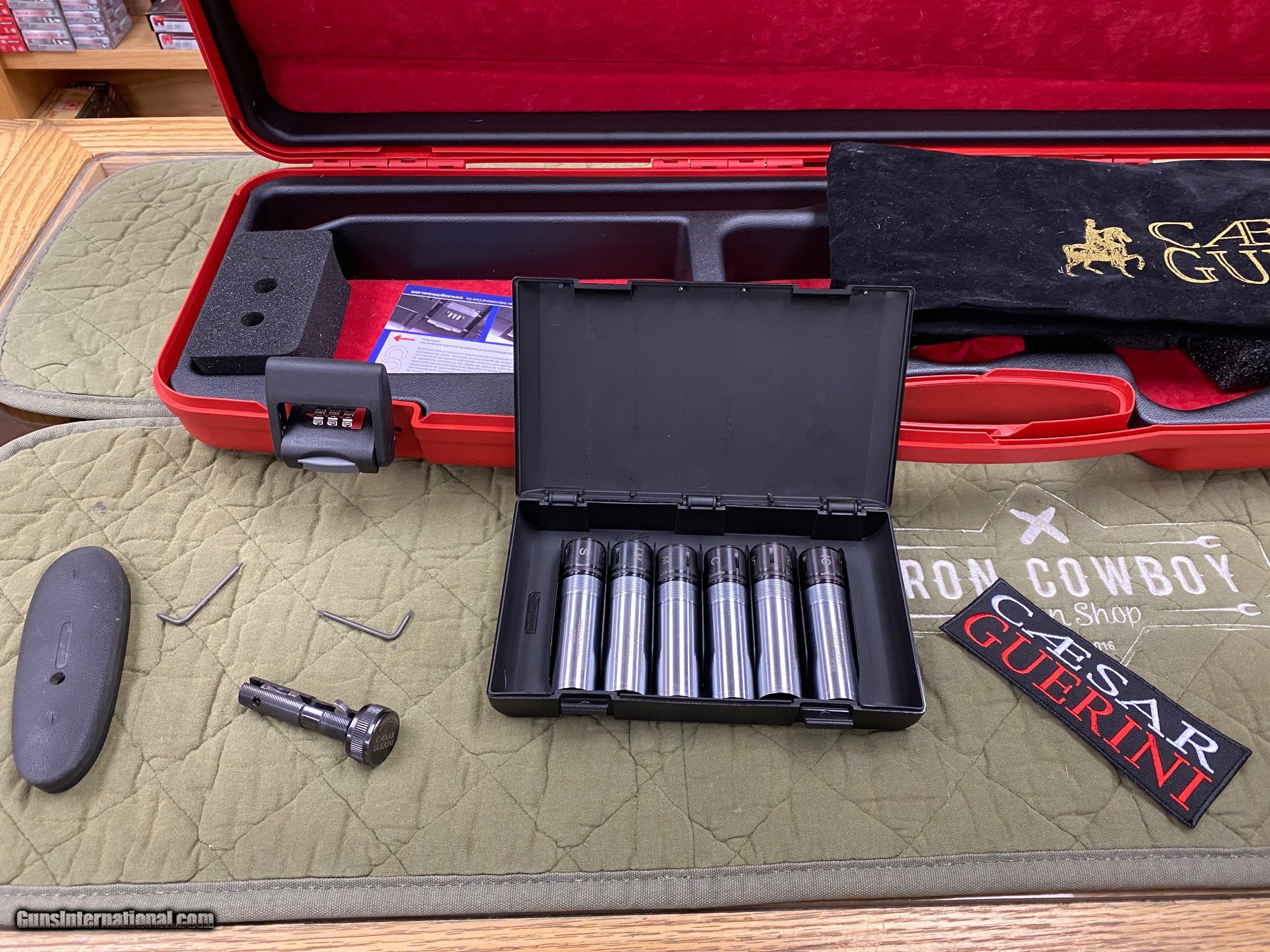 Description: Offered up for sale is a like new Caesar Guerini Invictus V Sporting chambered in 12 Ga w/ adj comb. THE BACK STORY This was bought new off me, the previous owner had grand plans to start shooting sporting & 5 Stand at the local clubs. He had a shorter legenth of pull. There was about ¾ of an inch cut off the stock, a thin pad was added (the old pad is included). When I took the gun in it was sent back to CG and a new spacer and 1’’ kickez pad was installed. The LOP with the trigger in the center position is 14 7/8’’. This remains unfired and in like new condition. Below you will find a description from Caesar Guerini’s web site. WHY IRON COWBOY? Buying a fine gun is not shopping cart transaction. Buying from Iron Cowboy means buying a gun from me. It means buying from someone as passionate as you about fine guns. I want you to get the right gun both for you and your application, and my advice reflects what I feel is in your best interests. No clerks, no ‘other’ salesman – just me. Odds are we will have a discussion on my shooting experience with the gun you are after, and every transaction gets my personal best. Credit cards are welcome; however, a 3% fee will apply Thank you, as always, for looking. GROWTH THROUGH SERVICE Everyone is a customer at some point. I’ve taken the good from my experiences and apply it to my transactions. I’ve taken the bad and sworn to never pass that same experience on to my customers. I strive to act the way I would respect someone else for acting. In this way, Iron Cowboy differentiates itself with growth through service and repeat business. It’s my commitment to you, my customer. Iron Cowboy Gun Shop, LLC Edward Kondraski III (570) 733-2042 In 2014, as a result of our ongoing pursuit to make the most durable Target shotgun possible, we created the Invictus system. This design ushered in the most significant advancement in over-under durability in many years. Now we are introducing the DPS trigger system in the new Invictus V Sporting. The system provides a remarkable improvement in weight, speed and take-up resulting in an ultra-crisp feel. We invite our customers to compare it to any target shotgun available today. All of the technology in the Invictus V Sporting is complimented by the graceful side plate action with full-coverage engraving. This embellishment employs no fewer than four different engraving techniques, including many hours of hand engraving. The result is a stunning example of contemporary Italian Ornato style engraving with deep relief game scenes. The Invictus V is quite simply the perfect synthesis of technology and art. A number of years ago we engaged in a study to determine if there was a technical solution for significantly increasing the long term durability of an over-and-under action; more specifically, the problem of an “off face” condition which is created by the barrel and action wearing to the point that there is an unsafe gap between the two. This condition typically spelled the end of a shotgun’s useful wear life. Caesar Guerini’s Invictus action is the first double gun to ever overcome this issue. Due to the modularity of the Invictus system the life span has been increased between 200 and 300% over the typical double gun. We feel this is a quantum leap forward in the evolution of over-and-under shotguns. Model Invictus V Sporting Gauge 12 Barrel length 32" (81cm) Avg. Weight** 8lbs 11oz. On My Scale! Receiver finish Hand polished coin finish with Invisalloy™ protective finish Stock Finish Hand rubbed oil Checkering 26 lines per inch Recoil Pad Black rubber Chamber 2 3/4" Top Rib Width 10mm to 8mm tapered Rib Height* 6mm (flat) Center Rib Ventilated Forcing Cones 5" DuoCon Avg. Barrel Weight 30"-1.56kg (3.43lbs.) 32"-1.59kg (3.50lbs.) Avg. Bore .735, MAXIS bore, Chrome lined Chokes 6 MAXIS competition chokes Sight(s) White Bradley style front Silver center bead Fore-end Rounded Trigger DPS ultra-crisp trigger system with take up, over travel and length of pull adjustments. Safety Manual Accessories Stock and trigger wrench, choke case, friction choke wrench Case Plastic hard case with fit interior and velvet stock sleeve and barrel sleeve Overall length of gun w/ chokes 50.25” (32” barrels) MSRP $ 11,010 !!! SOLD Shotgun Gauge: 12 Gauge |