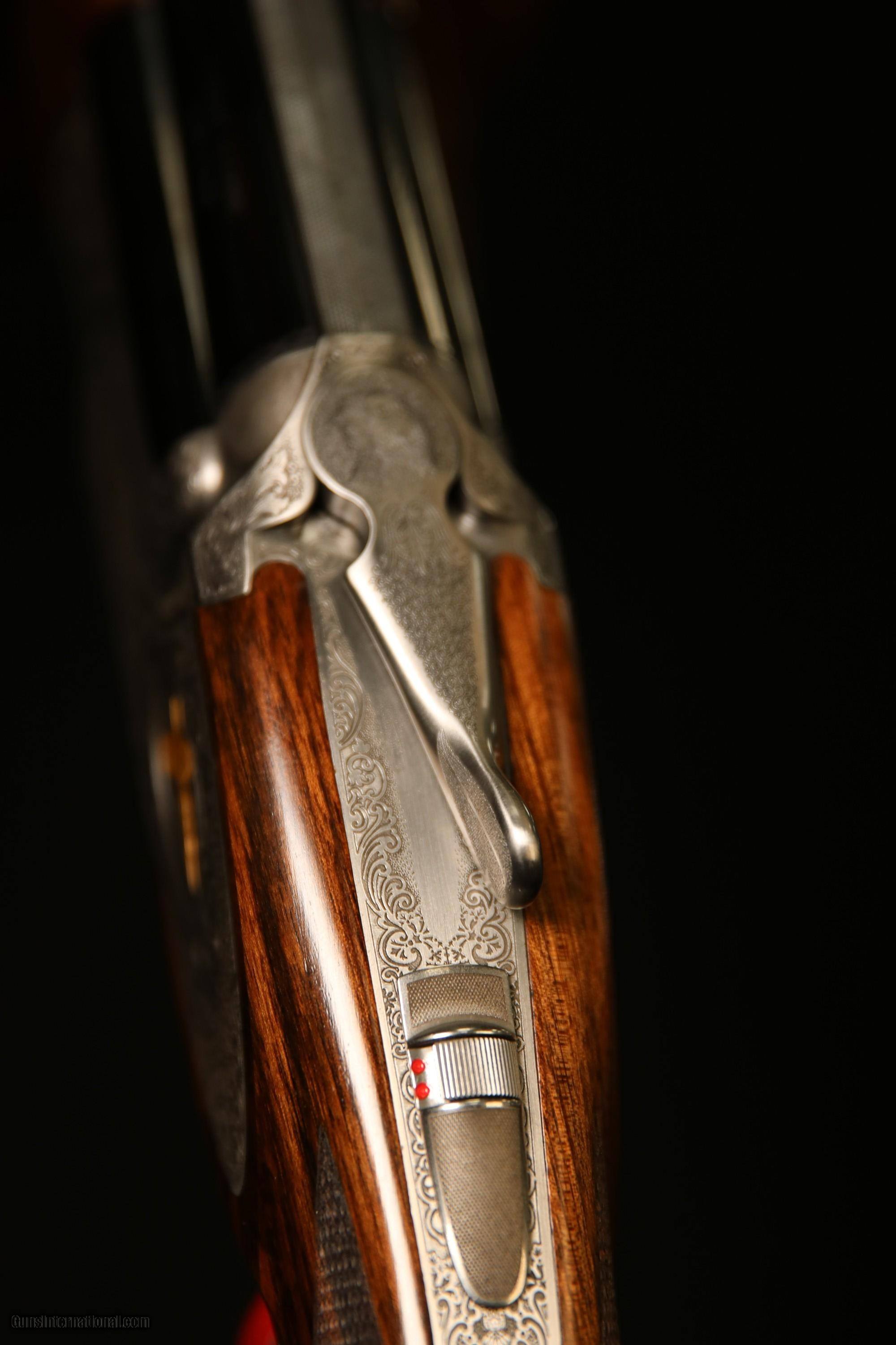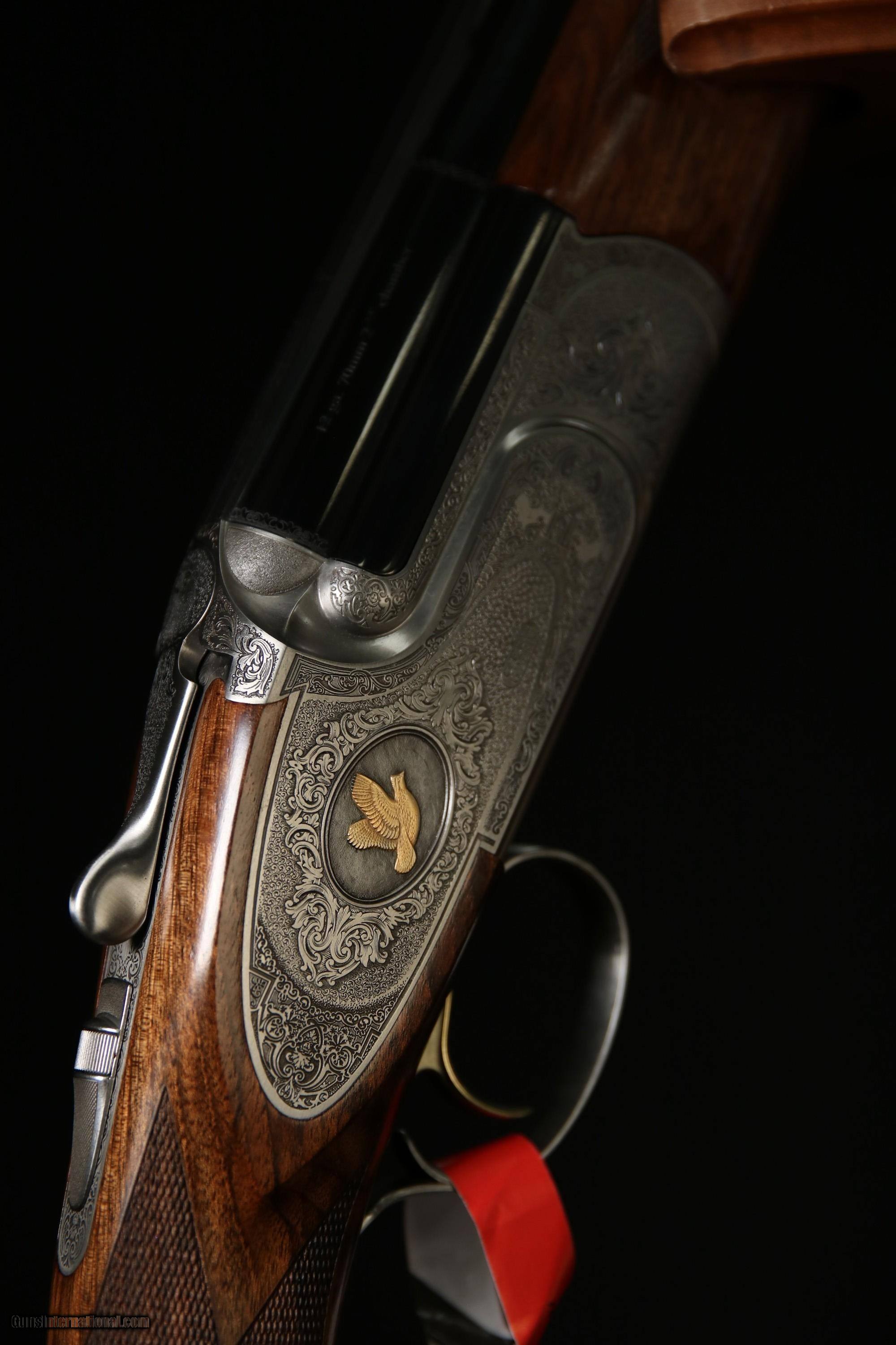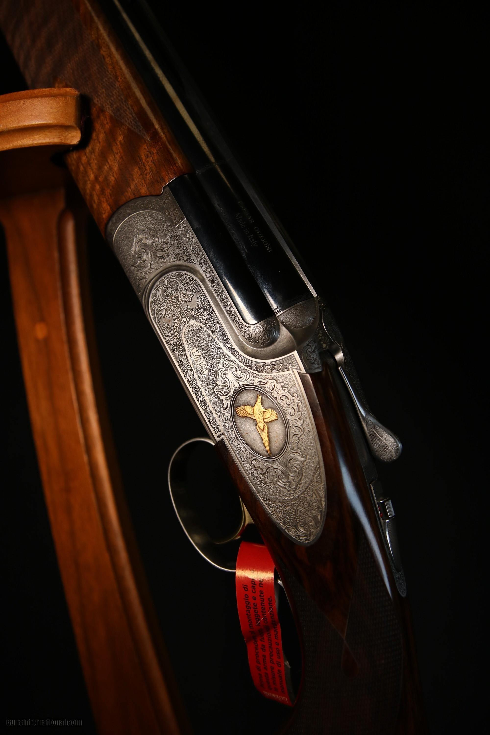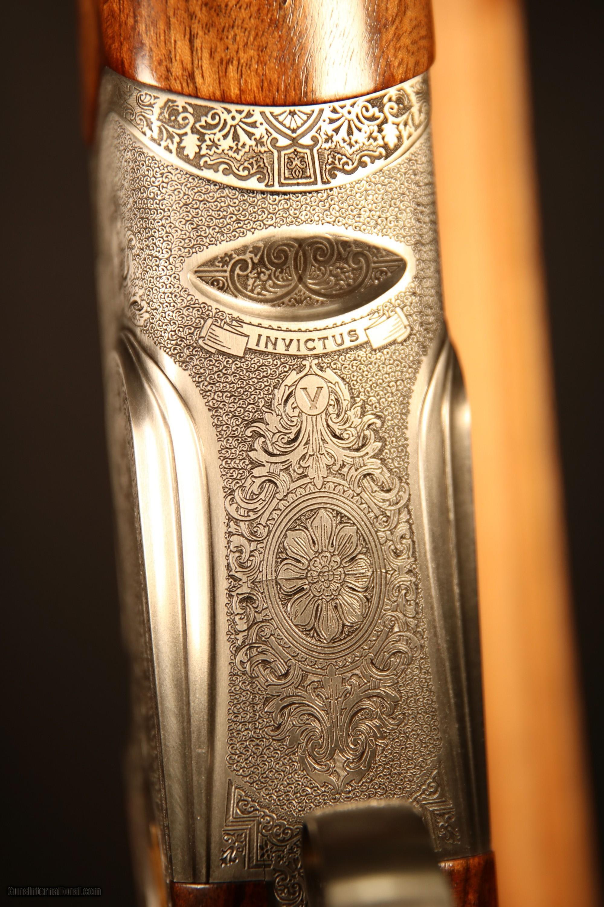 Description: In 2014, as a result of our ongoing pursuit to make the most durable Target shotgun possible, we created the Invictus system. This design ushered in the most significant advancement in over-under durability in many years. Now we are introducing the DPS trigger system in the new Invictus V Sporting. The system provides a remarkable improvement in weight, speed and take-up resulting in an ultra-crisp feel. We invite our customers to compare it to any target shotgun available today. All of the technology in the Invictus V Sporting is complimented by the graceful side plate action with full-coverage engraving. This embellishment employs no fewer than four different engraving techniques, including many hours of hand engraving. The result is a stunning example of contemporary Italian Ornato style engraving with deep relief game scenes. The Invictus V is quite simply the perfect synthesis of technology and art. Caesar Guerini Invictus V Sporting Gold 12Ga 32" LH