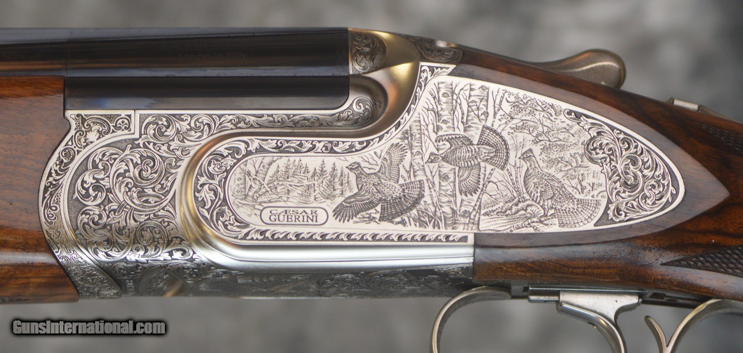 Description: Pre-Owned Caesar Guerini Invictus VII Sporting 12GA with 32" factory choke tubed barrels, factory flat tapered rib. Nitride finished "Invictus" action with strengthened lockup, sculpted action with fully engraved side-plates featuring fine, deeply engraved English scrolls and game scenes. Factory pistol grip stock with right-hand palmswell, Graco aftermarket adj. comb, fully checkered English sporting forearm. Handling marks and minor scuffs in stock and forearm, very minor bluing wear on barrels. Includes case, chokes and tools. SOLD Shotgun Gauge: 12 Gauge |