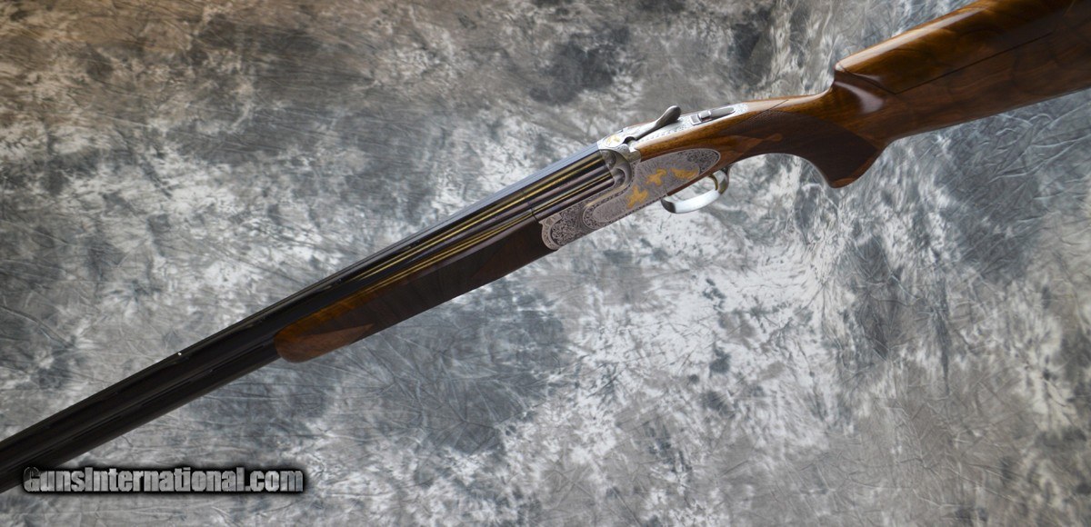 Description: New Caesar Guerini Invictus VII Sporting 12GA with 32" factory choke tubed barrels, flat tapered rib. Nitride finished "Invictus" receiver featuring fully engraved side-plates with scrolls and game-scenes in gold. Outstanding factory adj. comb sporting stock with right-hand palmswell and fully checkered English sporting forearm. Includes factory case, chokes and tools. Call 626-633-1002 for best delivered price. SOLD |