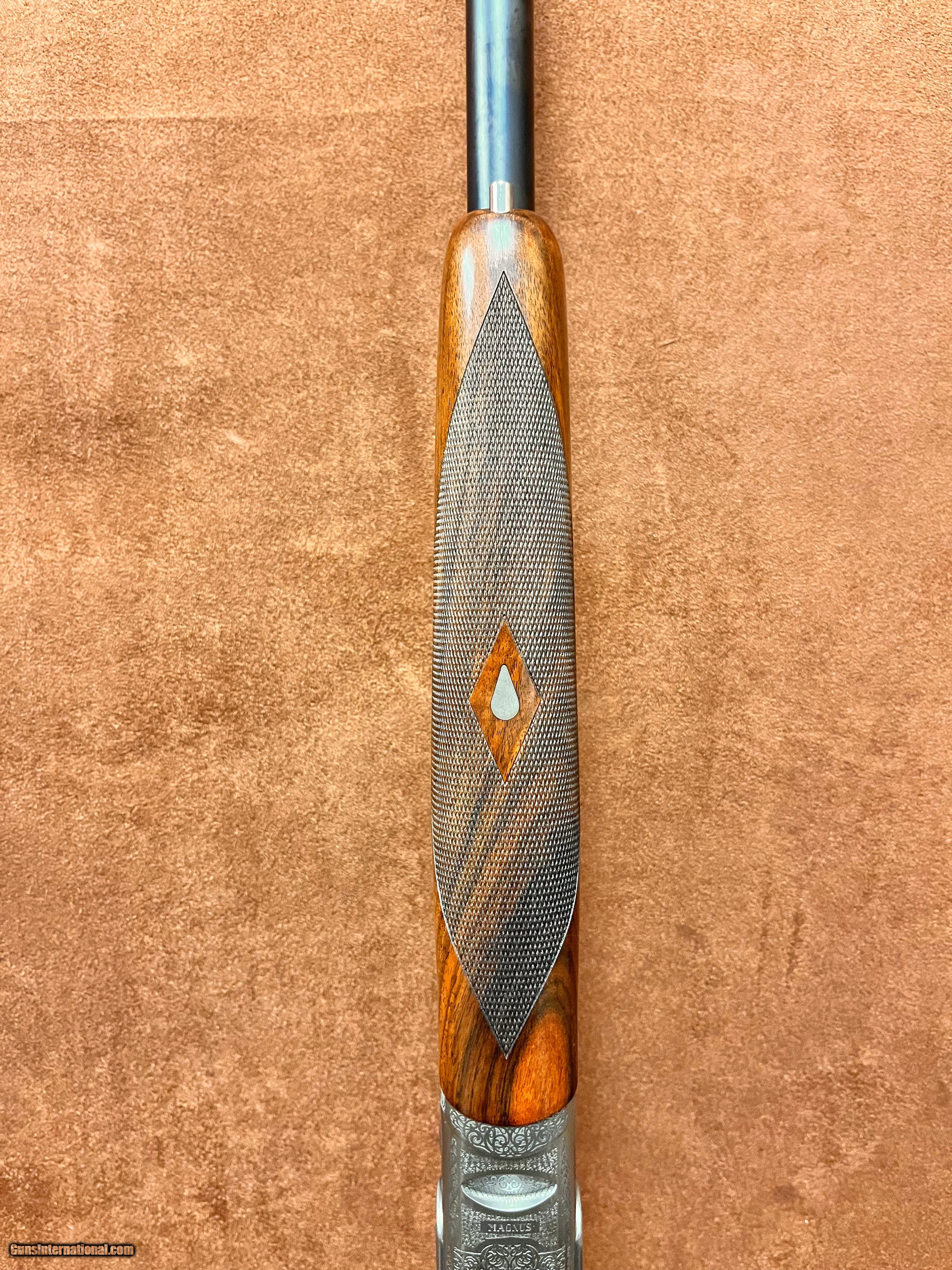 Description: JUST IN AT ROYAL SPORTING ARMS! Caesar Guerini Magnus 12ga 34" barrel Spectacular engraved sideplates. POI adjustable High rib. Barrel constrictions: Interchangeable chokes in both barrels Spectacular grade 3 wood with adjustable montecarlo stock. 15LOP This Caesar guerini is extremely dynamic and nimble, points extremely well in the field and dominates in any sporting or trap fieled! A true representation of what a top competition caesar guerini is supposed to be. WE SHIP NATIONWIDE to Hawaii and CANADA! To purchase call/text 954-676-0714 Located in Davie, FL right on I-595 and 5 Minutes From Markham Park Trap Skeet and Sporting Clays Club. We are open year round to serve you at our FL Location 954-676-0714 ! We are also located in Saskatoon Canada By Appointment only (Canada phone number (306)-229-2998) Here at Royal Sporting Arms we are excited to help you with your next gun purchase. We also offer Custom Stock work for our clients made of Pure Turkish walnut. We are also top tier dealers for Al Ange Leathers! We are a full service shop offering Fine guns, Ammo, stocks, over and under Barrels, gunsmithing, Gunstock work, recoil pads etc We'll Pay TOP DOLLAR for your used guns and also take firearms on consignment ! We are excited to see and work with you! Please contact our team to make an appointment or to stop in! FLORIDA / USA: (954)-676-0714 CANADA : (306)-229-2998 Thanks For Looking! SOLD Shotgun Gauge: 12 Gauge |