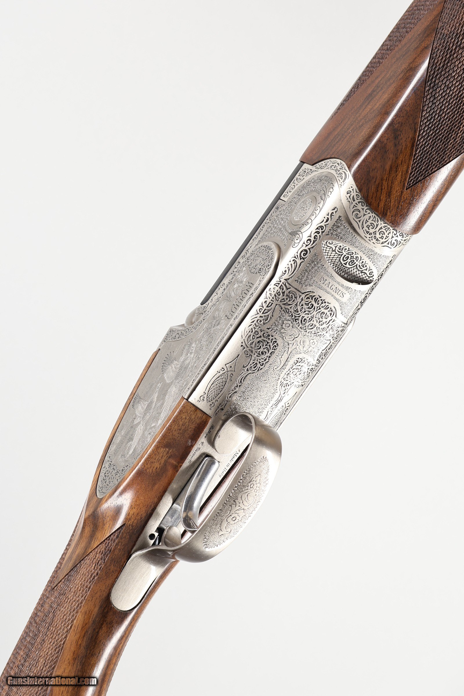 Description: 3" Chambers | 5 Flush Multichokes | Makers Hard Case | Excellent Condition The Magnus Deluxe Over/Under in 12 Ga is an Italian-made shotgun known for solid construction and smooth handling. It has a Turkish walnut stock with a comfortable pistol grip and a balanced action suited for versatile use. This shotgun is in excellent shape as it was a lightly used demo gun. There is a small ding on the comb, and it was fired only a few times. It comes with five original flush chokes and is stored in the maker’s hard case. Made in 2023 in Italy, it has a right-hand cast and clean overall finish.
